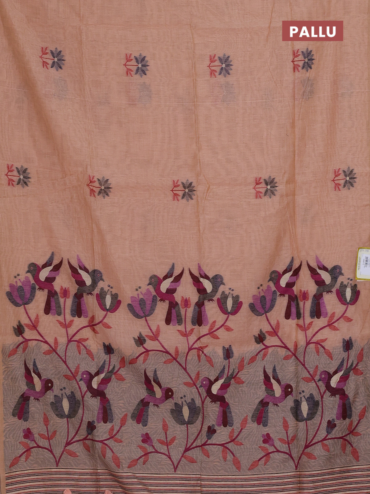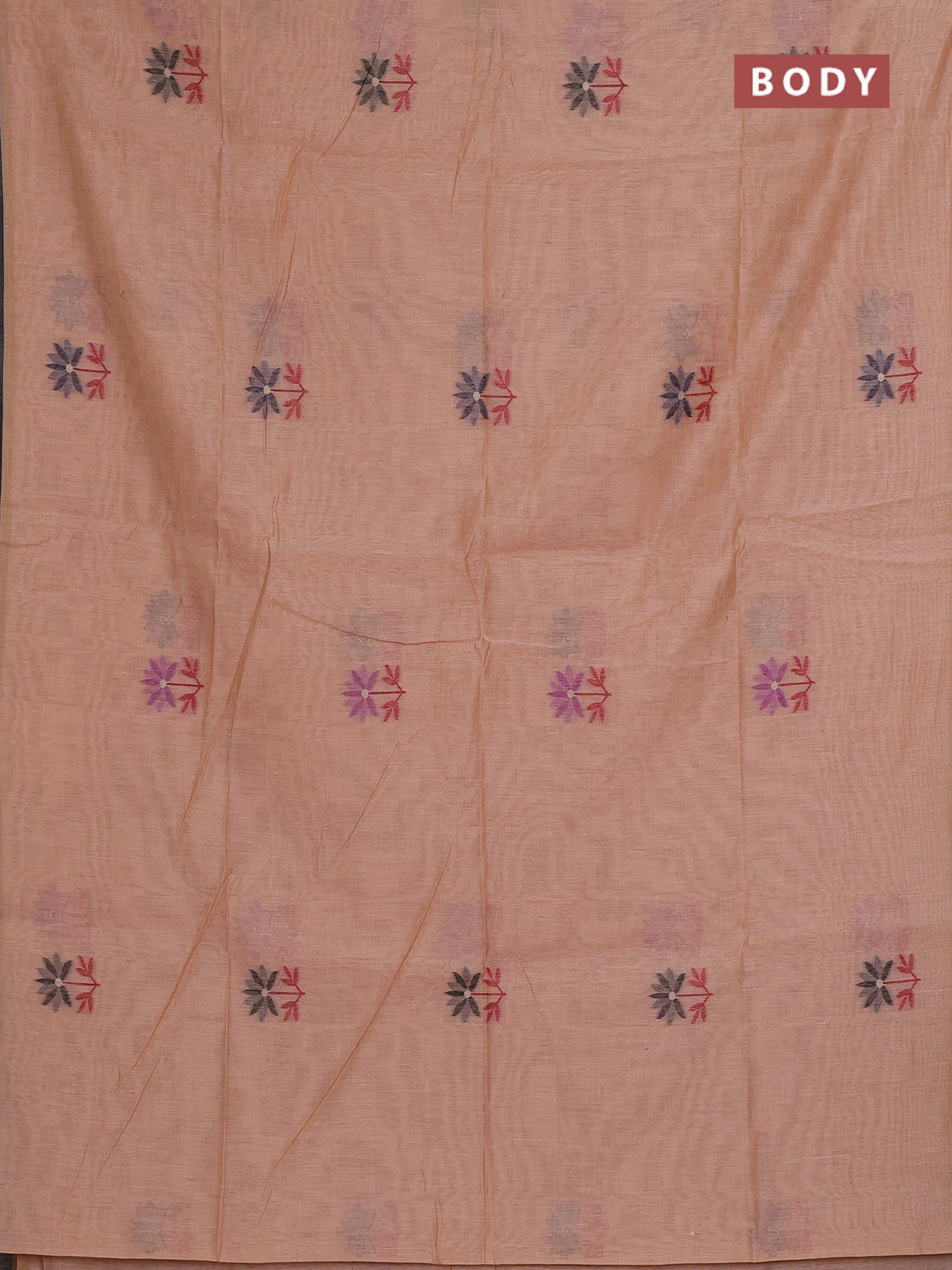 Munga cotton saree peach orange with thread woven floral buttas and thread weaving pallu