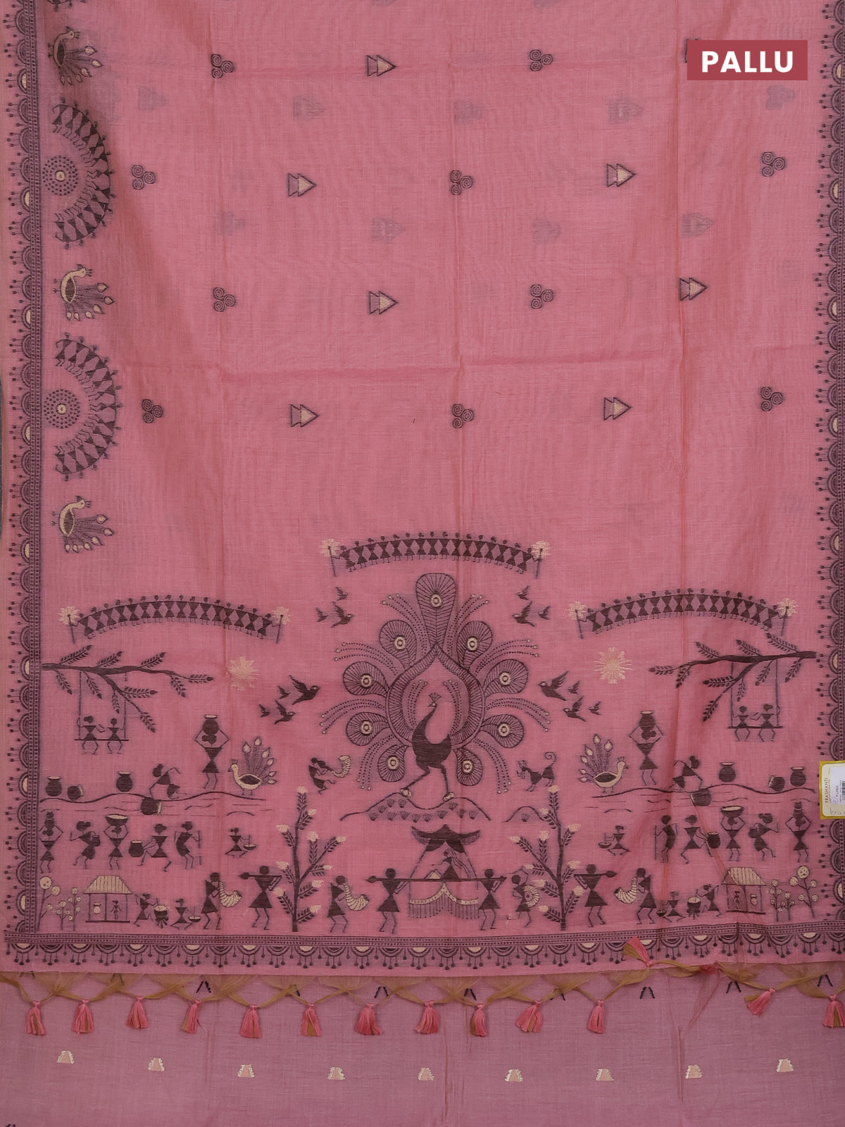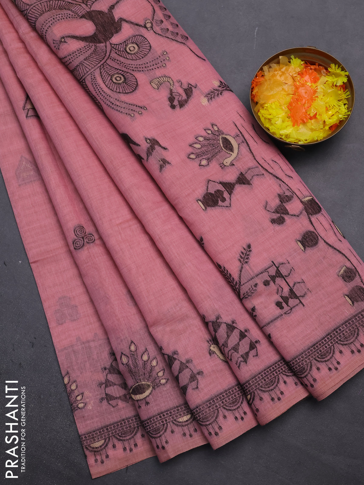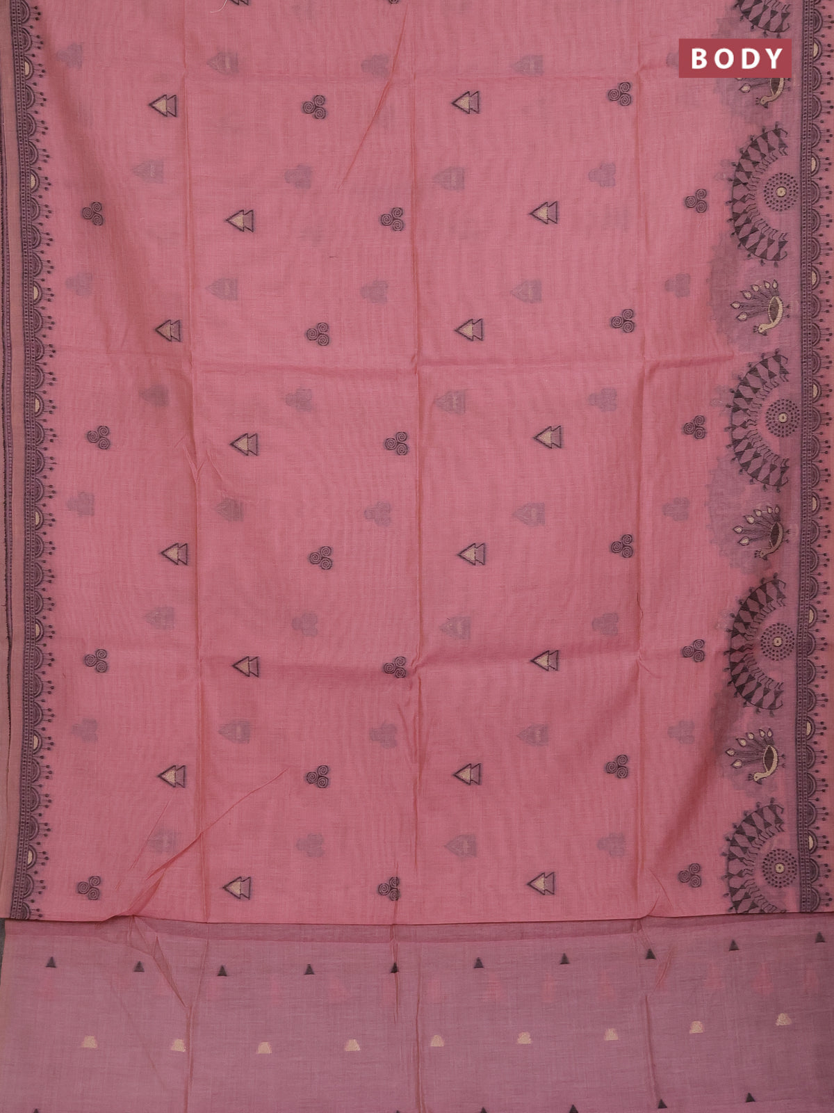 Munga cotton saree peach pink with thread woven buttas and thread woven border