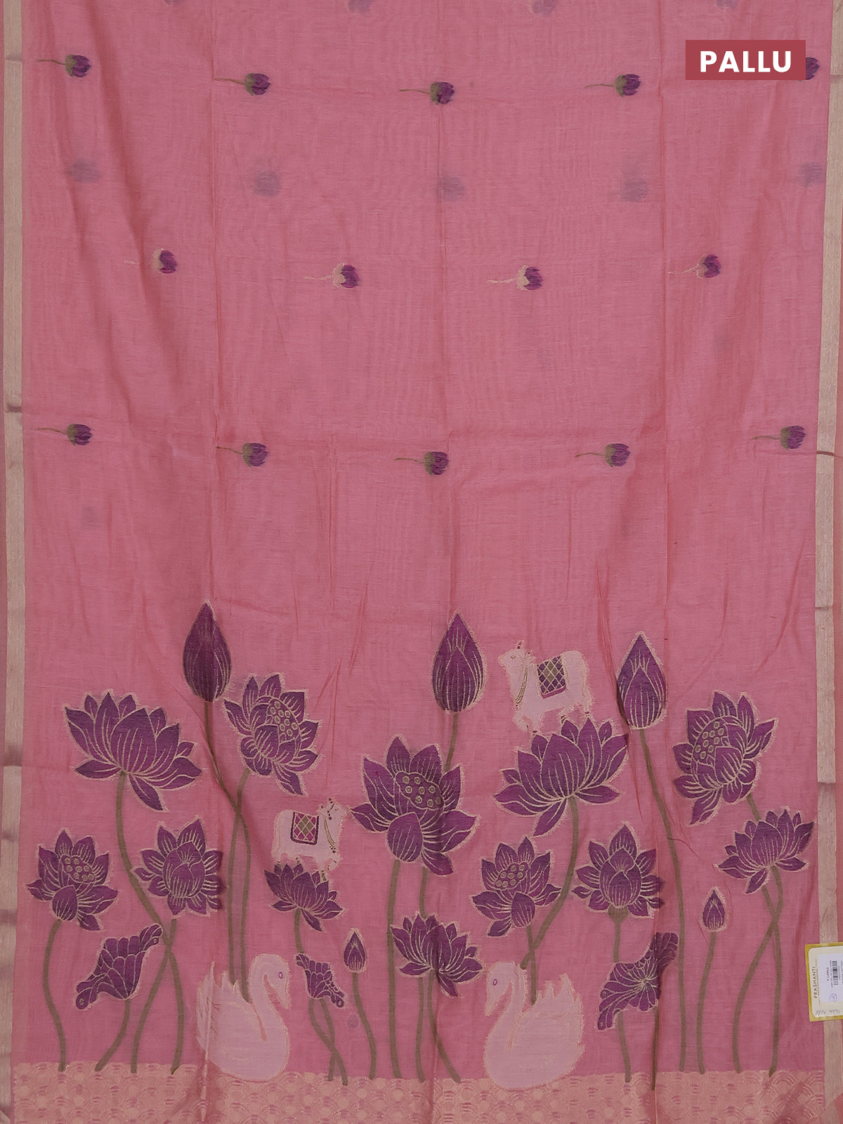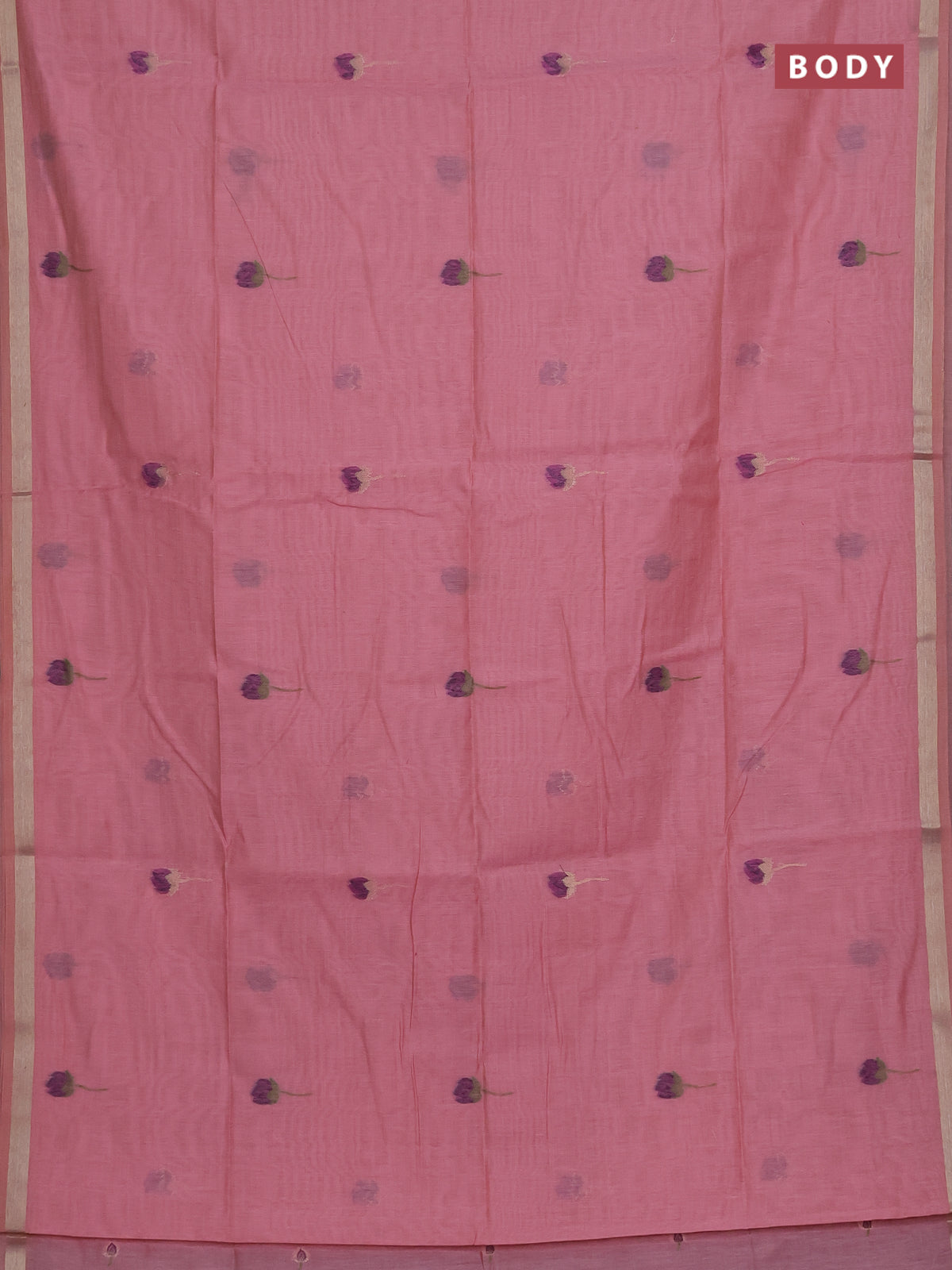 Munga cotton saree peach pink with thread woven floral buttas and pichwai design weaving pallu