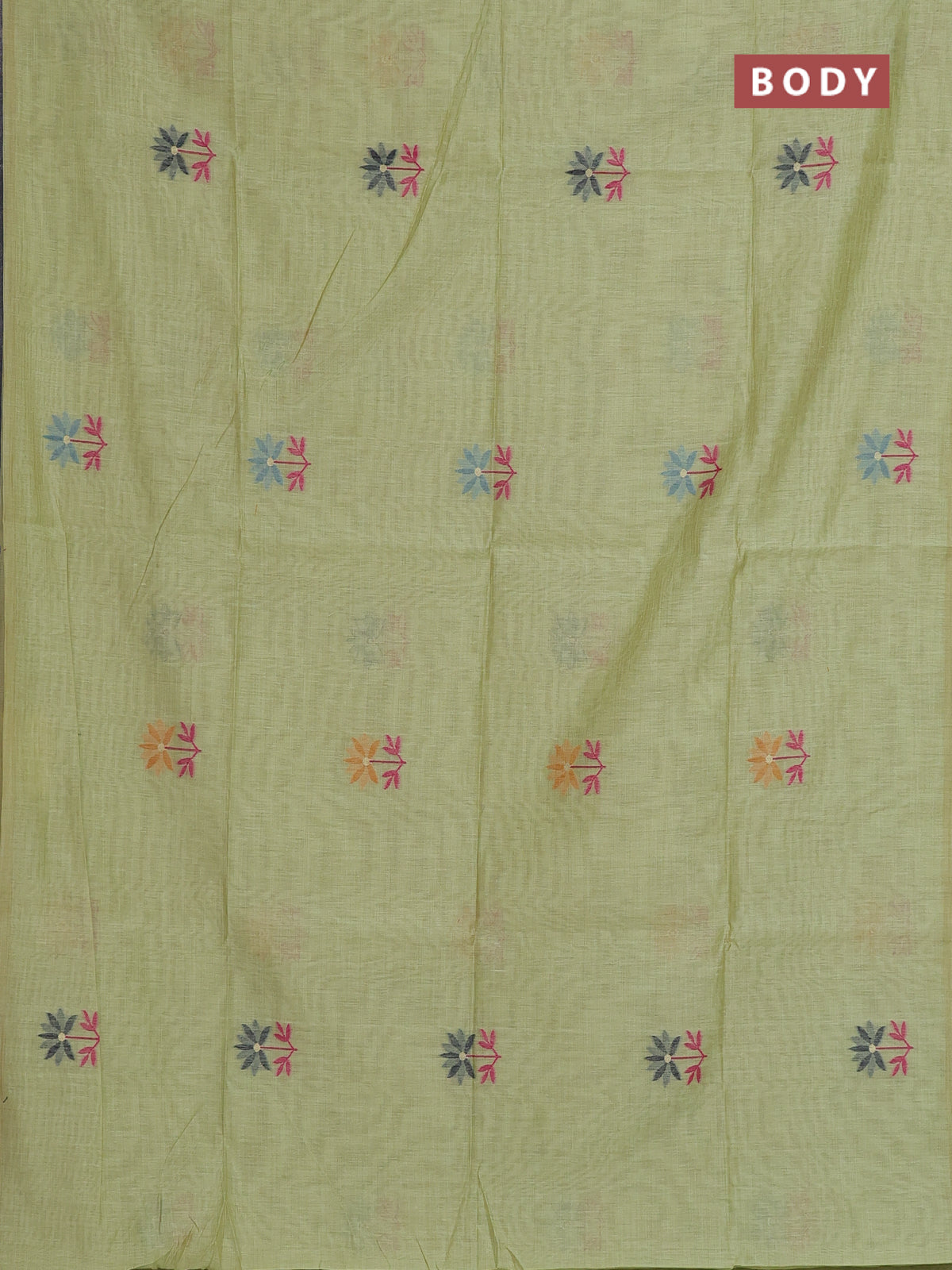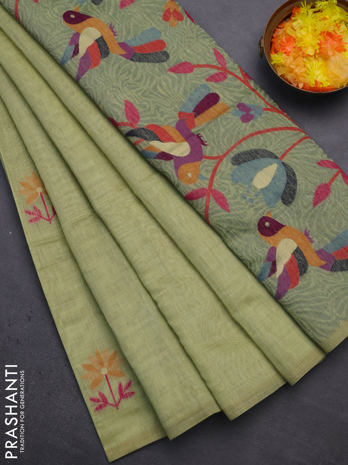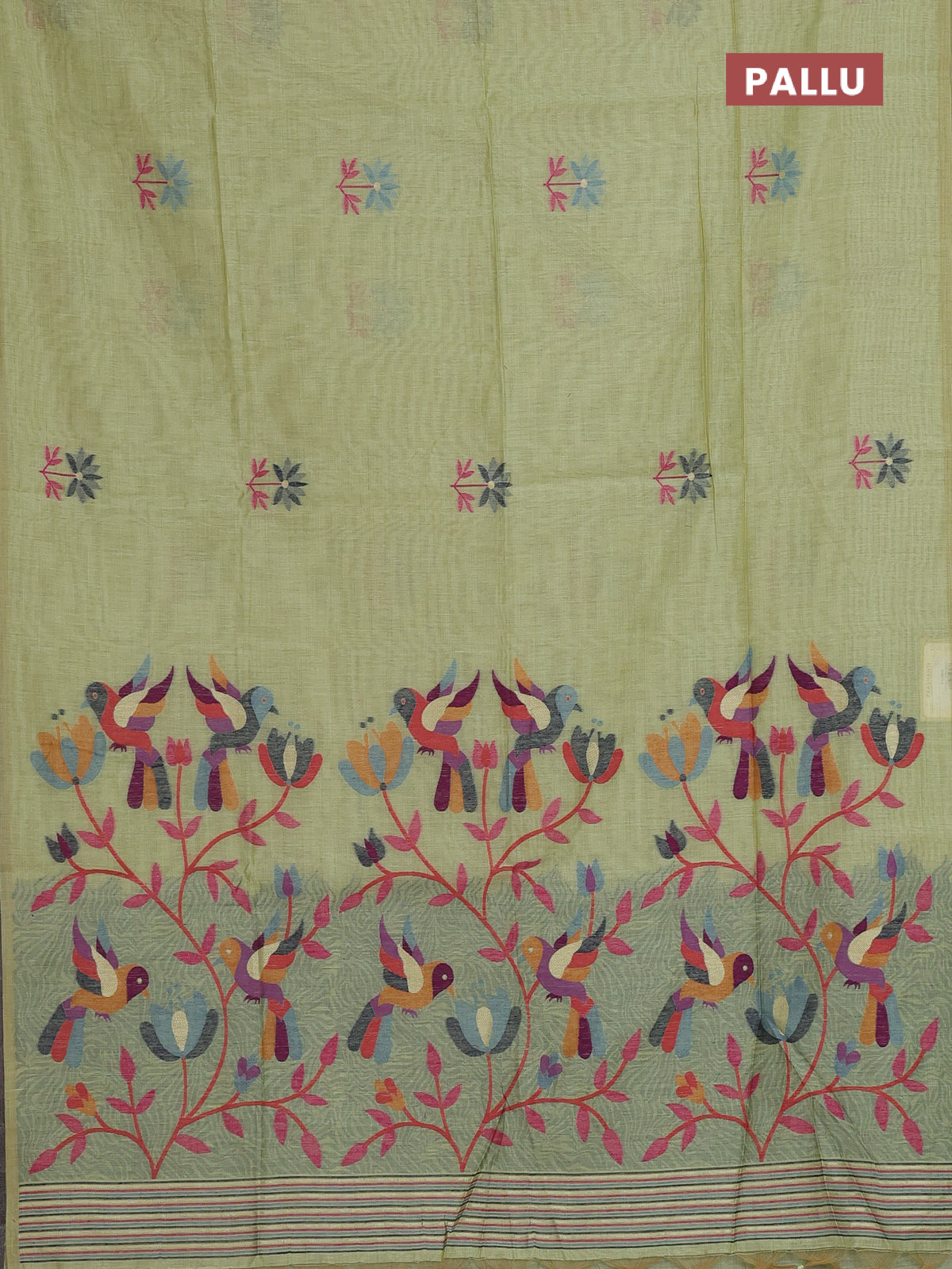Munga cotton saree pista green with thread woven floral buttas and thread weaving pallu