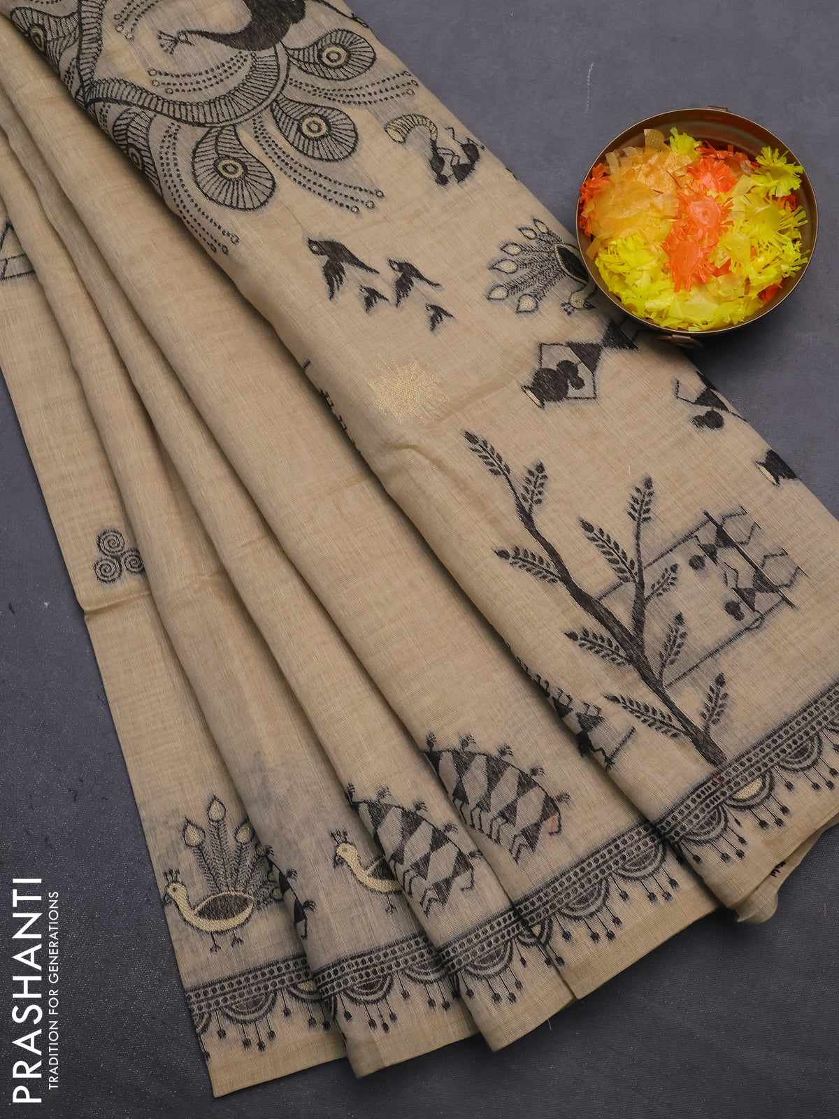 Munga cotton saree sandal with thread woven buttas and thread woven border