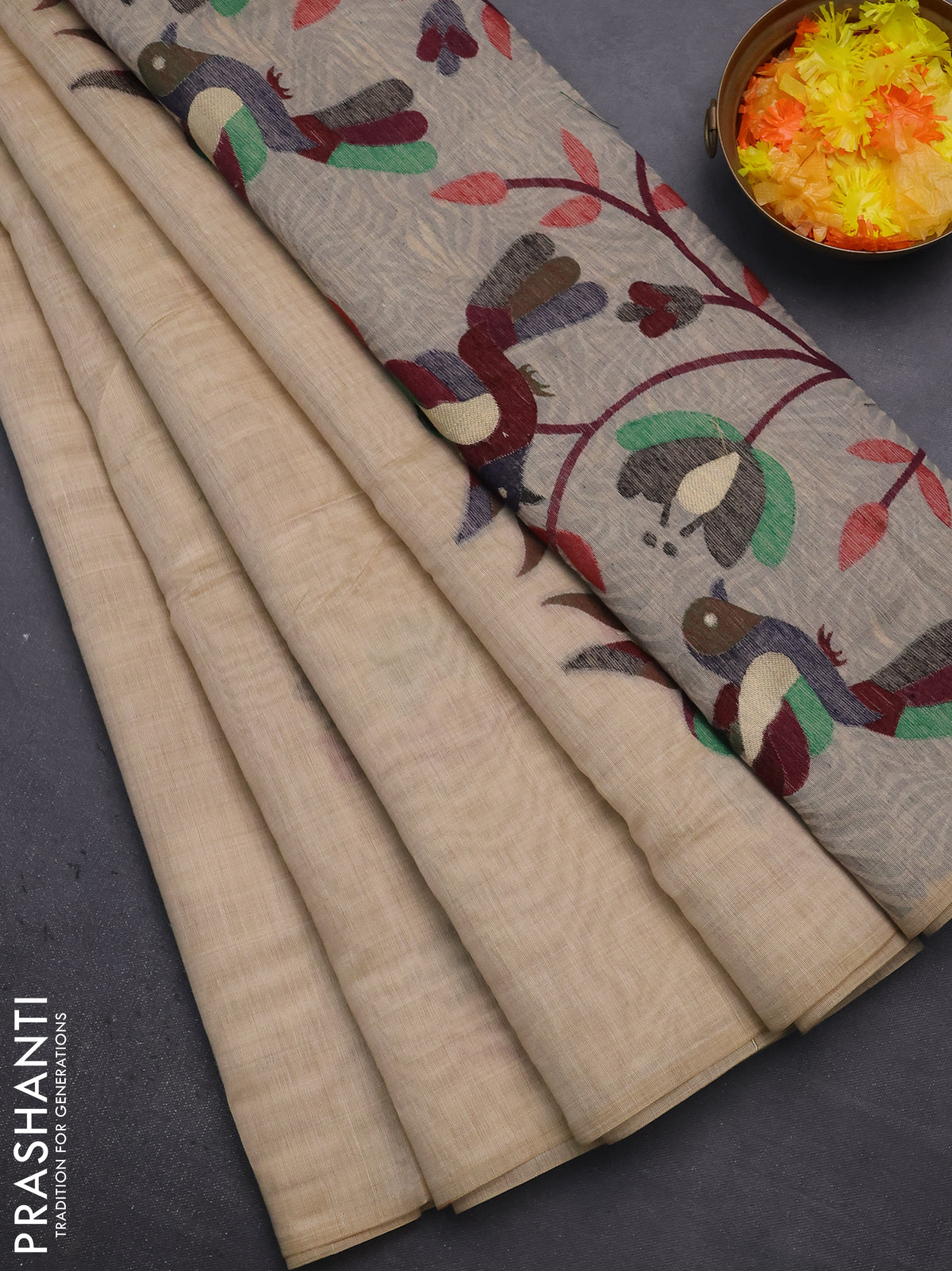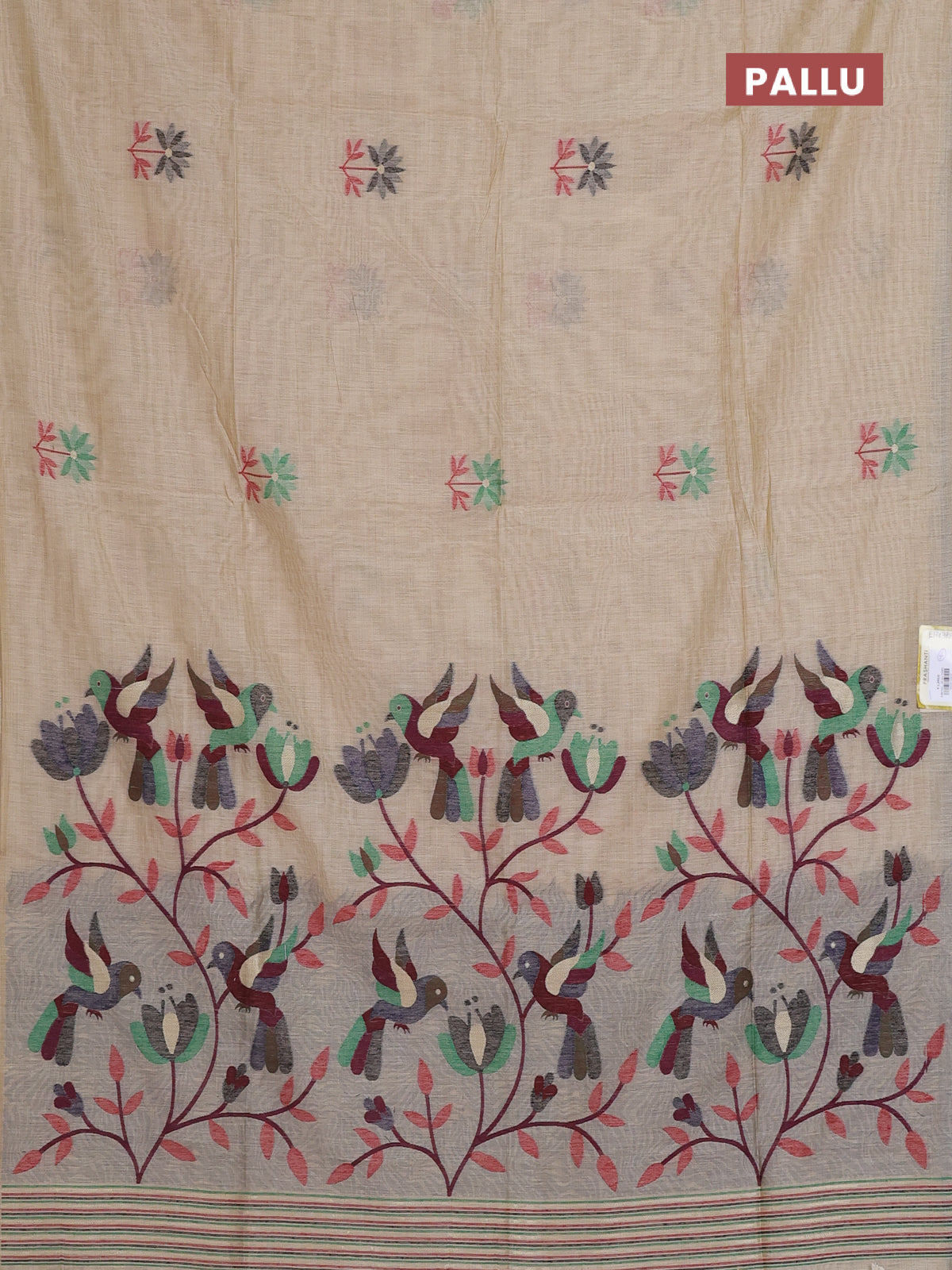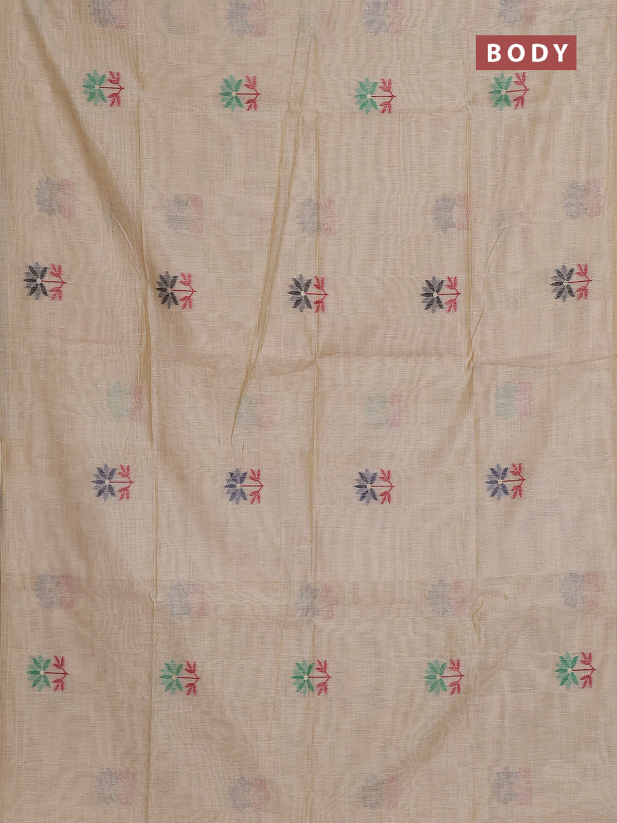 Munga cotton saree sandal with thread woven floral buttas and thread weaving pallu