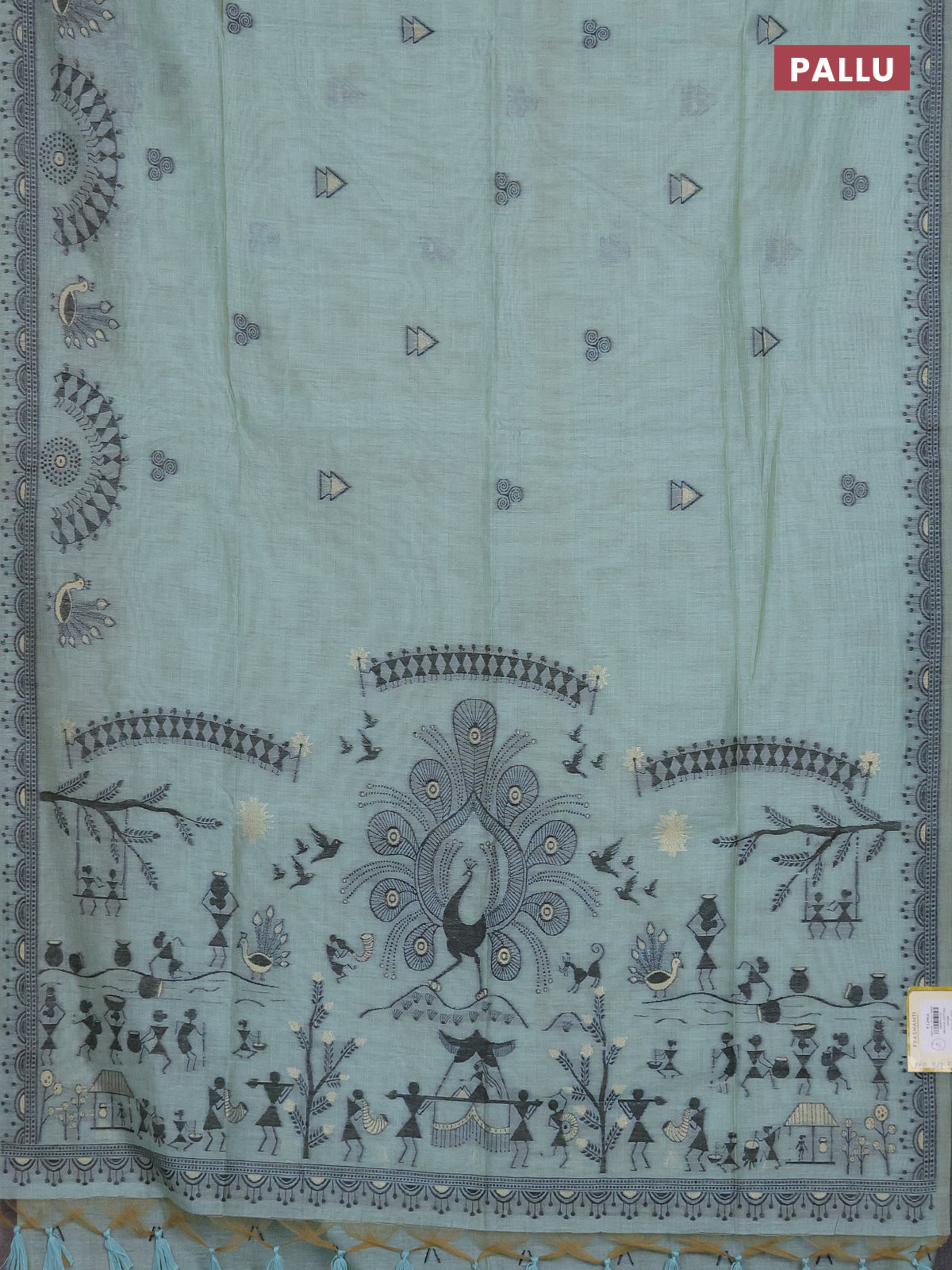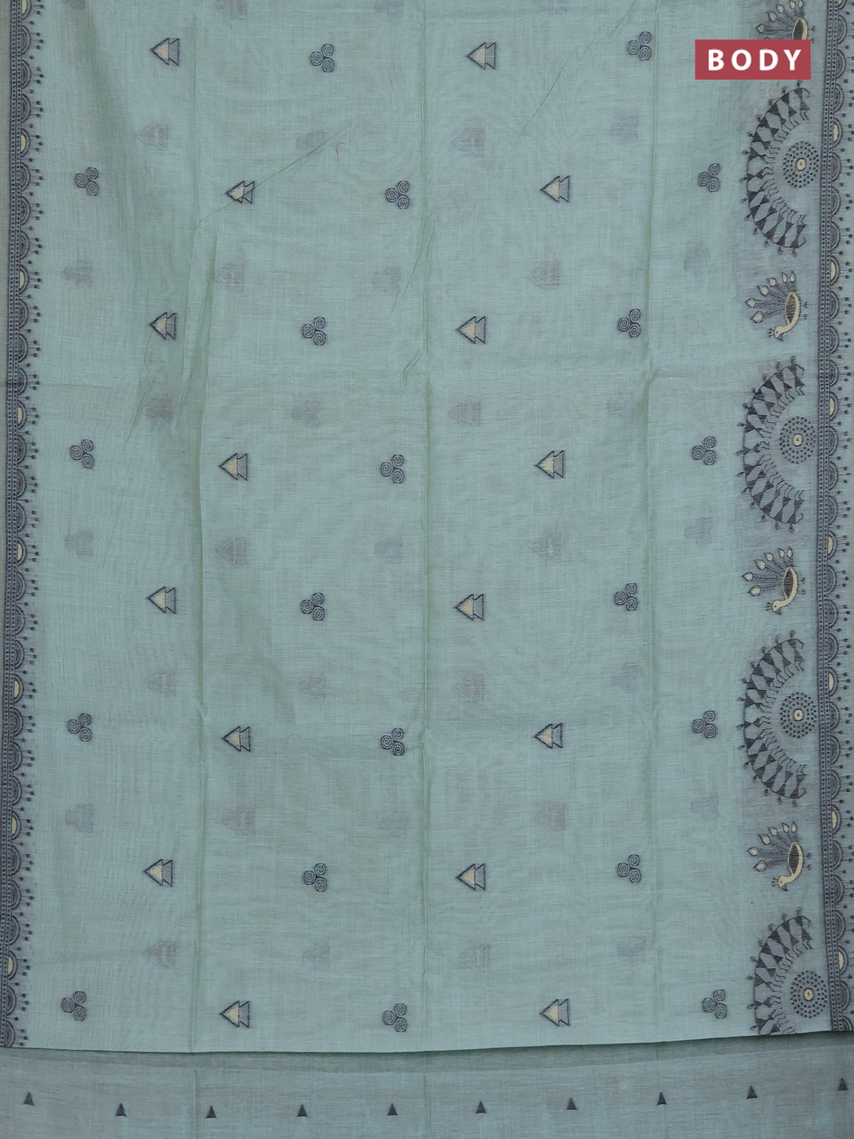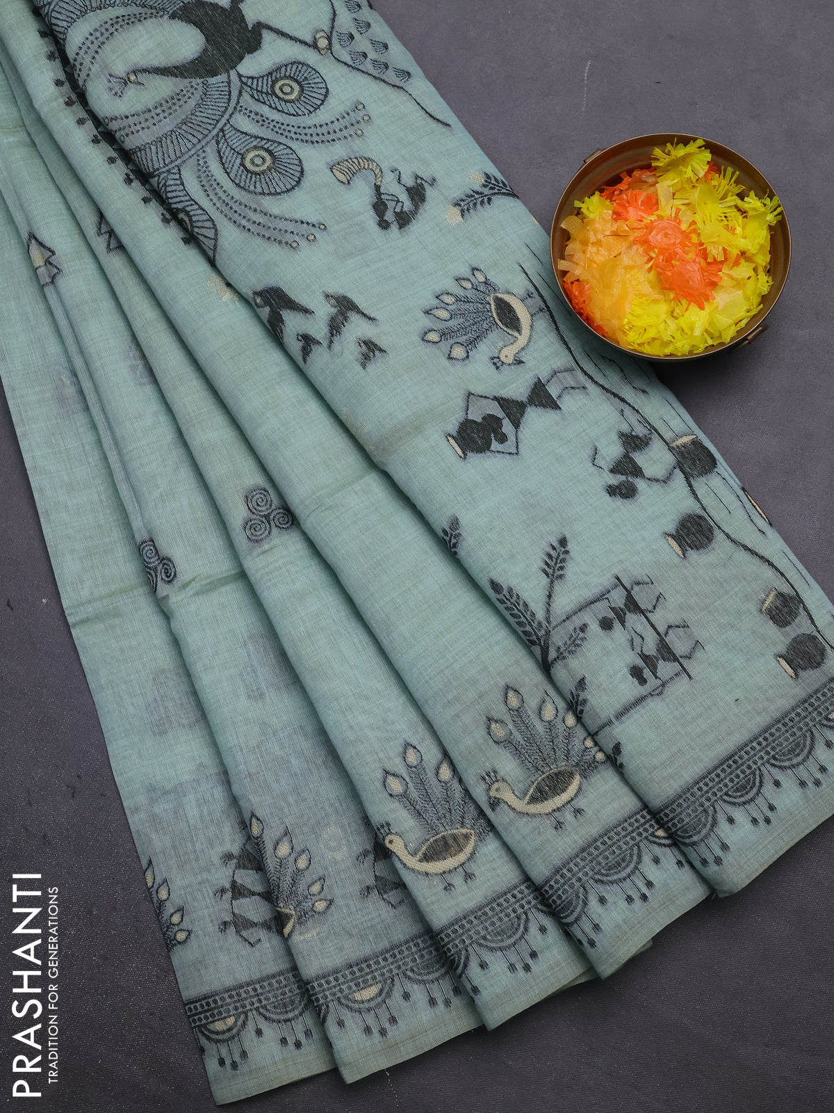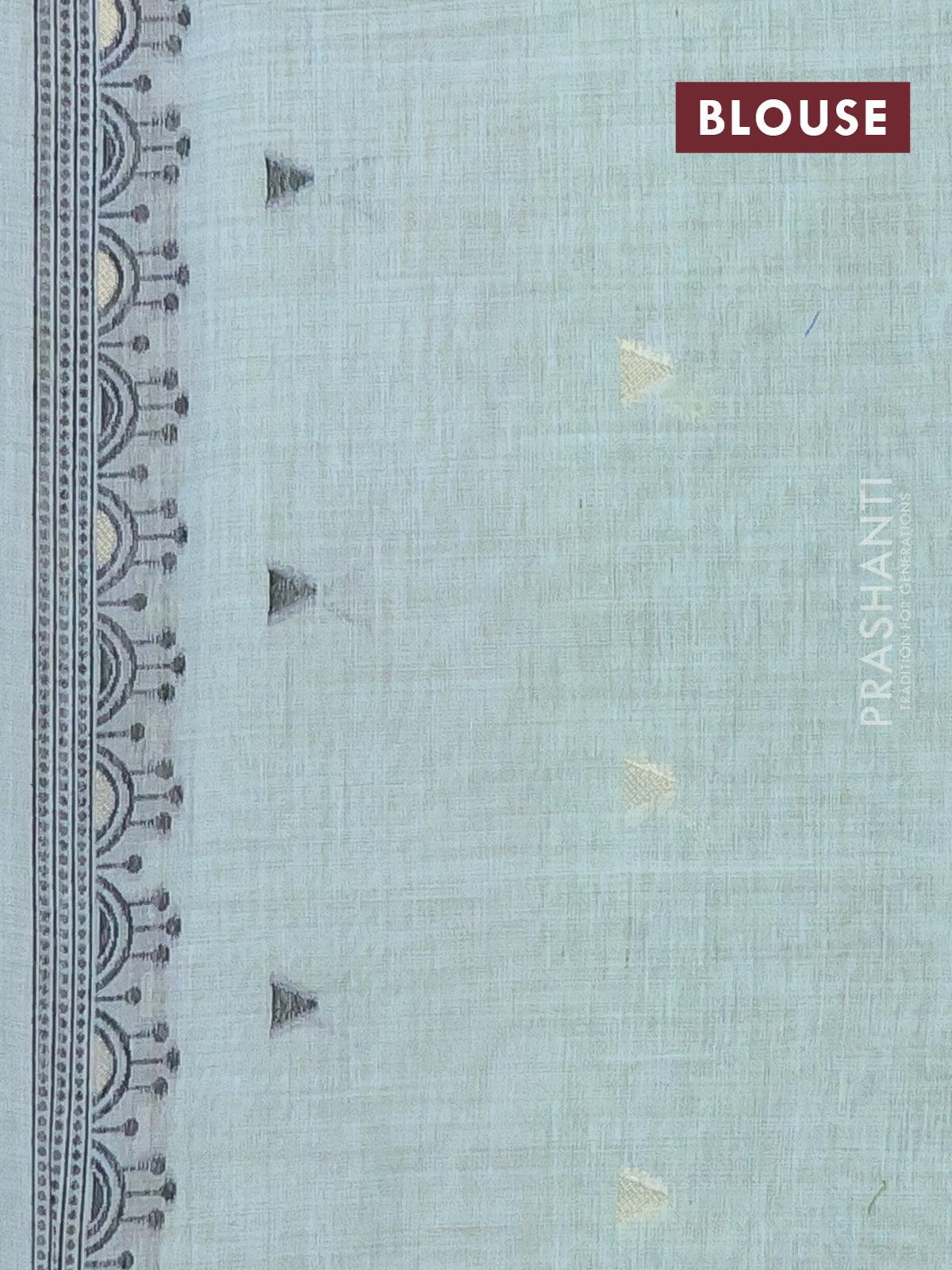 Munga cotton saree teal blue with thread woven buttas and thread woven border