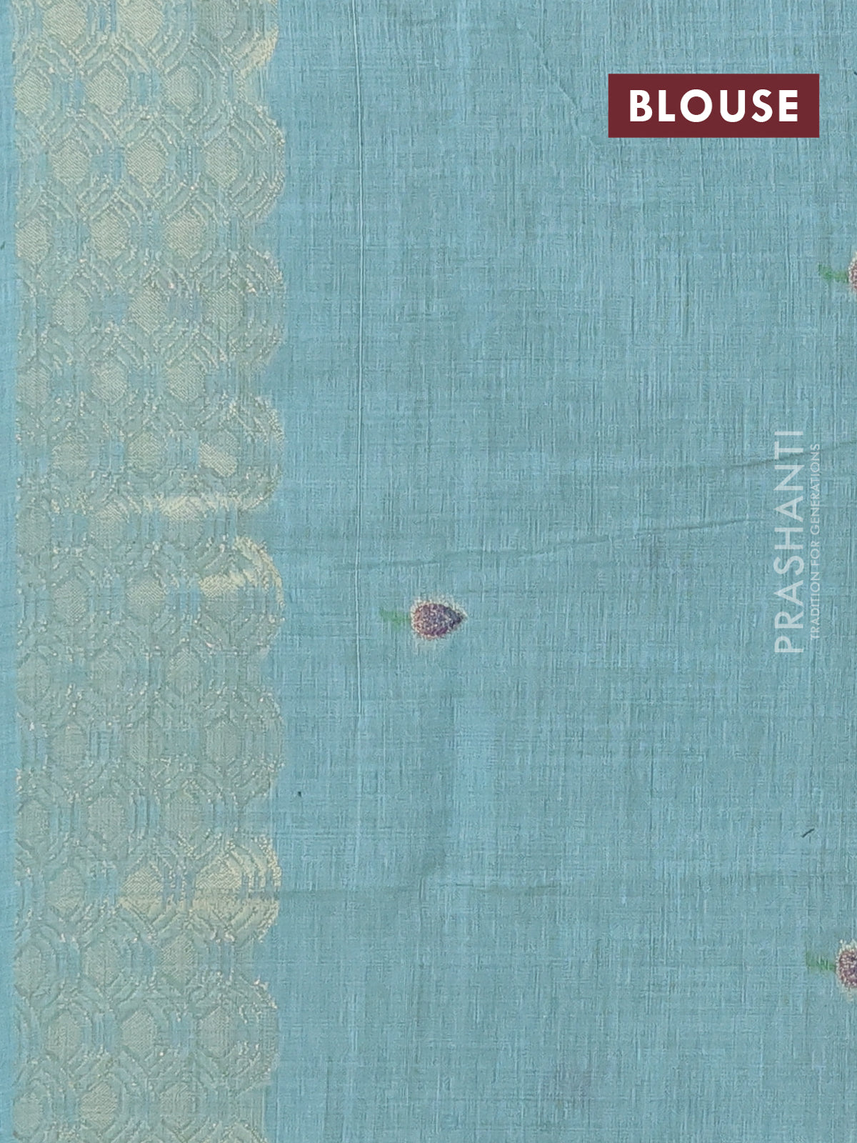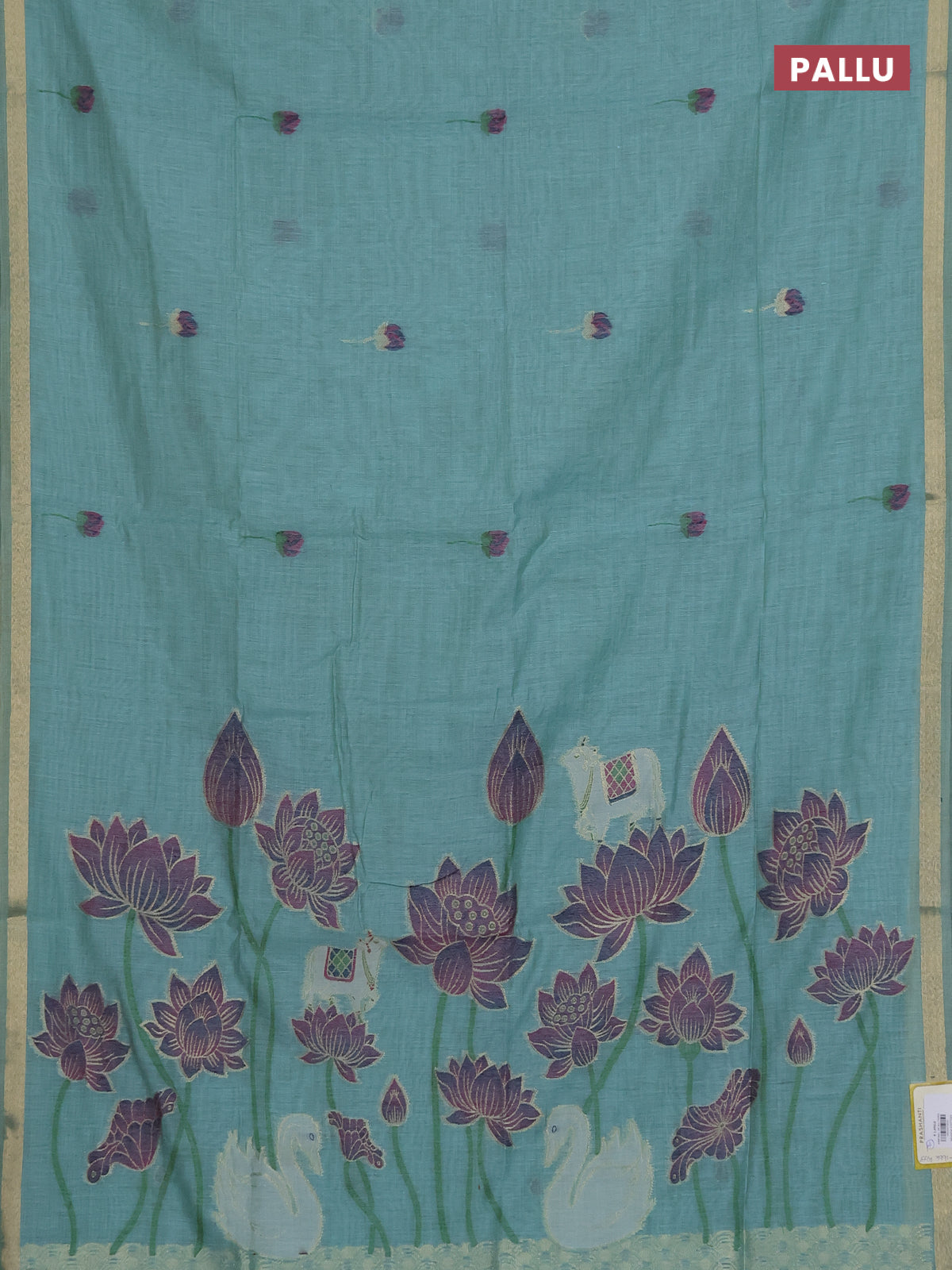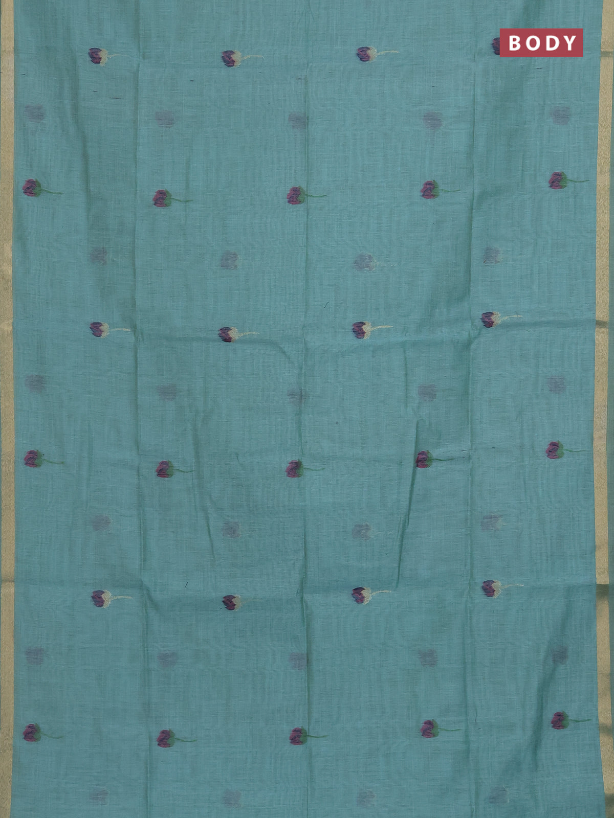 Munga cotton saree teal blue with thread woven floral buttas and pichwai design weaving pallu