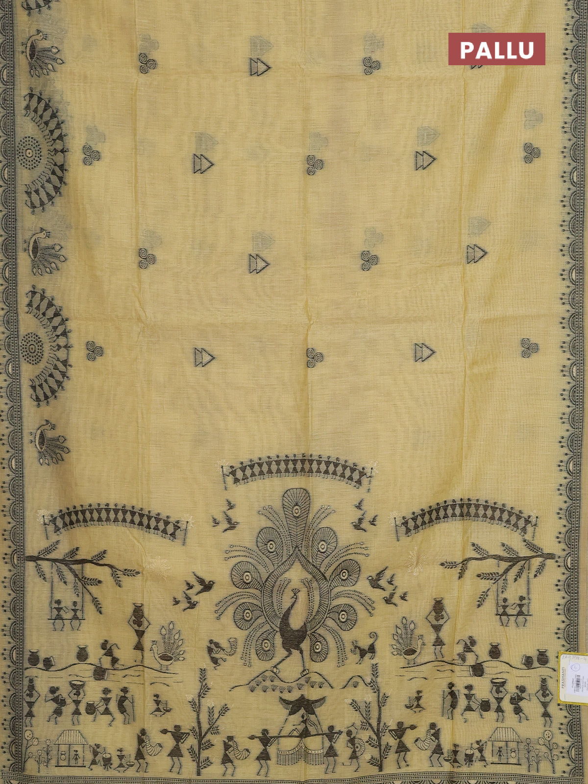 Munga cotton saree yellow with thread woven buttas and thread woven border