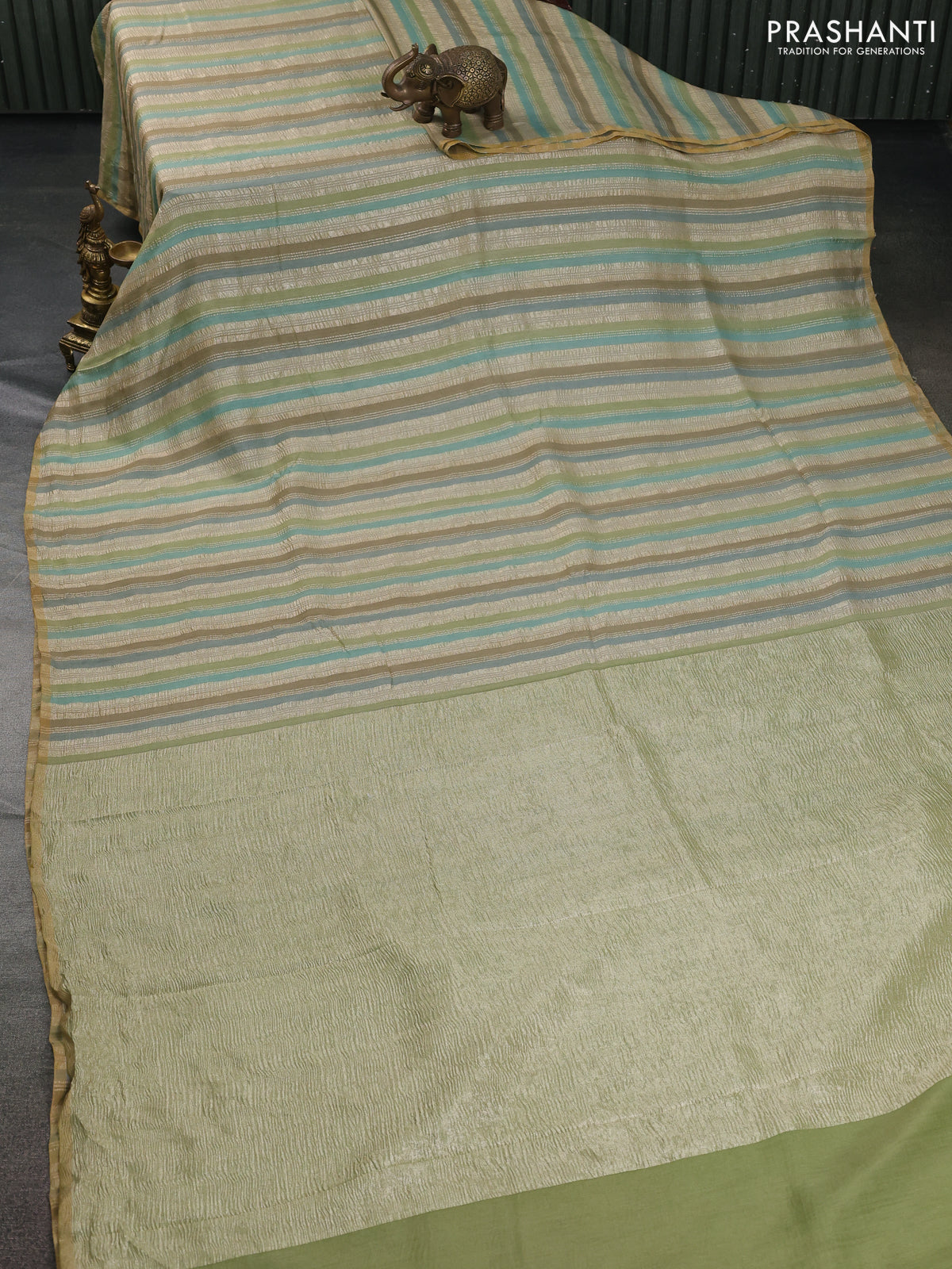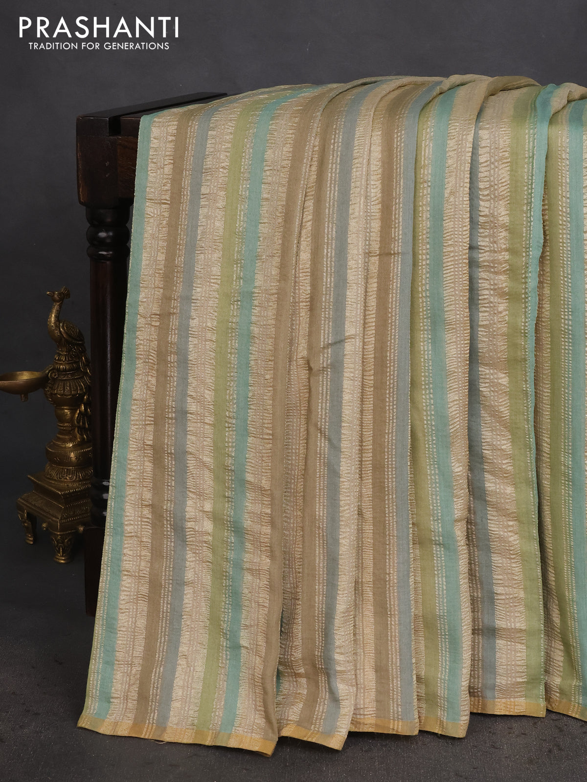 Munga silk saree multi colour with allover zari woven stripes pattern in borderless style