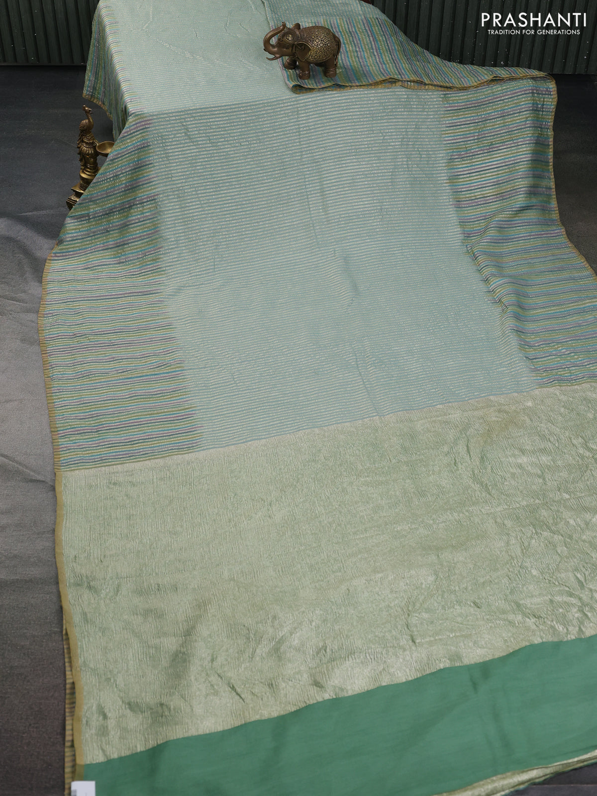Munga silk saree pastel blue and multi colour with allover zari woven stripes pattern in borderless style