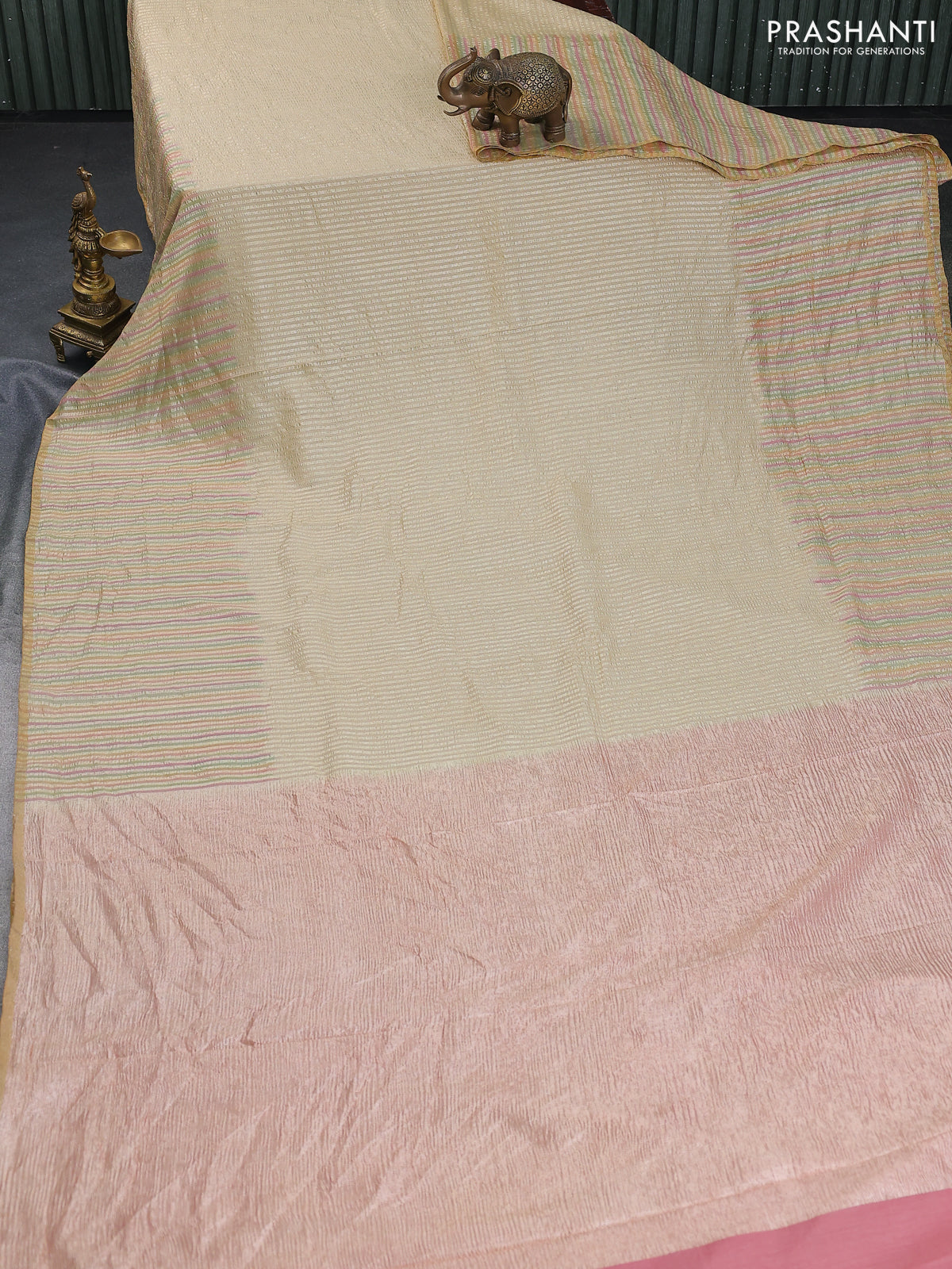 Munga silk saree sandal with allover zari woven stripes pattern in borderless style