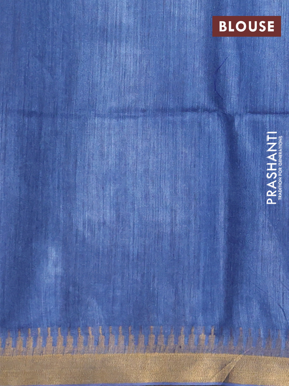 Munga tussar silk saree blue with allover zari woven buttas and zari woven border