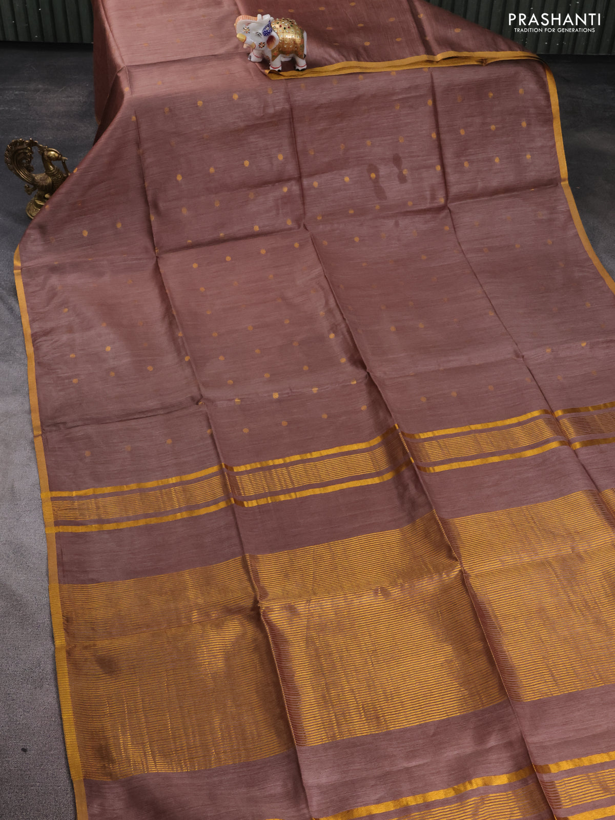 Munga tussar silk saree brown shade with allover zari woven buttas and zari woven border