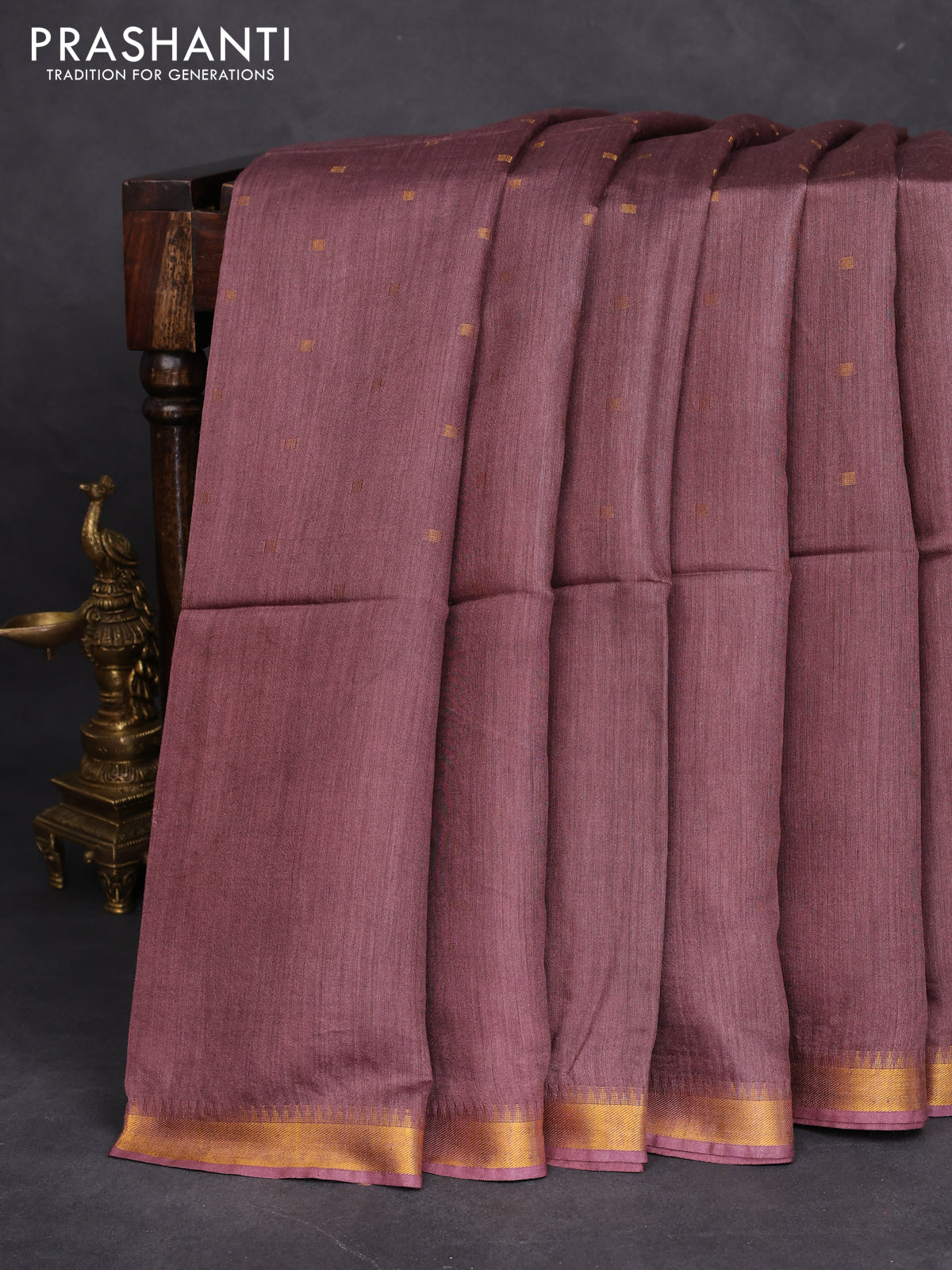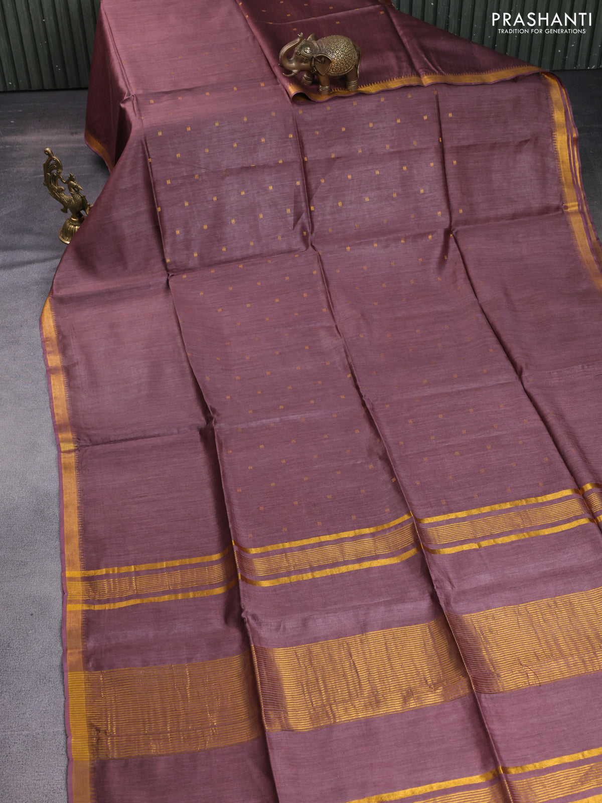 Munga tussar silk saree brown shade with allover zari woven buttas and zari woven border