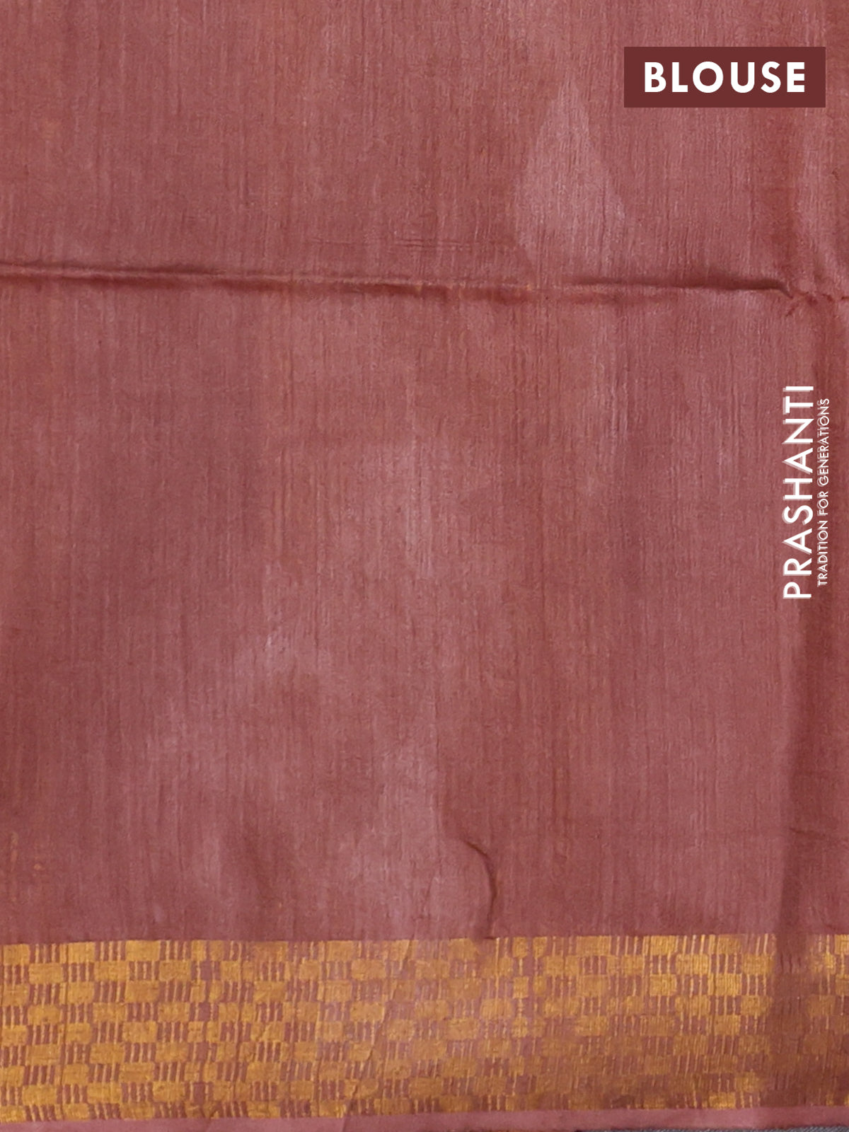 Munga tussar silk saree brown with allover zari woven buttas and zari woven border