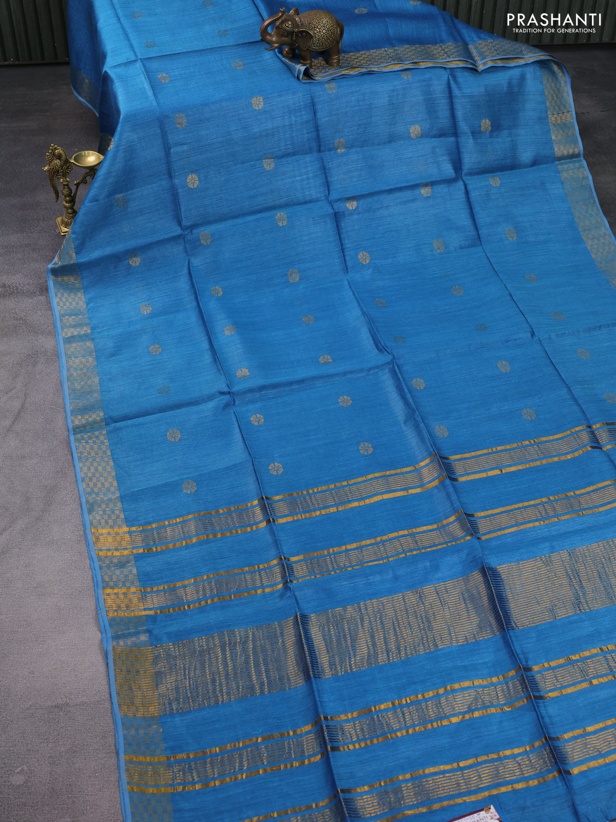Munga tussar silk saree cs blue with allover zari woven buttas and zari woven border