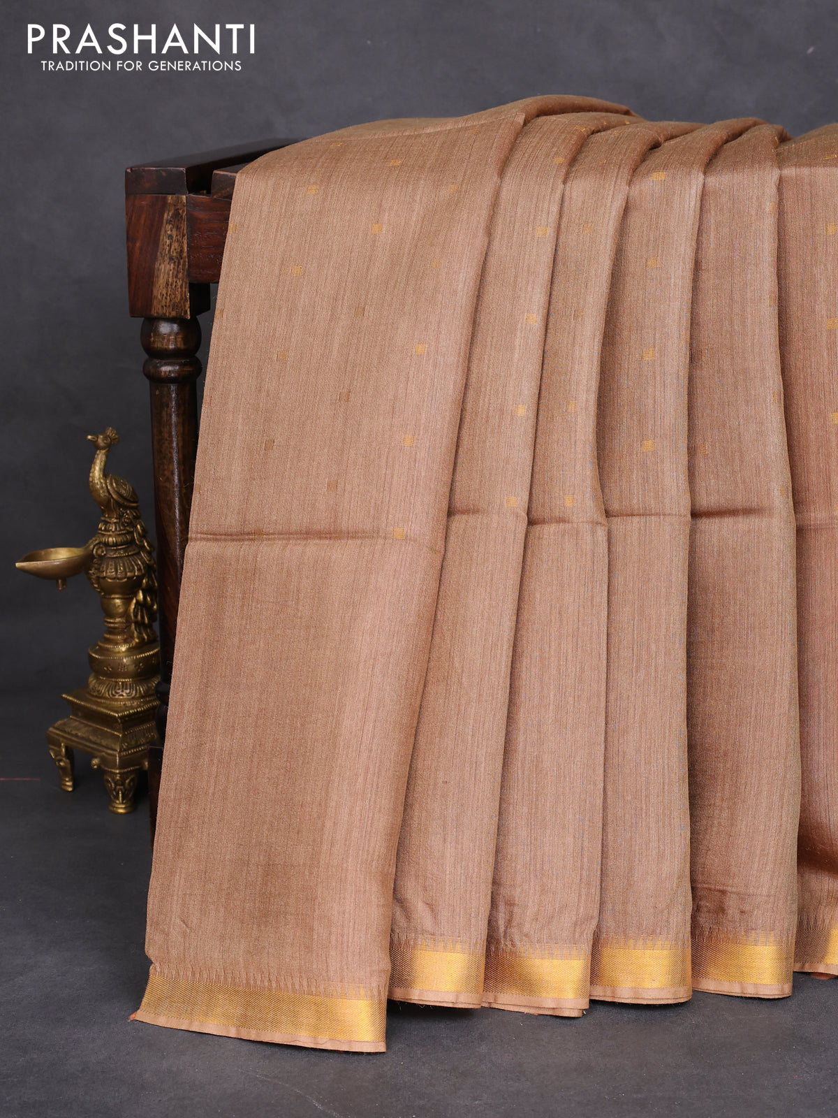 Munga tussar silk saree dark sandal with allover zari woven buttas and zari woven border