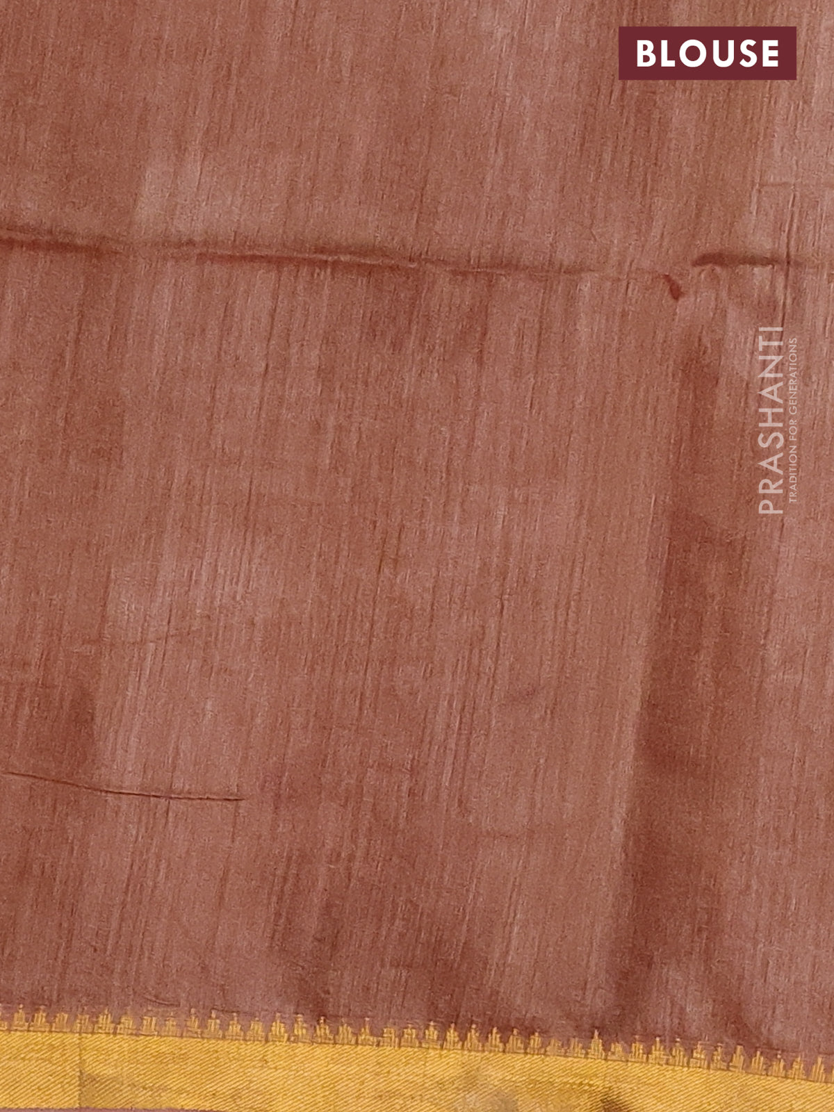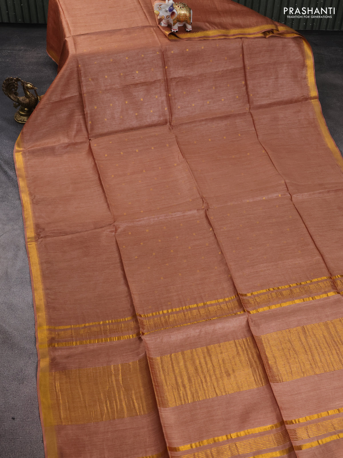 Munga tussar silk saree dark sandal with allover zari woven buttas and zari woven border
