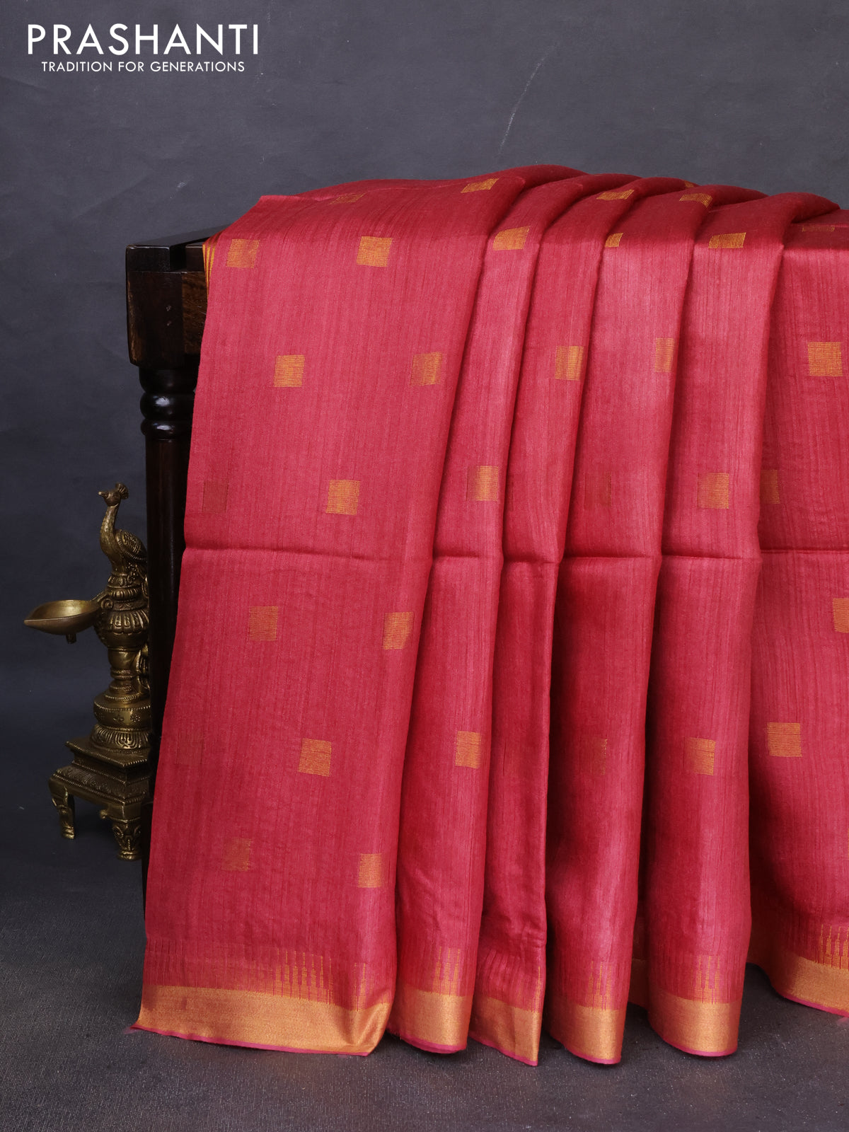 Munga tussar silk saree maroon with allover zari woven buttas and zari woven border