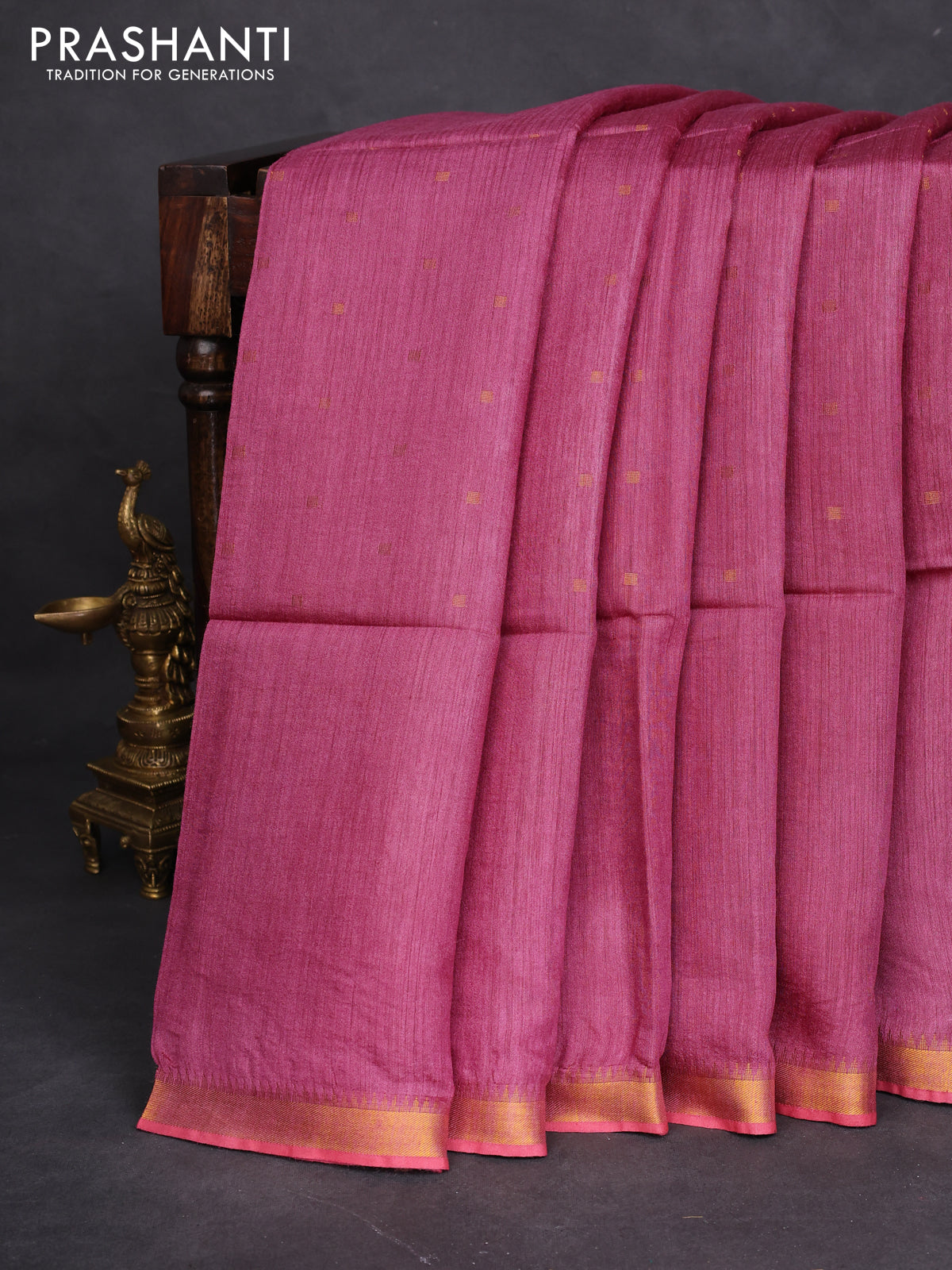 Munga tussar silk saree mauve pink with allover zari woven buttas and zari woven border