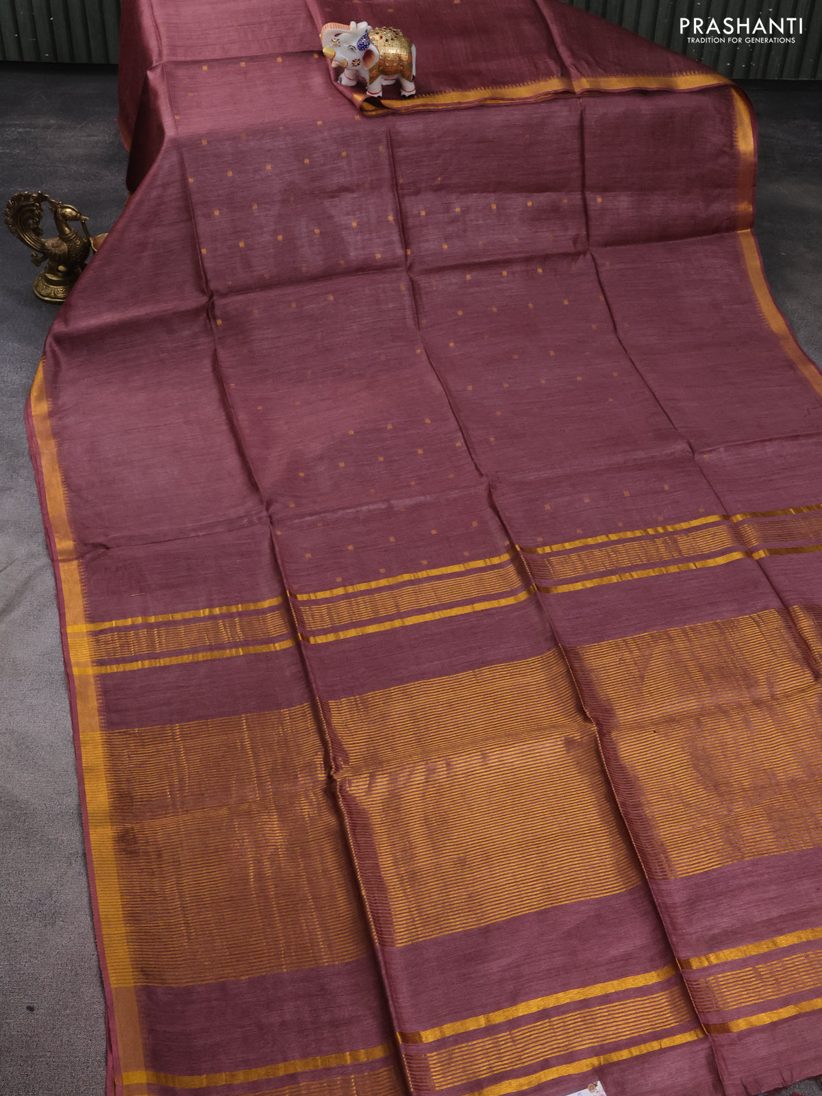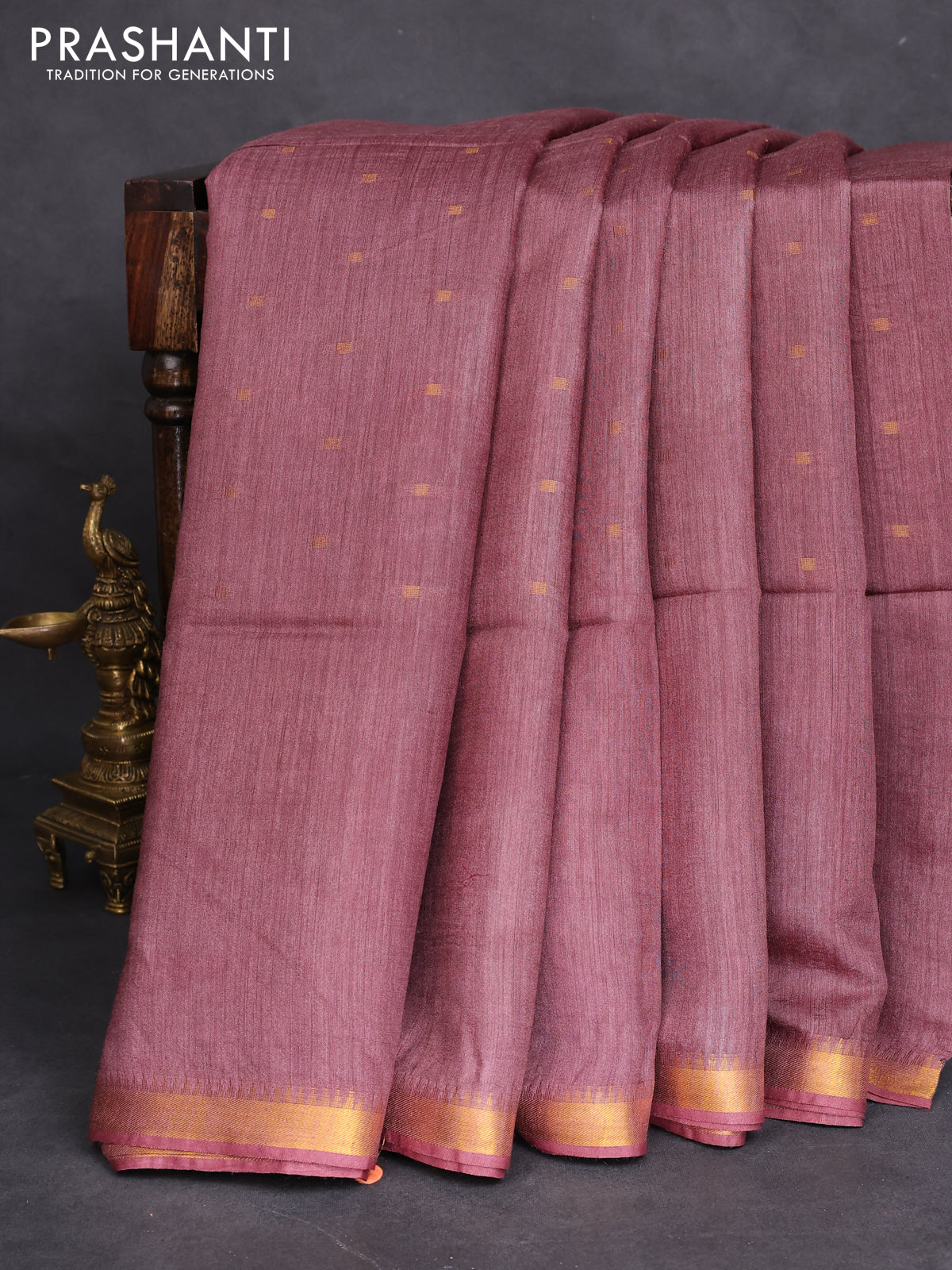 Munga tussar silk saree pastel maroon with allover zari woven buttas and zari woven border