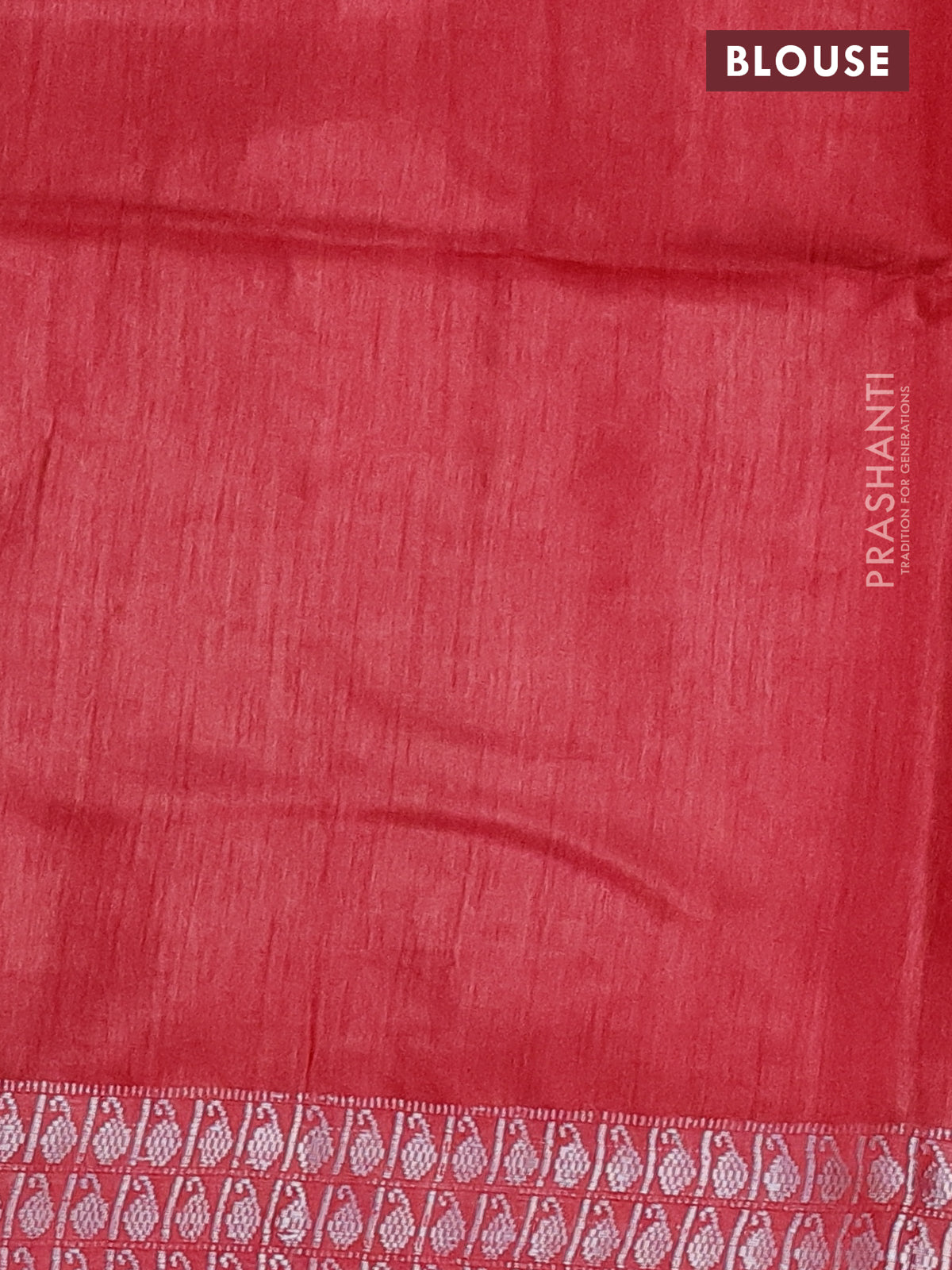 Munga tussar silk saree red with silver zari woven buttas and silver zari woven border