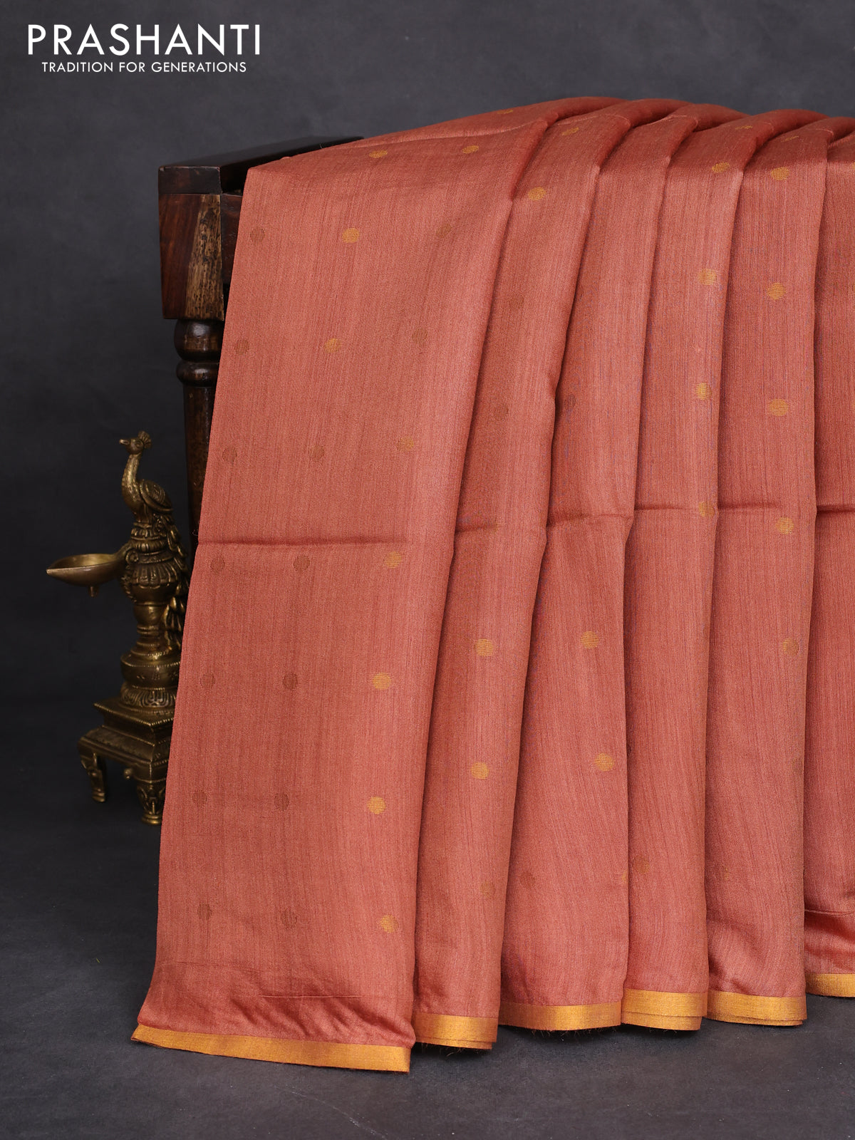 Munga tussar silk saree rust shade with allover zari woven buttas and zari woven border