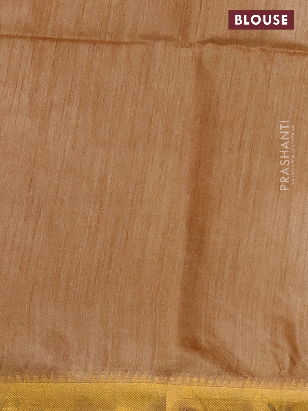 Munga tussar silk saree sandal with allover zari woven buttas and zari woven border