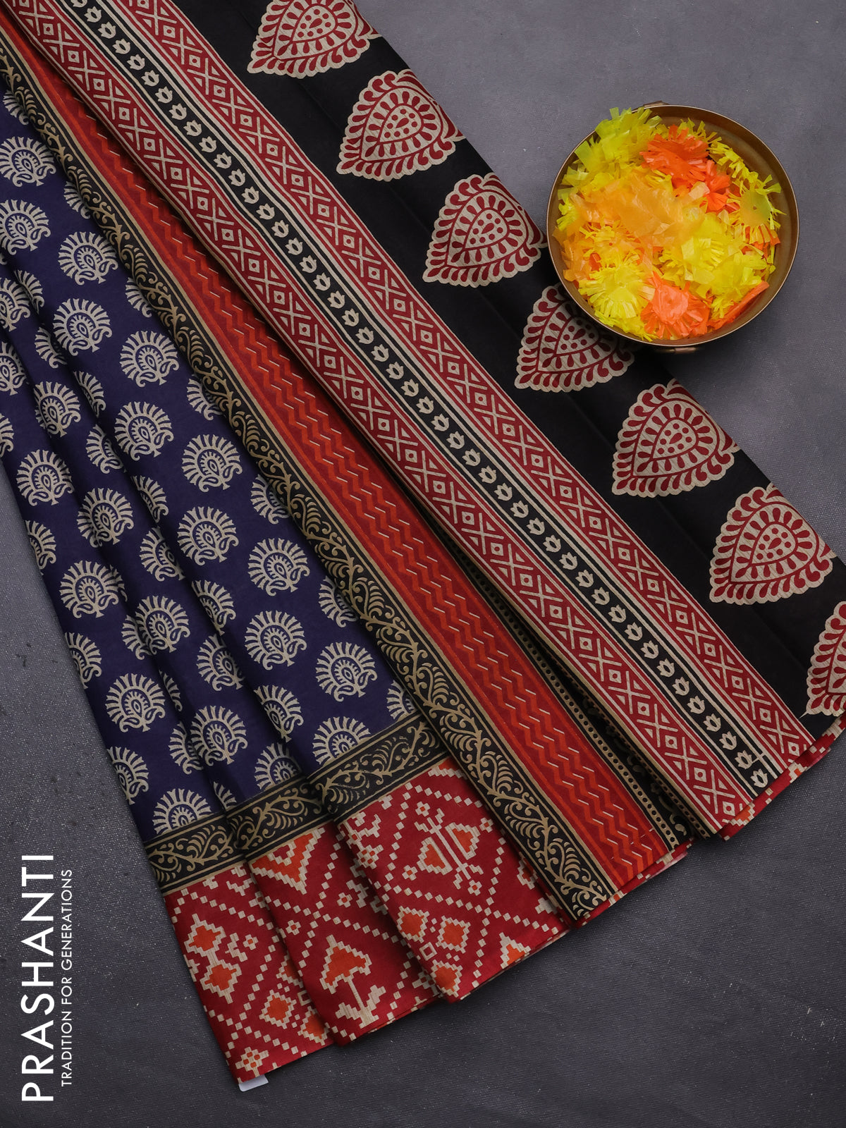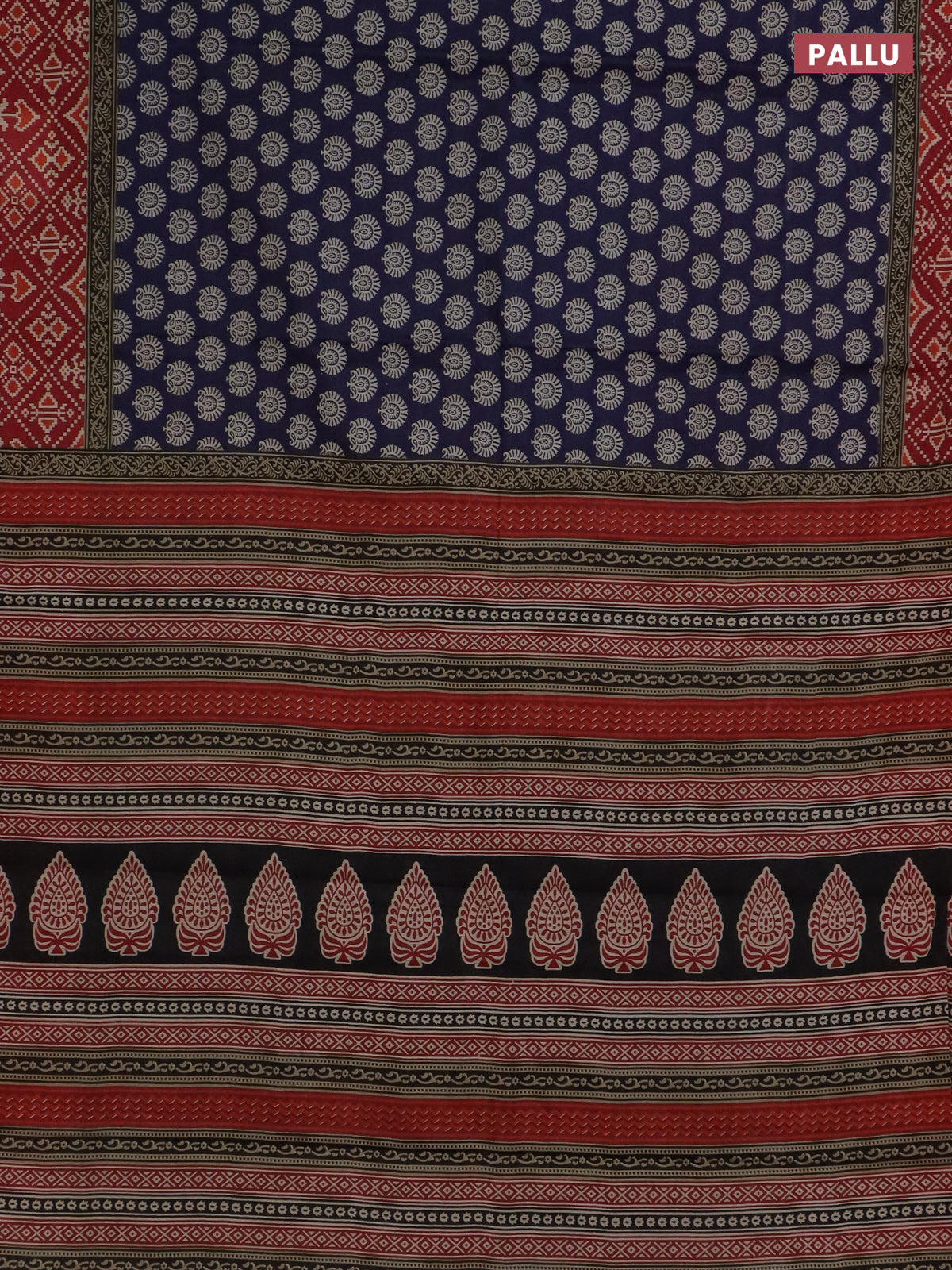 Muslin cotton saree blue and maroon with allover butta prints and printed border