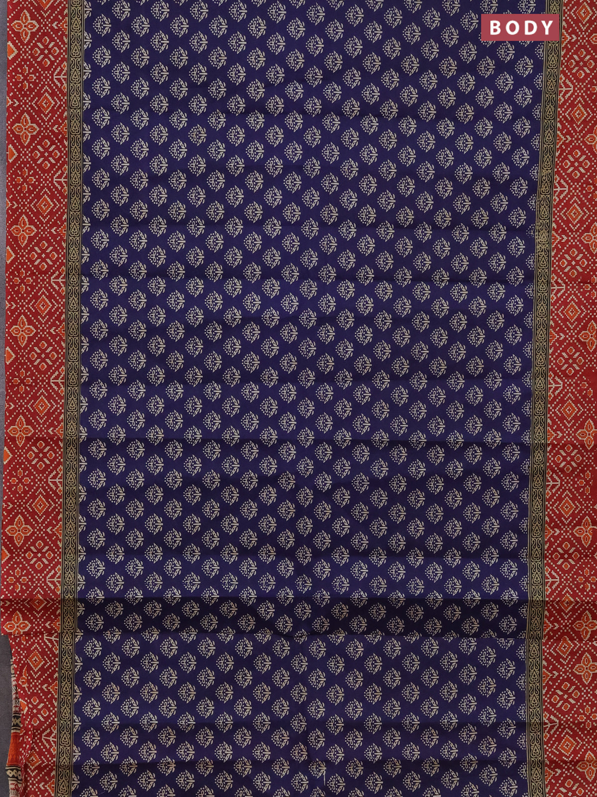 Muslin cotton saree dark blue and maroon with butta prints and printed border
