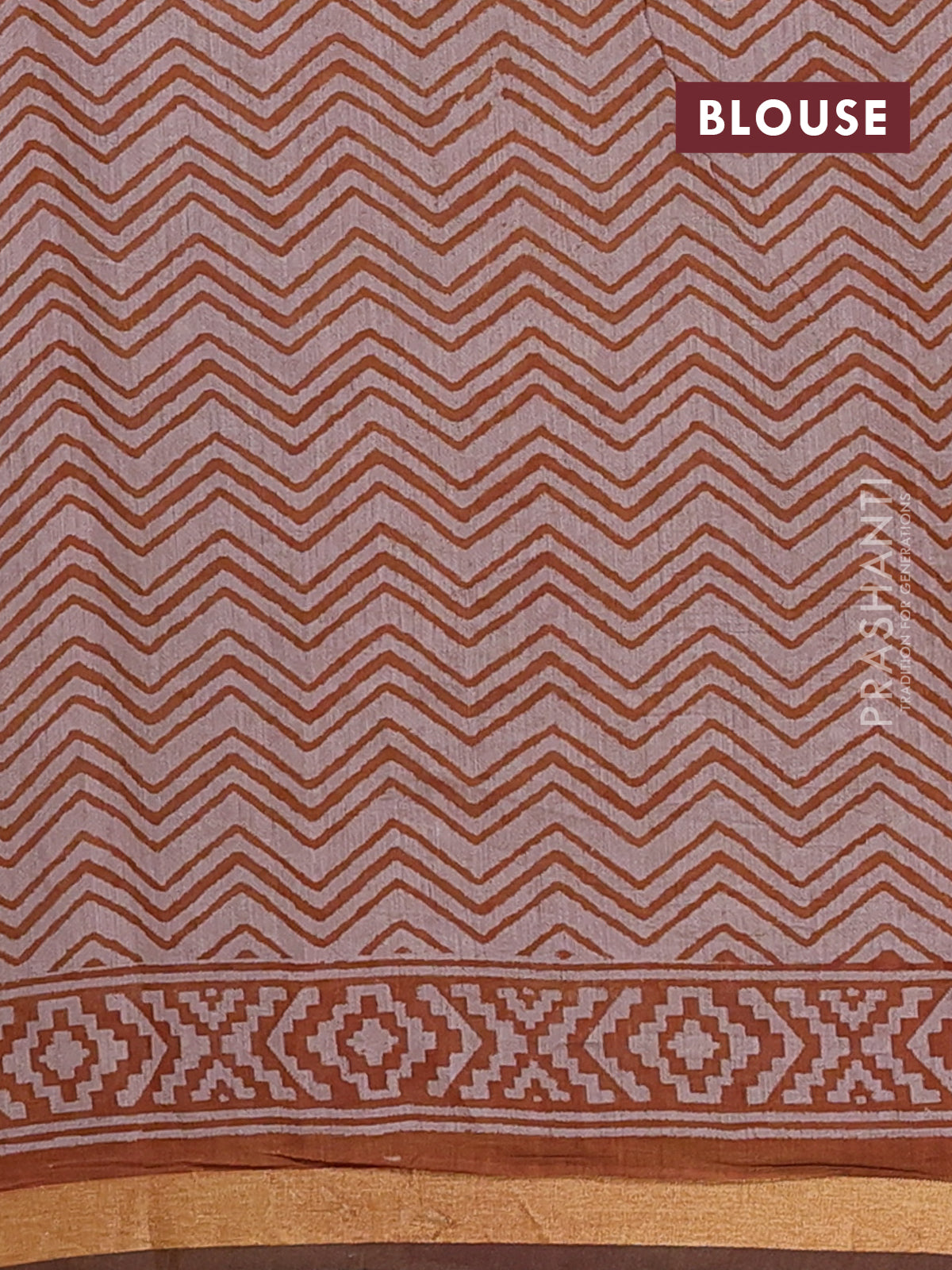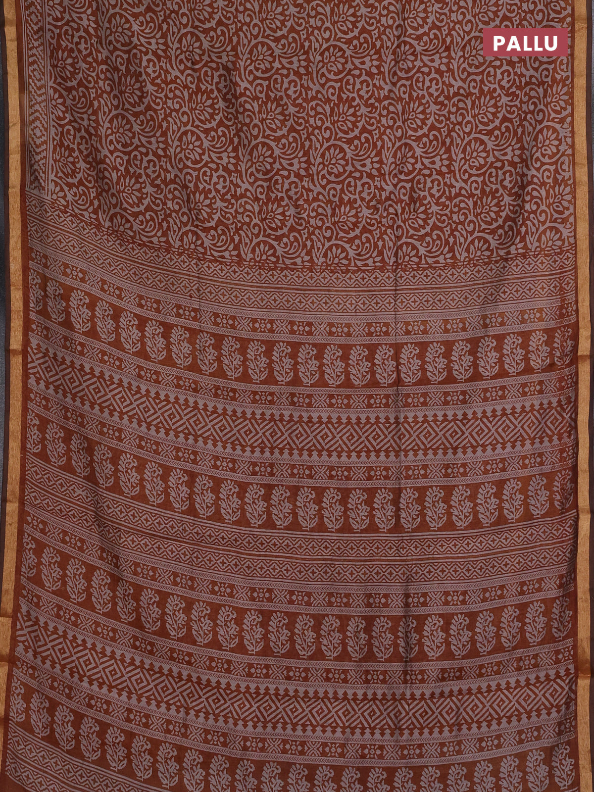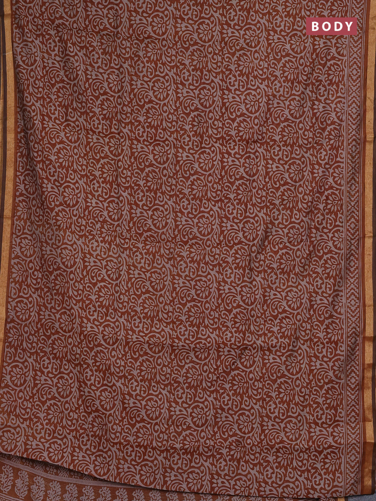Muslin cotton saree dark mustard with allover kalamkari prints and zari woven border