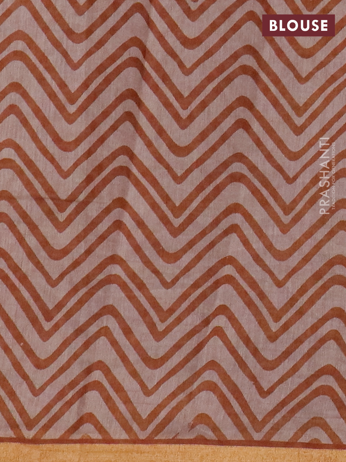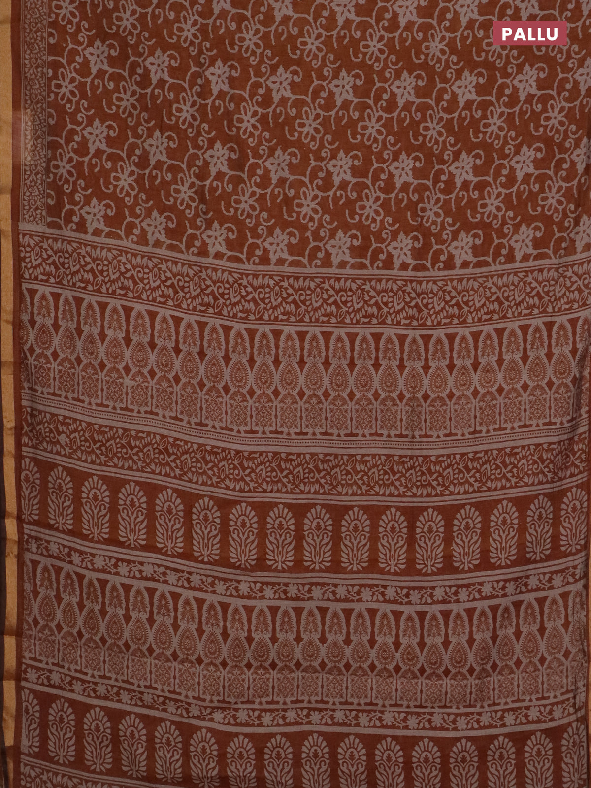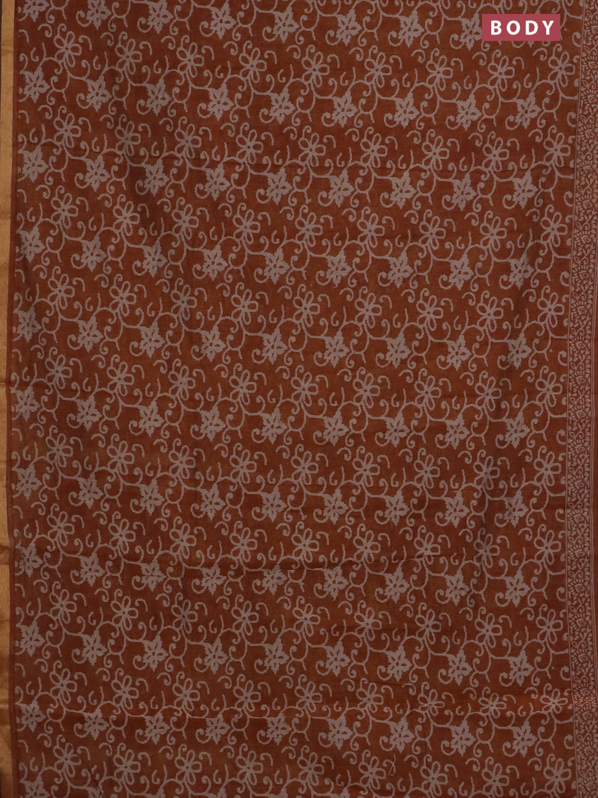 Muslin cotton saree dark mustard with allover prints and zari woven border