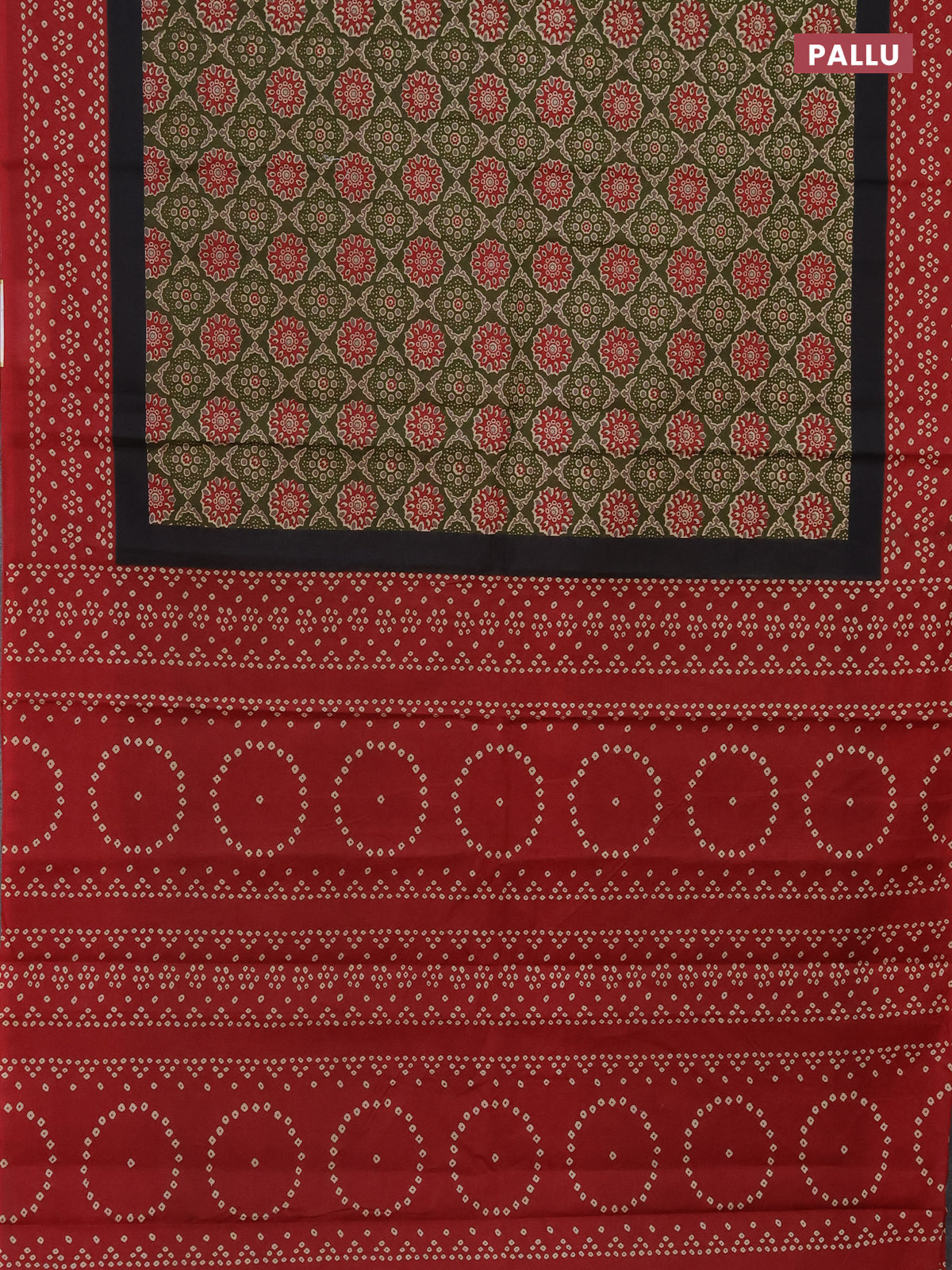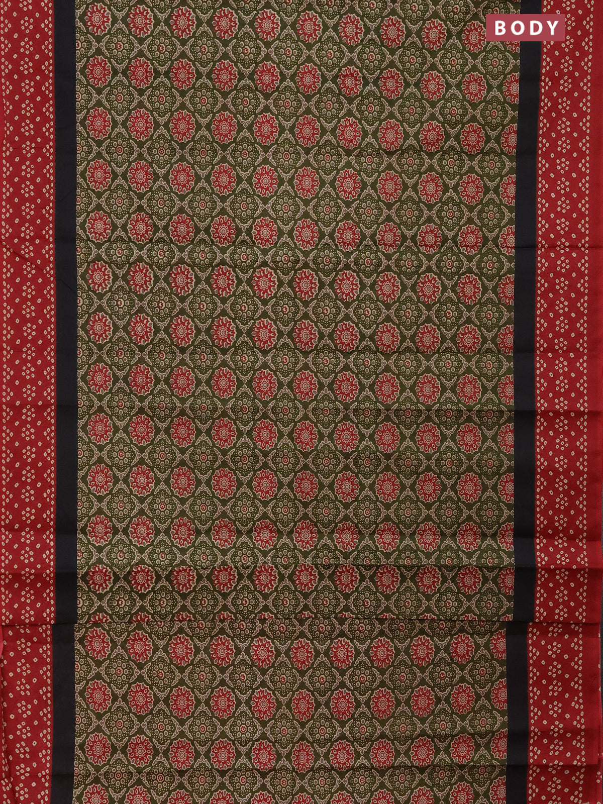 Muslin cotton saree green and maroon with allover ajrakh prints and printed border