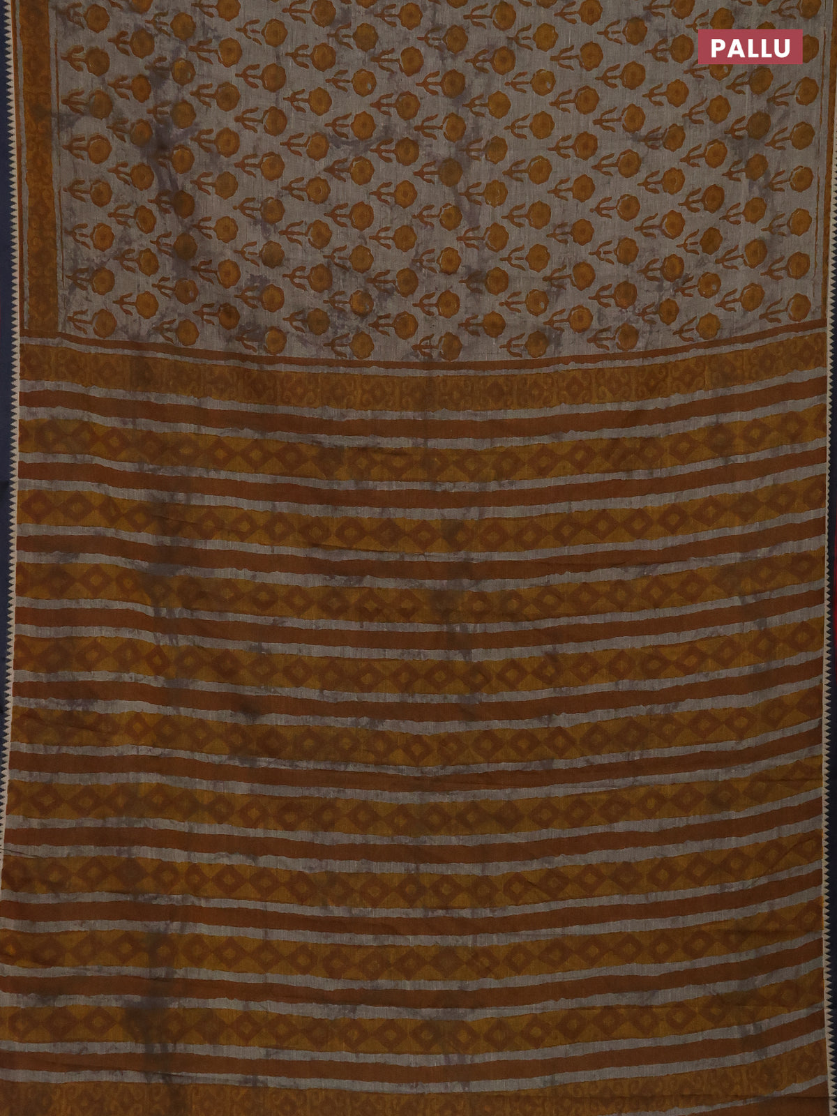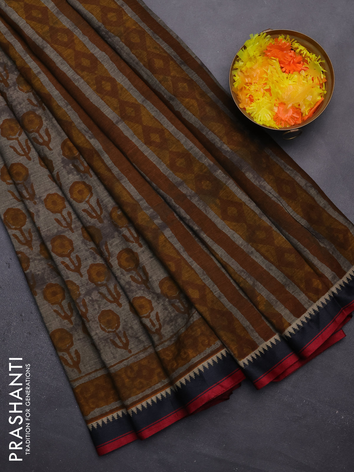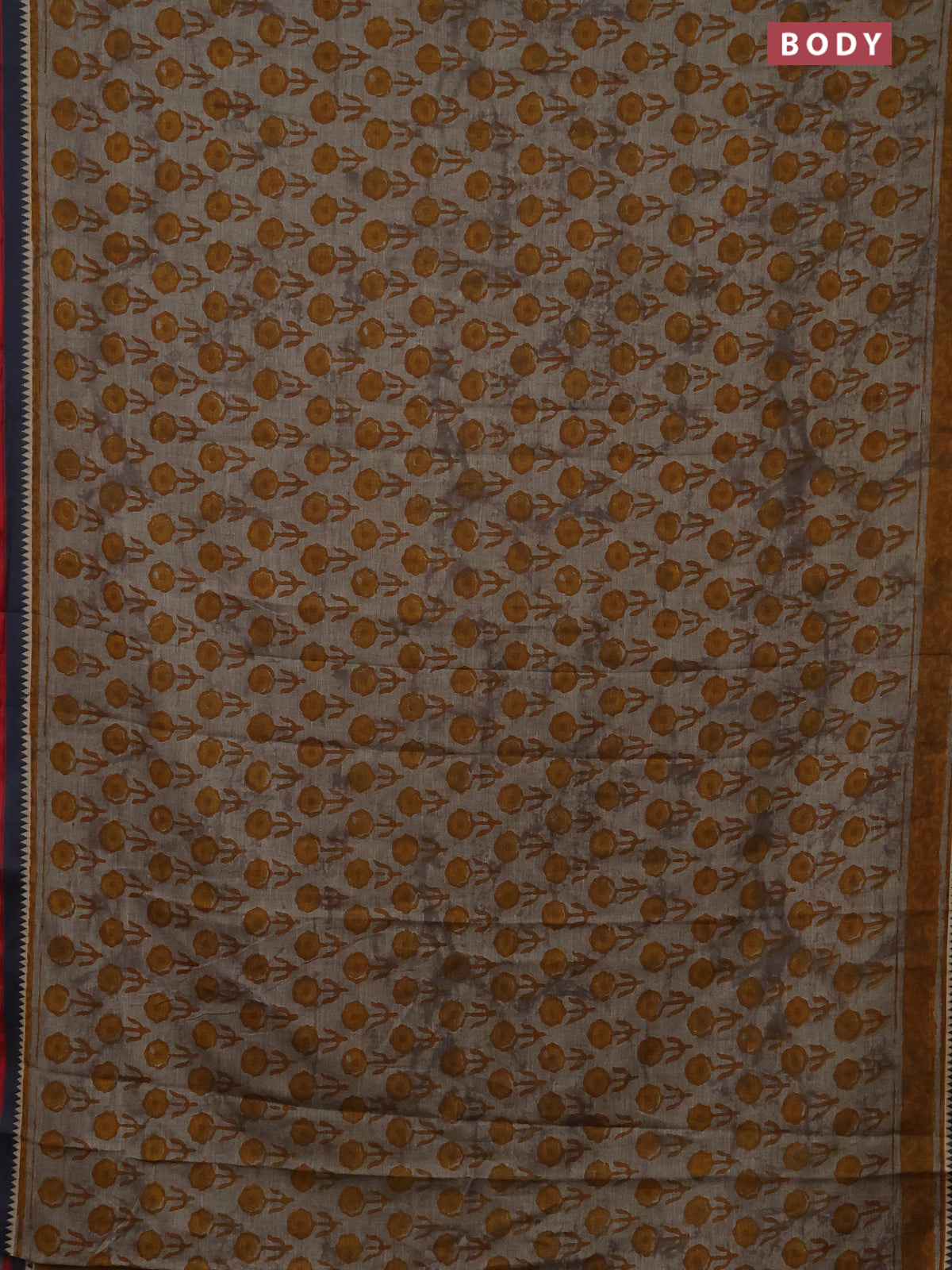 Muslin cotton saree grey and black with floral butta prints and woven border