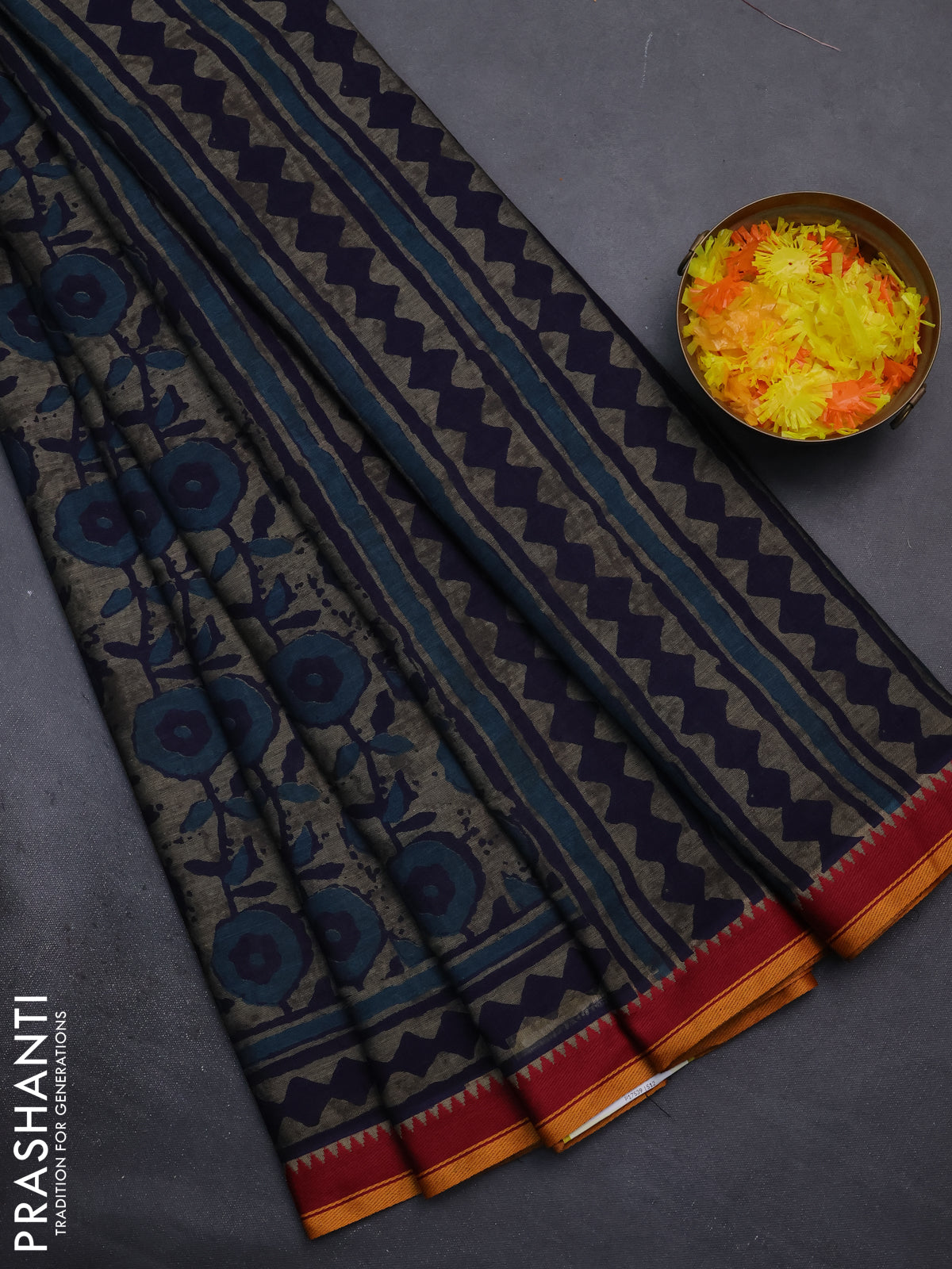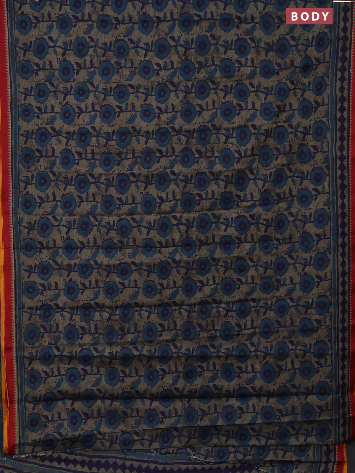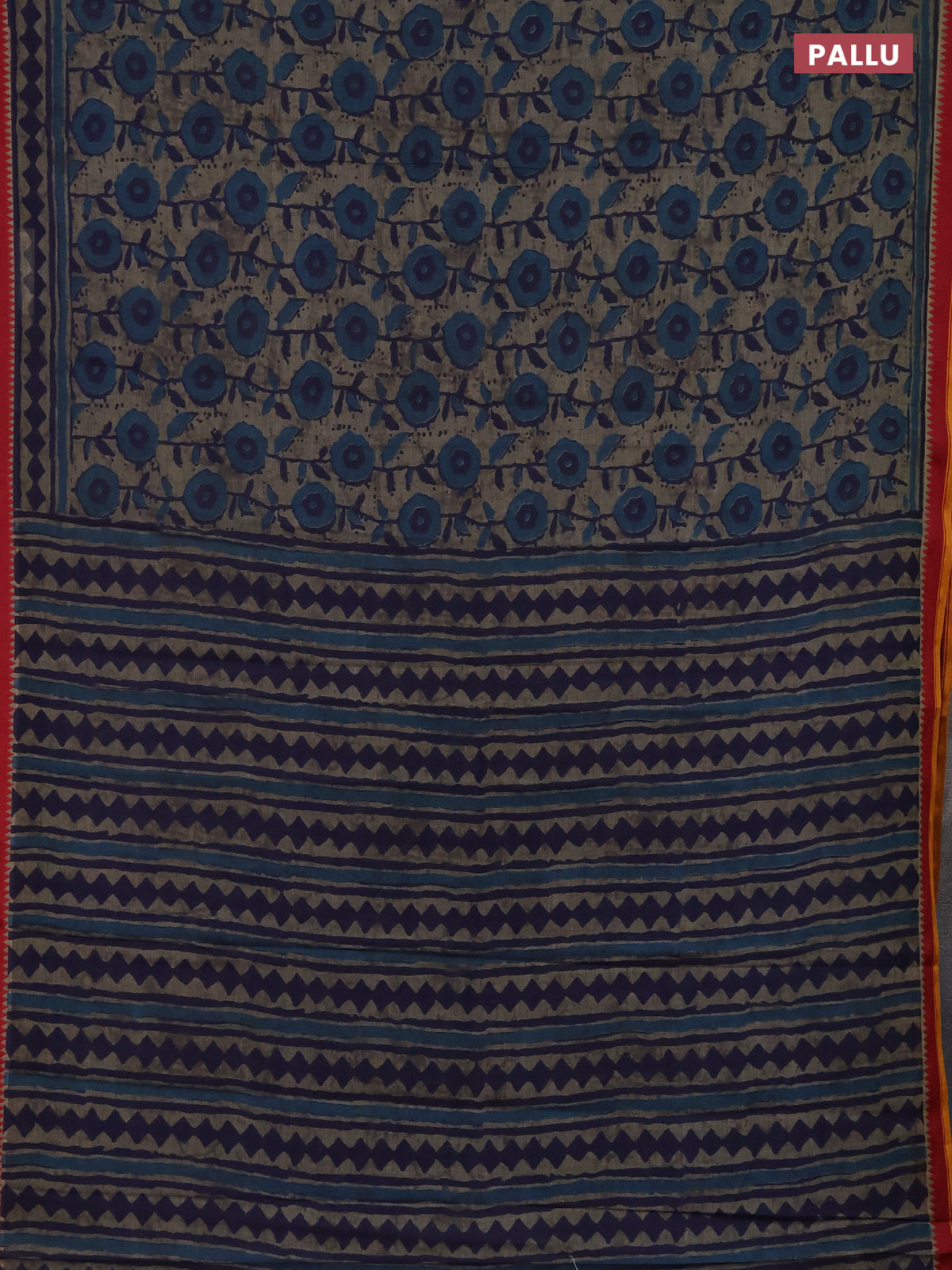 Muslin cotton saree grey blue and maroon with allover prints and woven border