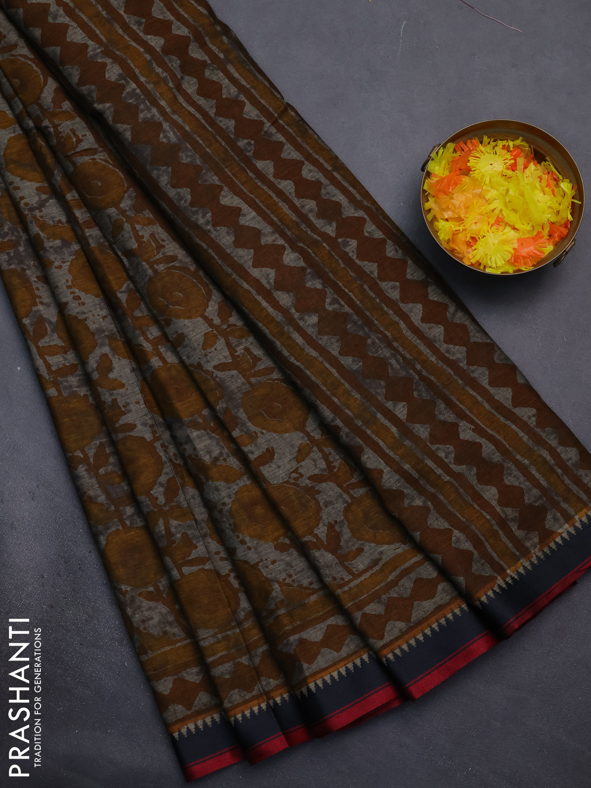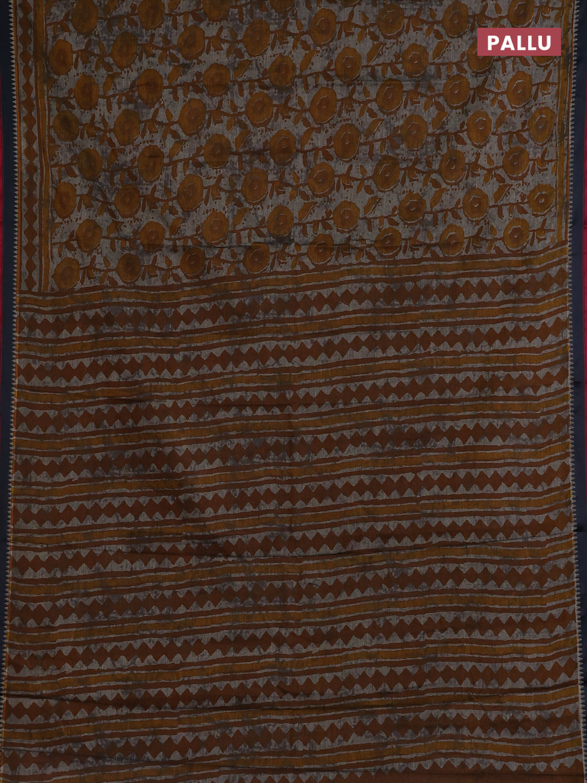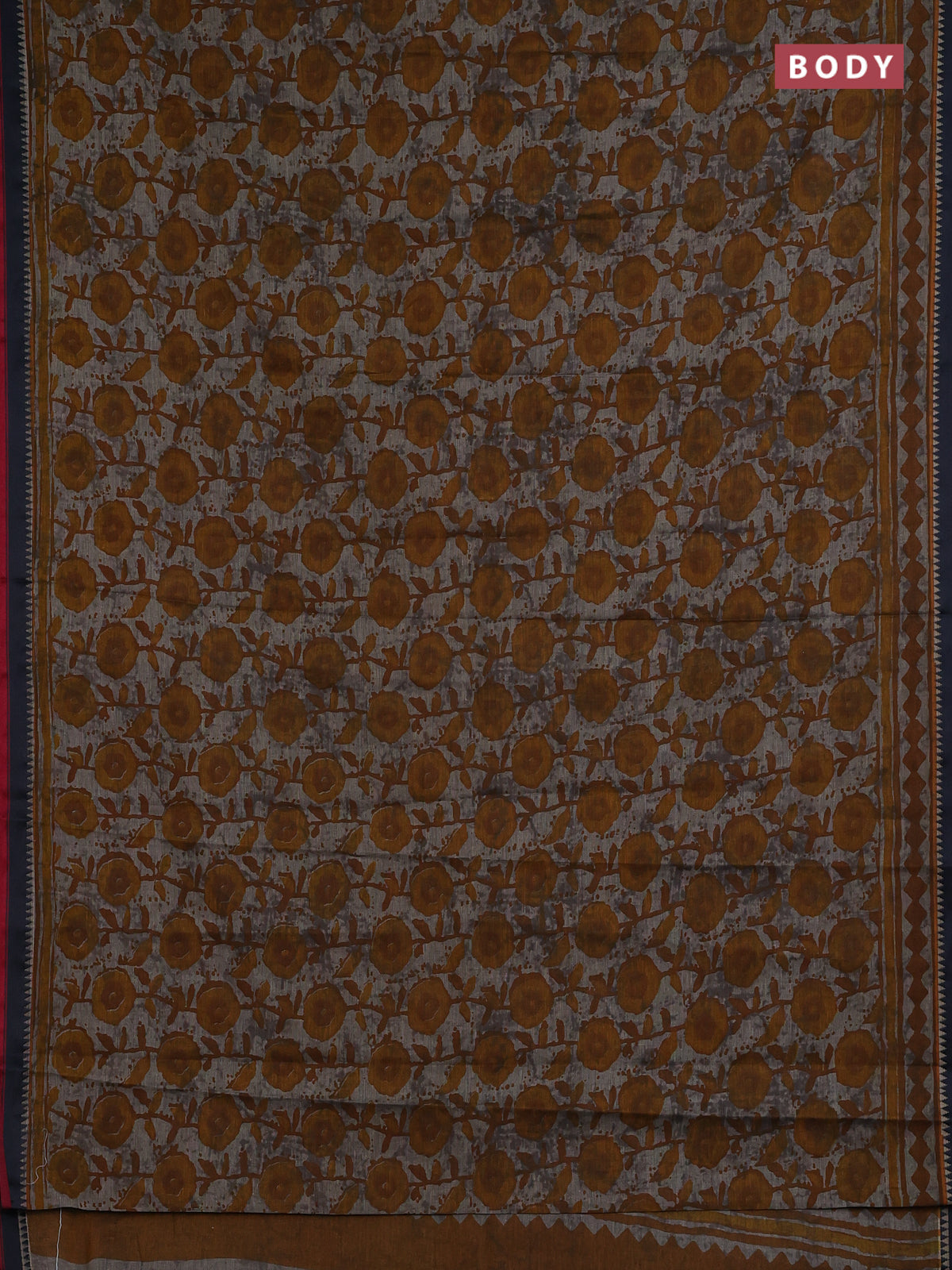 Muslin cotton saree grey mustard and black with allover prints and woven border