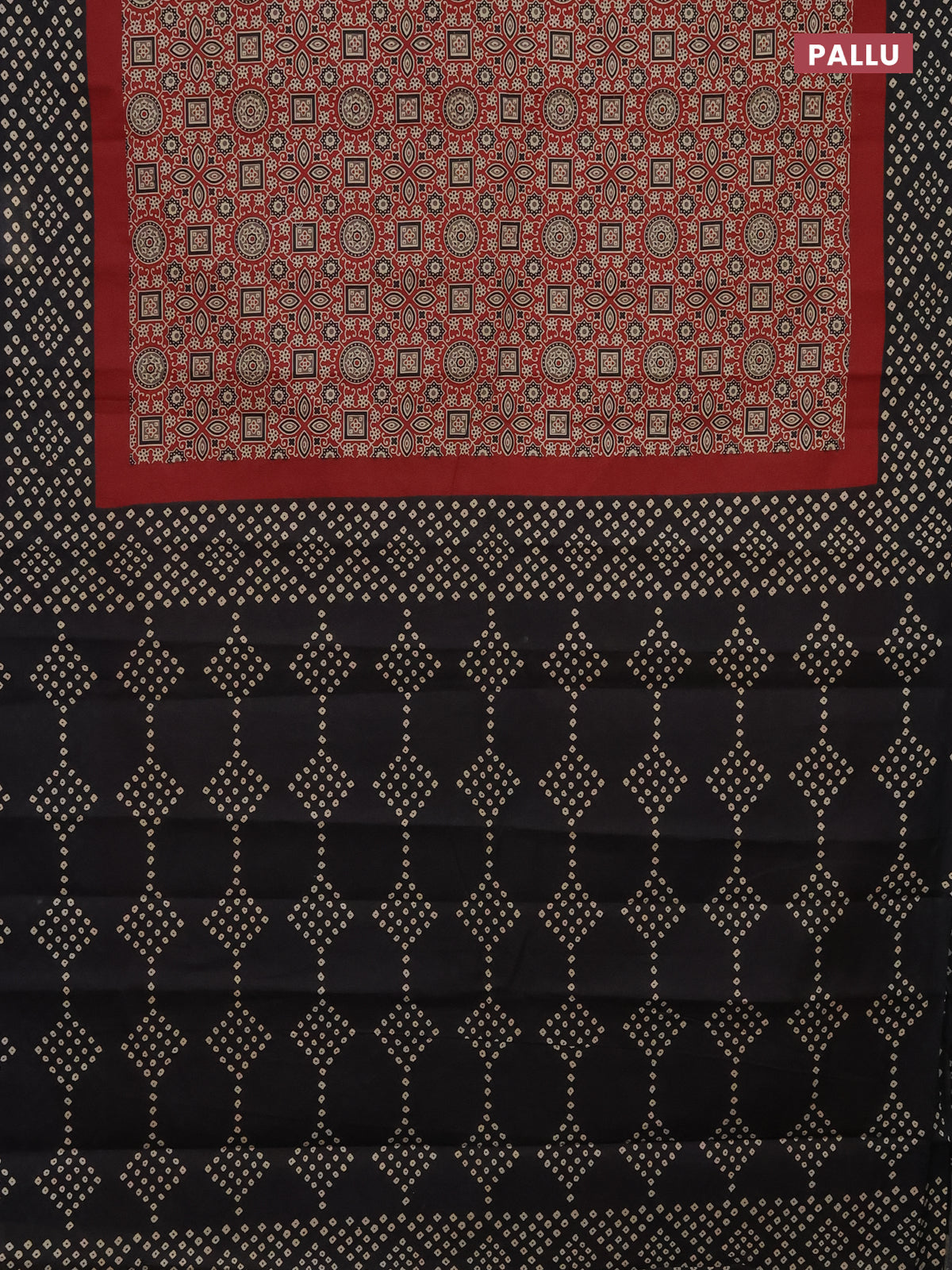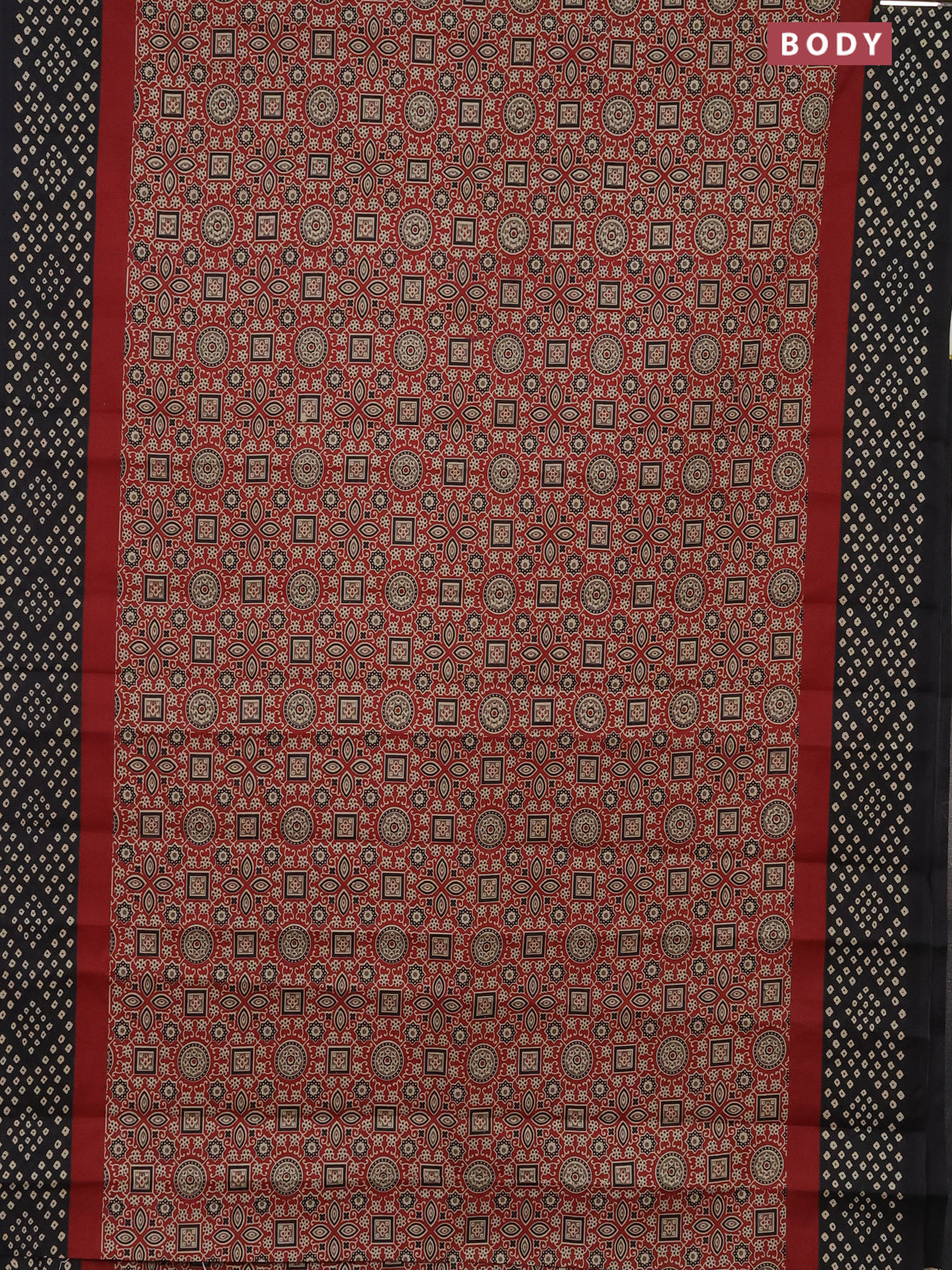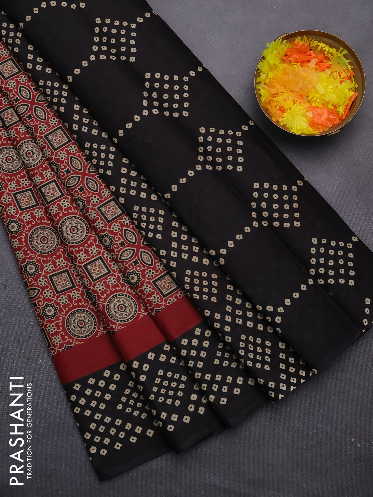Muslin cotton saree maroon and black with ajrakh prints and printed border