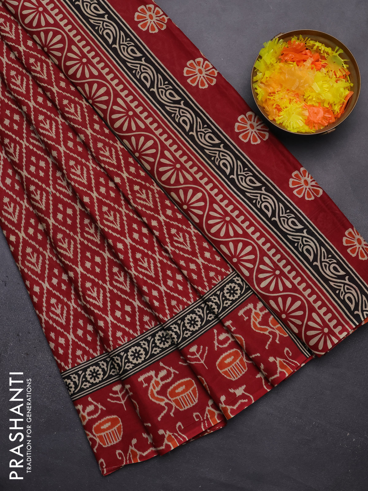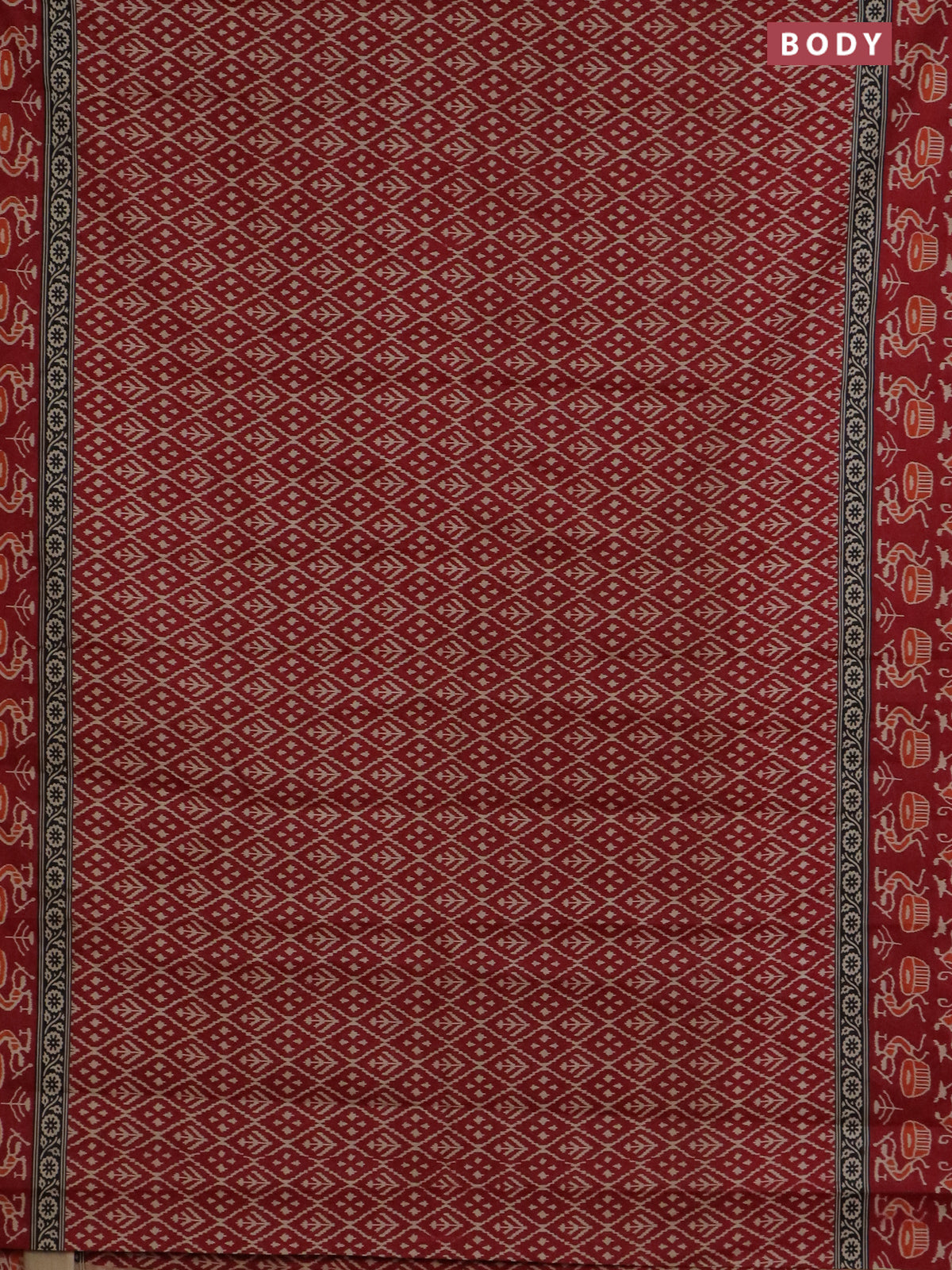Muslin cotton saree maroon with allover ikat prints and printed border