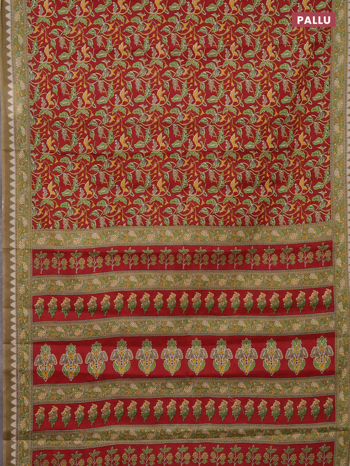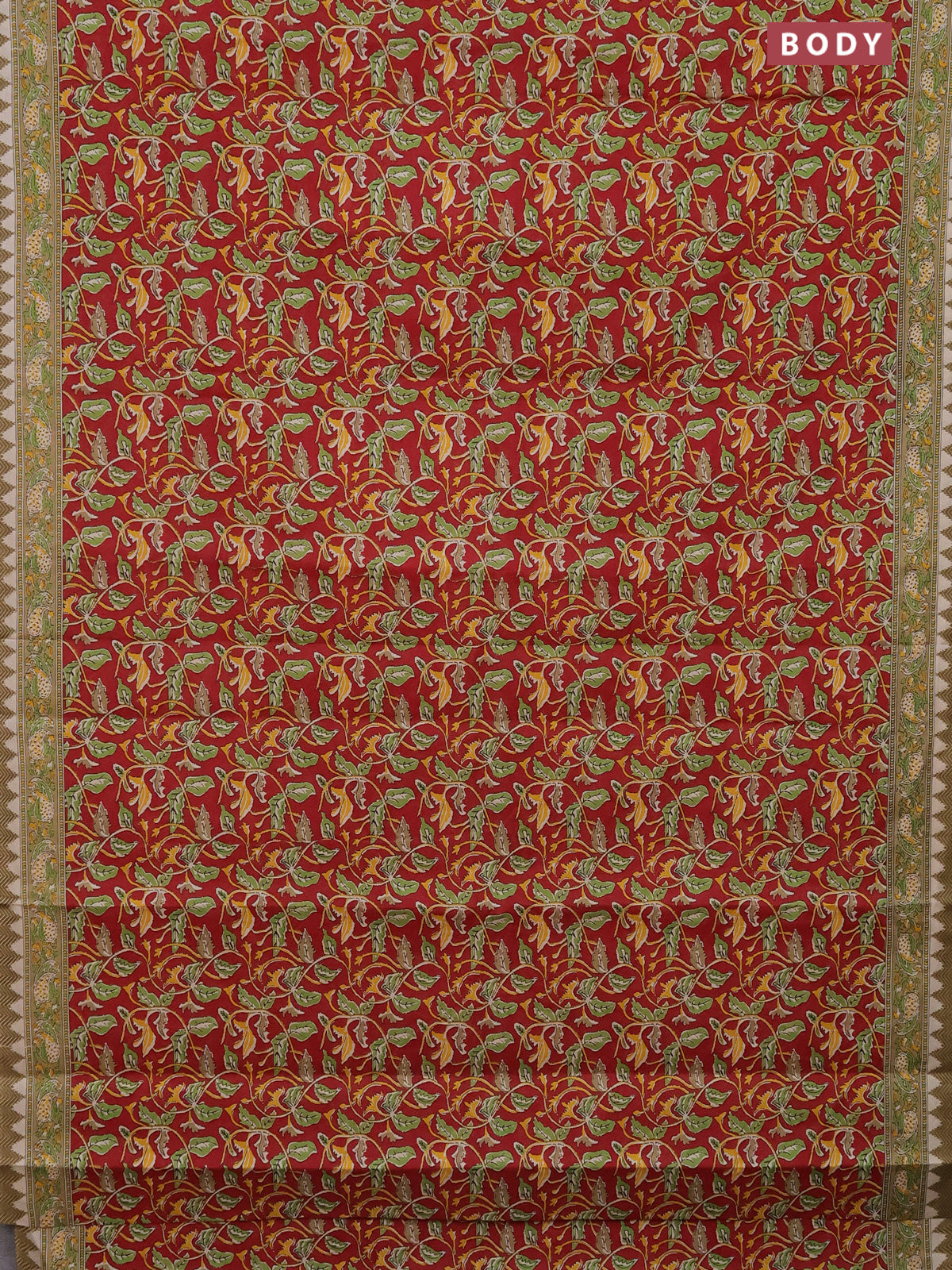 Muslin cotton saree maroon with kalamkari prints and printed border