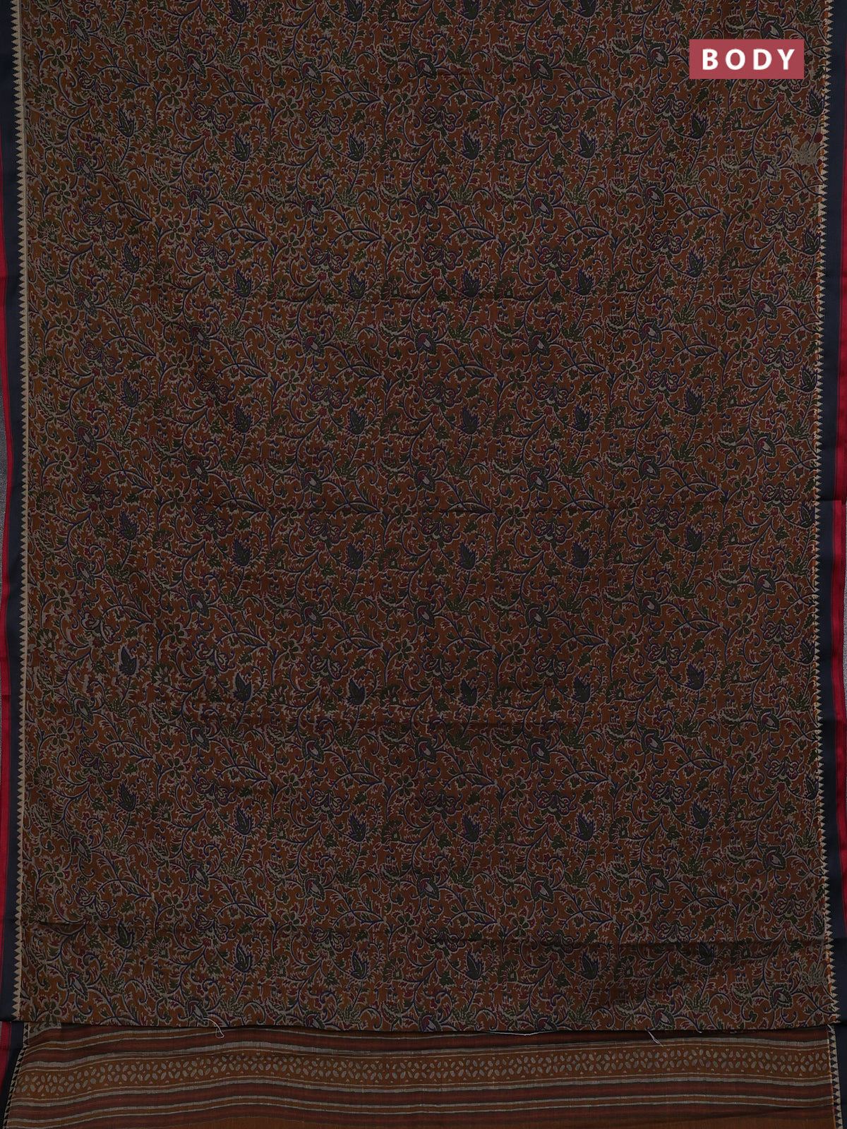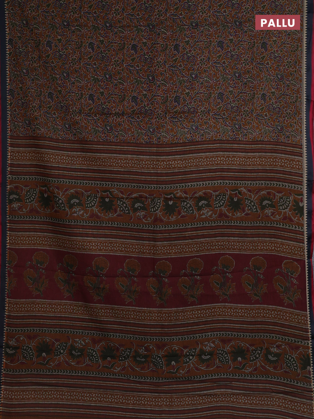 Muslin cotton saree mustard shade and black with allover prints and woven border