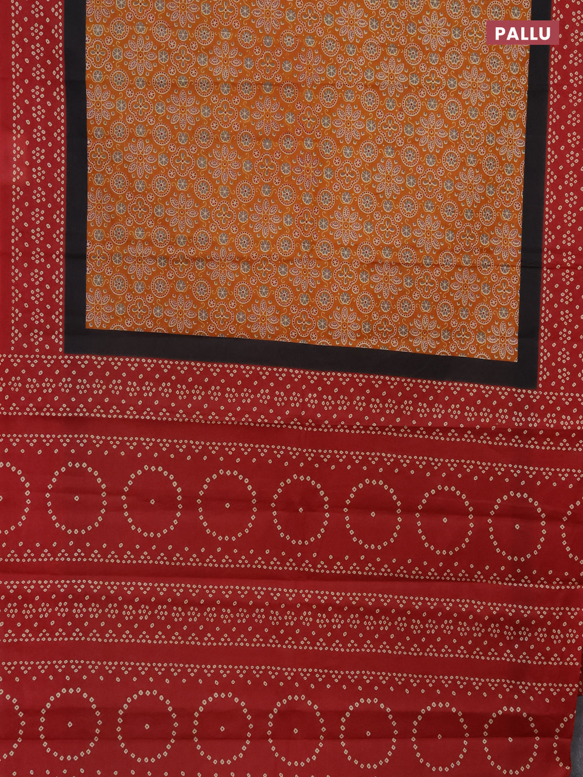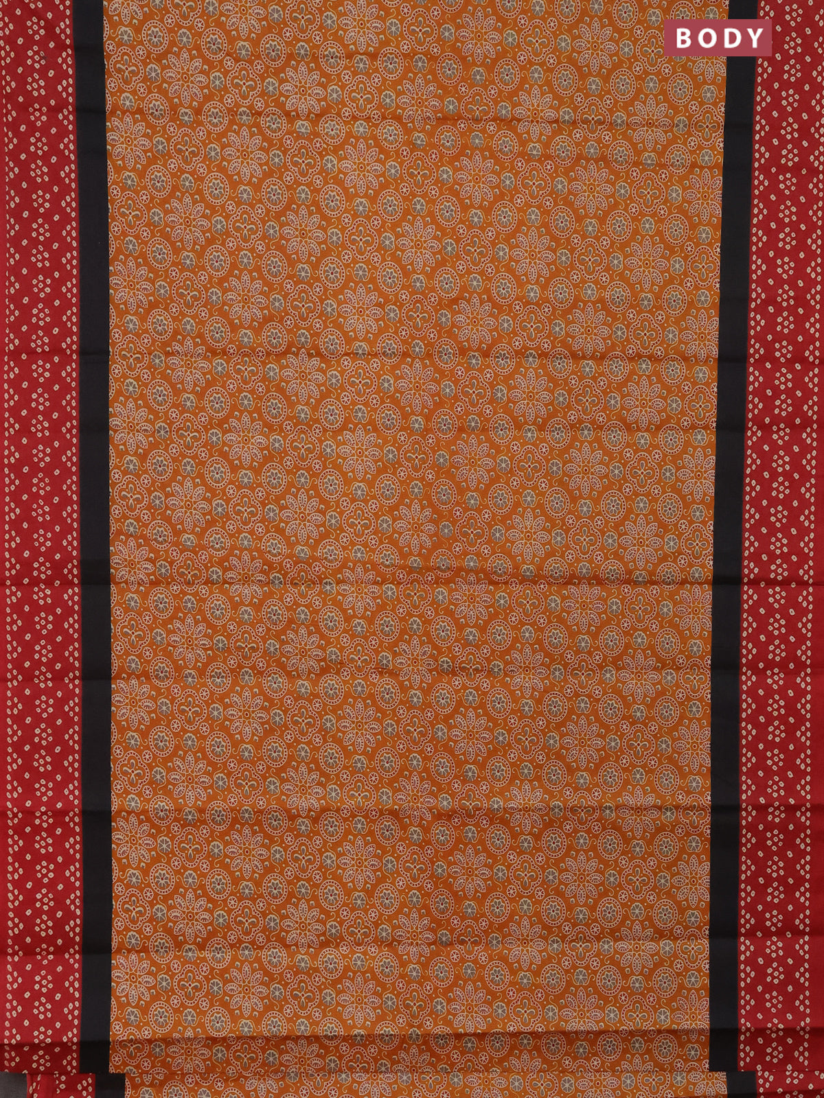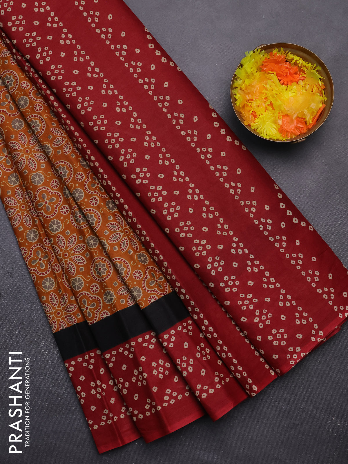 Muslin cotton saree mustard yellow and maroon with ajrakh prints and printed border