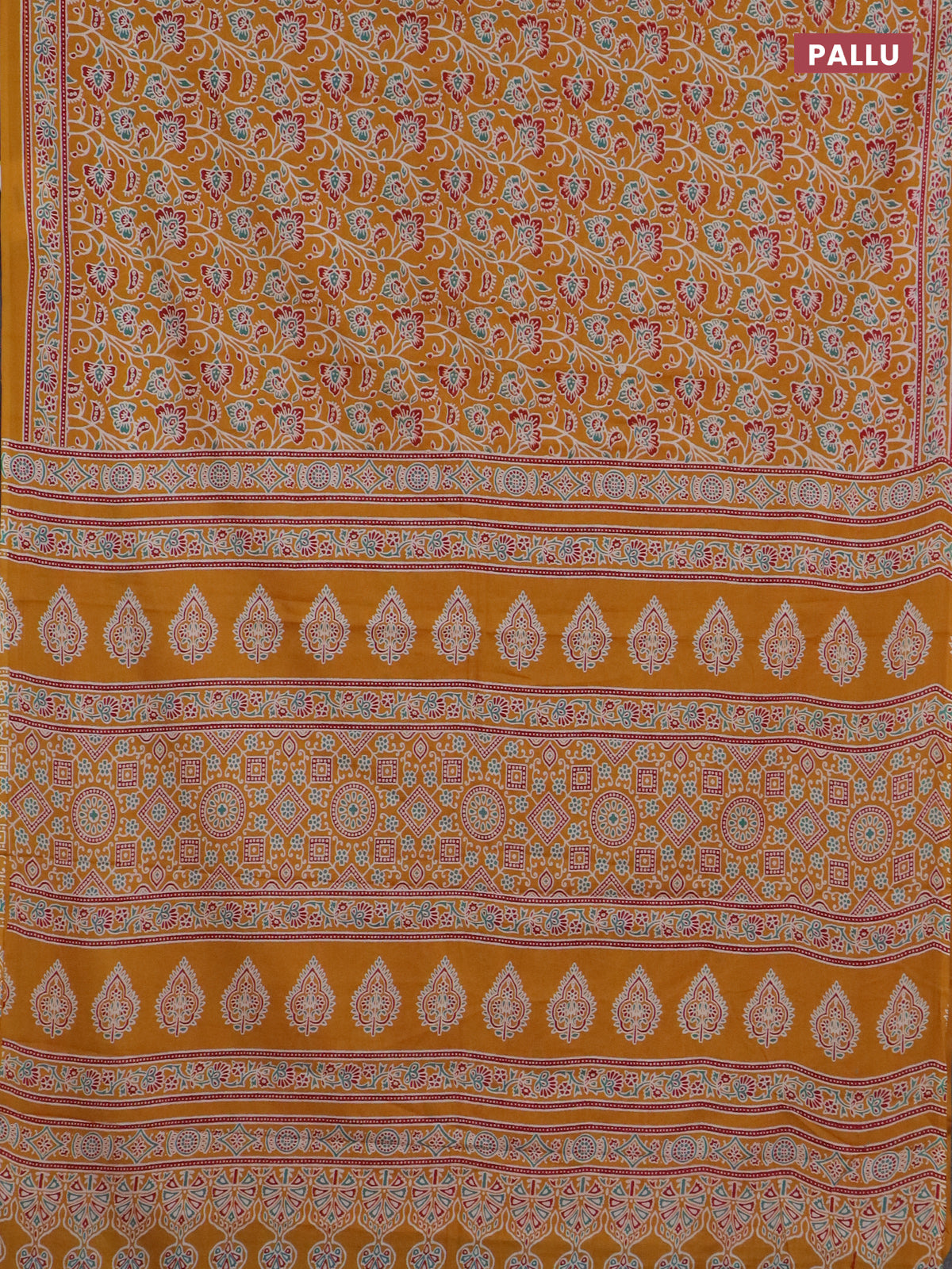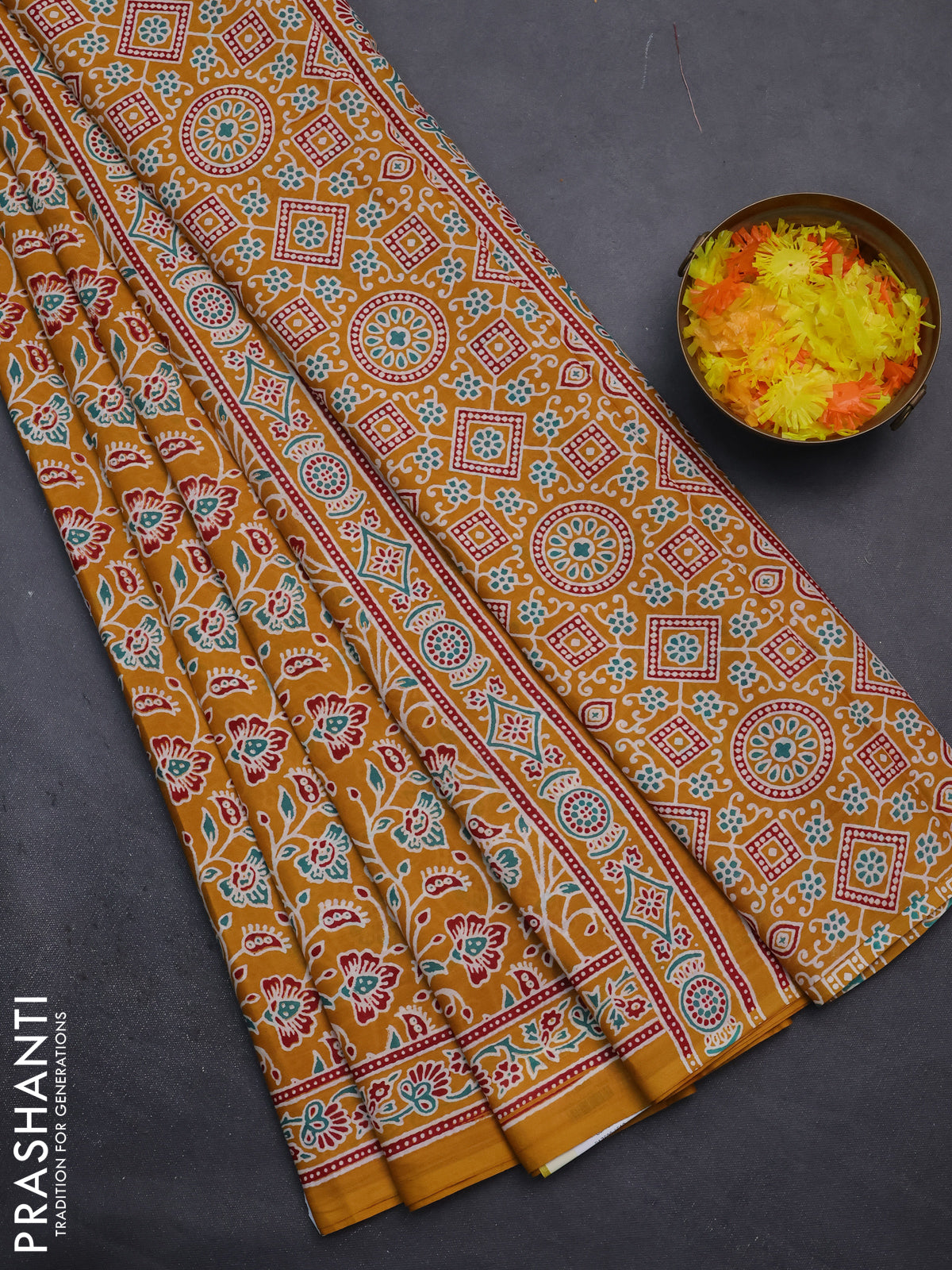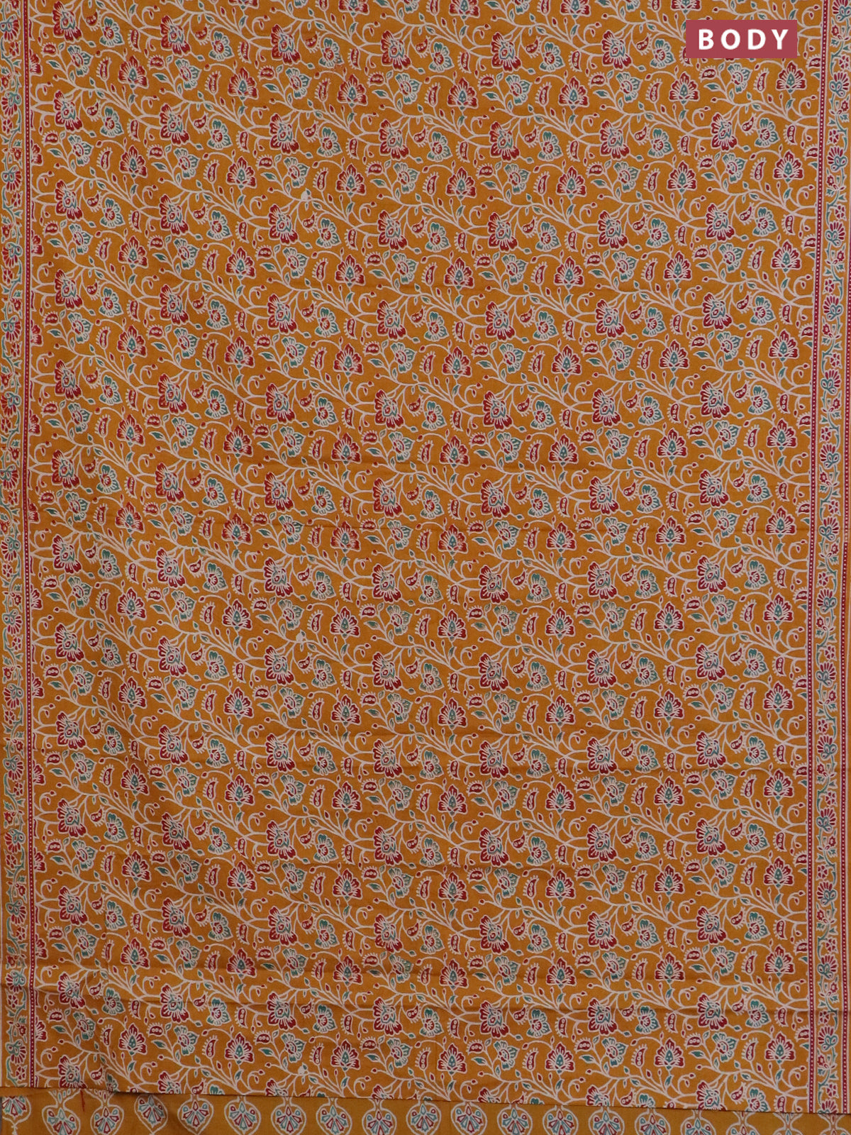 Muslin cotton saree mustard yellow with allover kalamkari prints and printed border