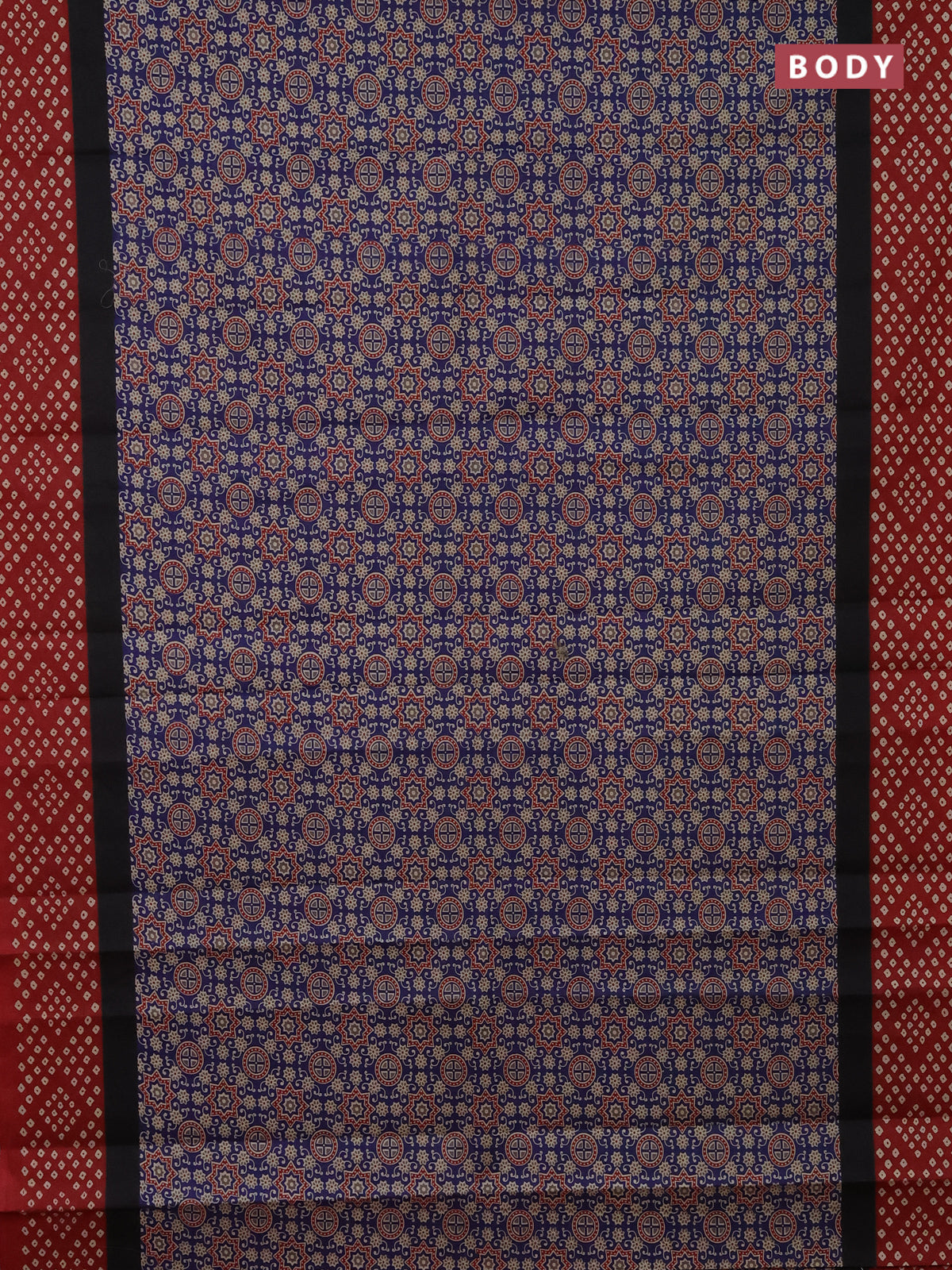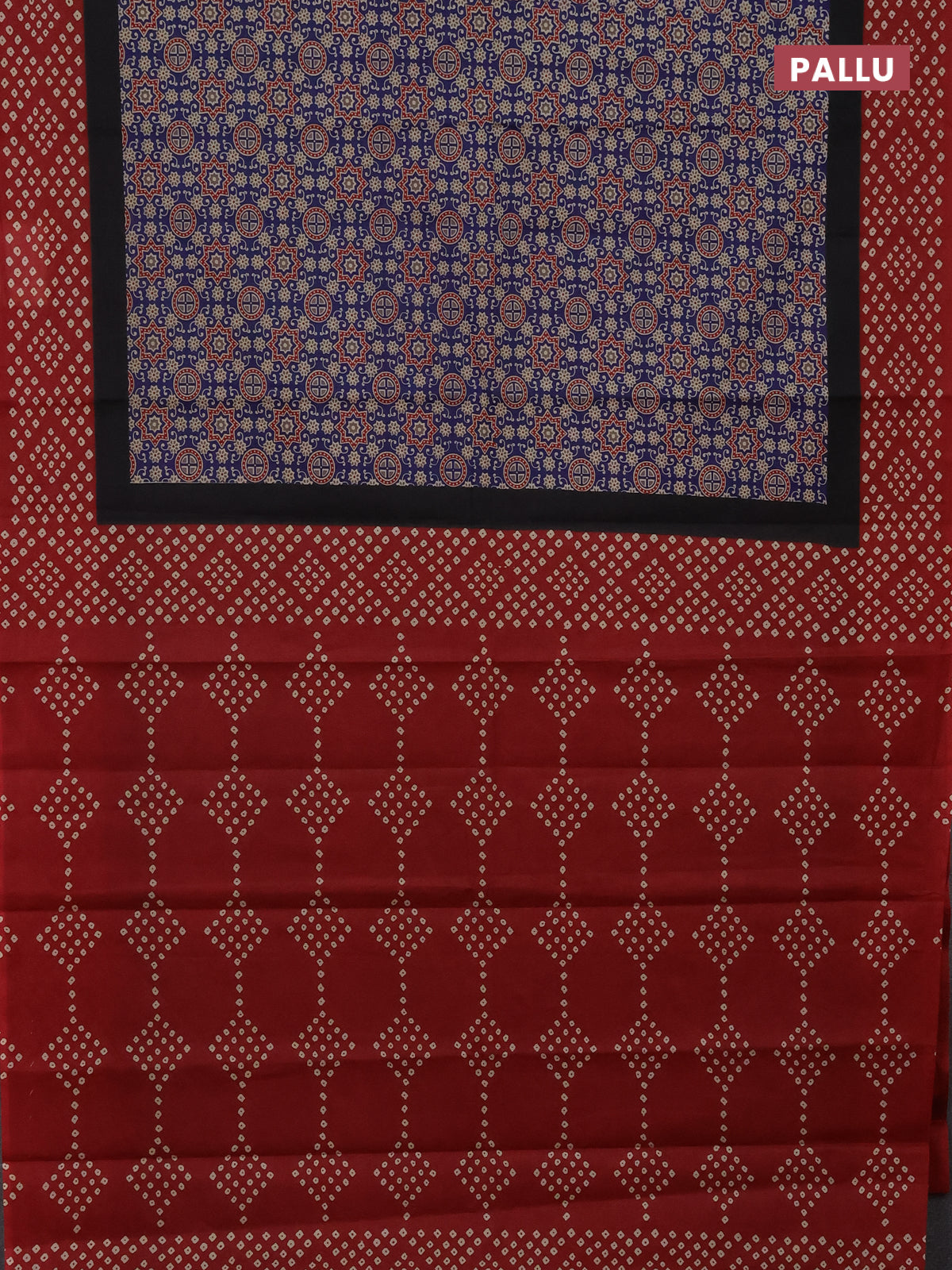 Muslin cotton saree navy blue and maroon with ajrakh prints and printed border