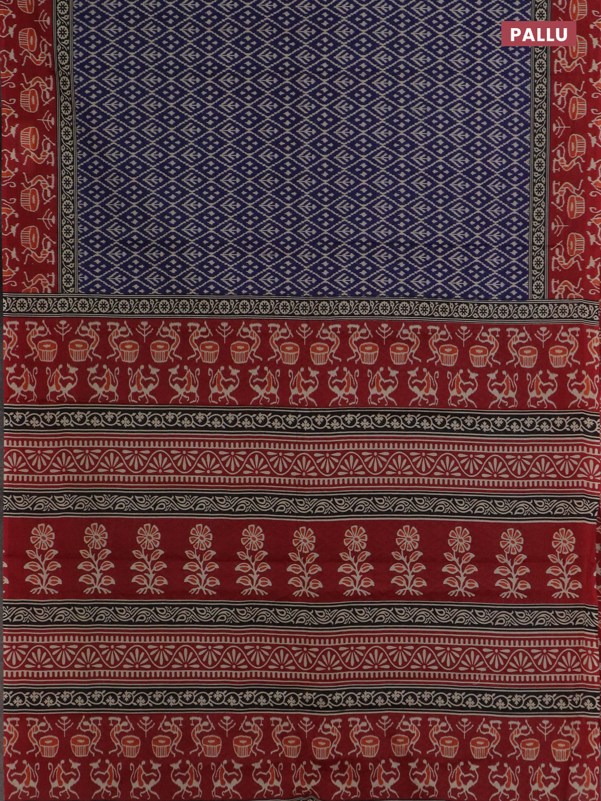 Muslin cotton saree navy blue and maroon with allover ikat prints and printed border