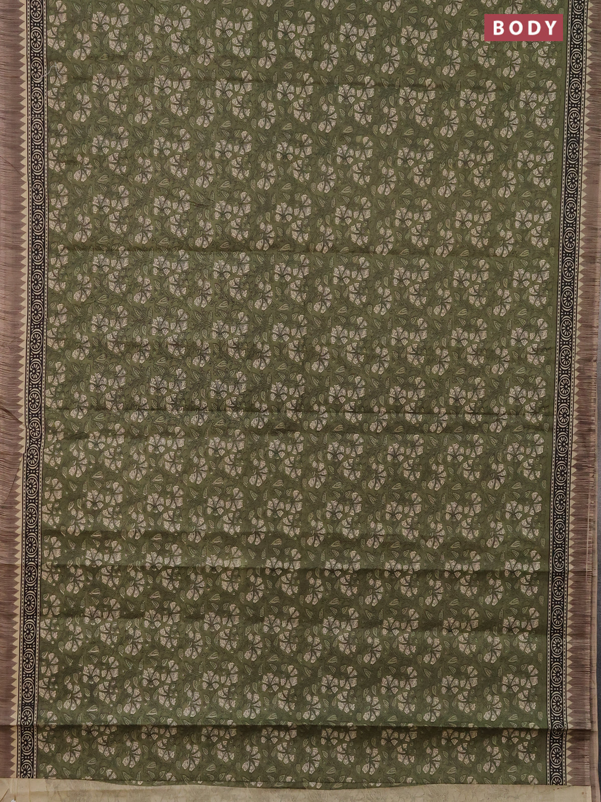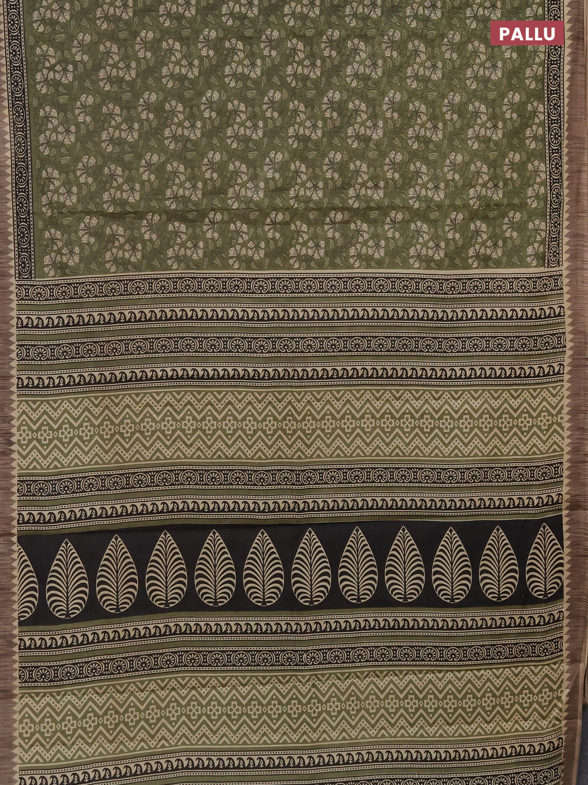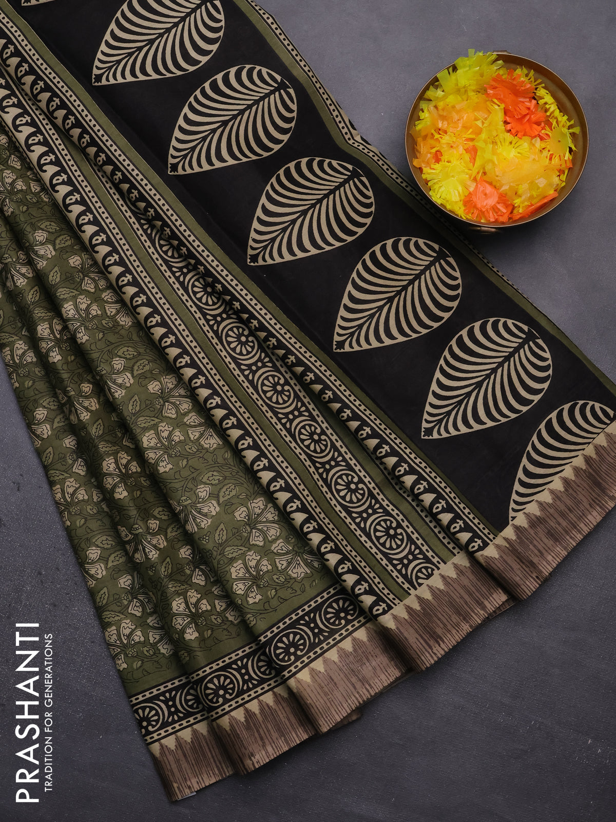 Muslin cotton saree pastel green with allover kalamkari prints and printed border