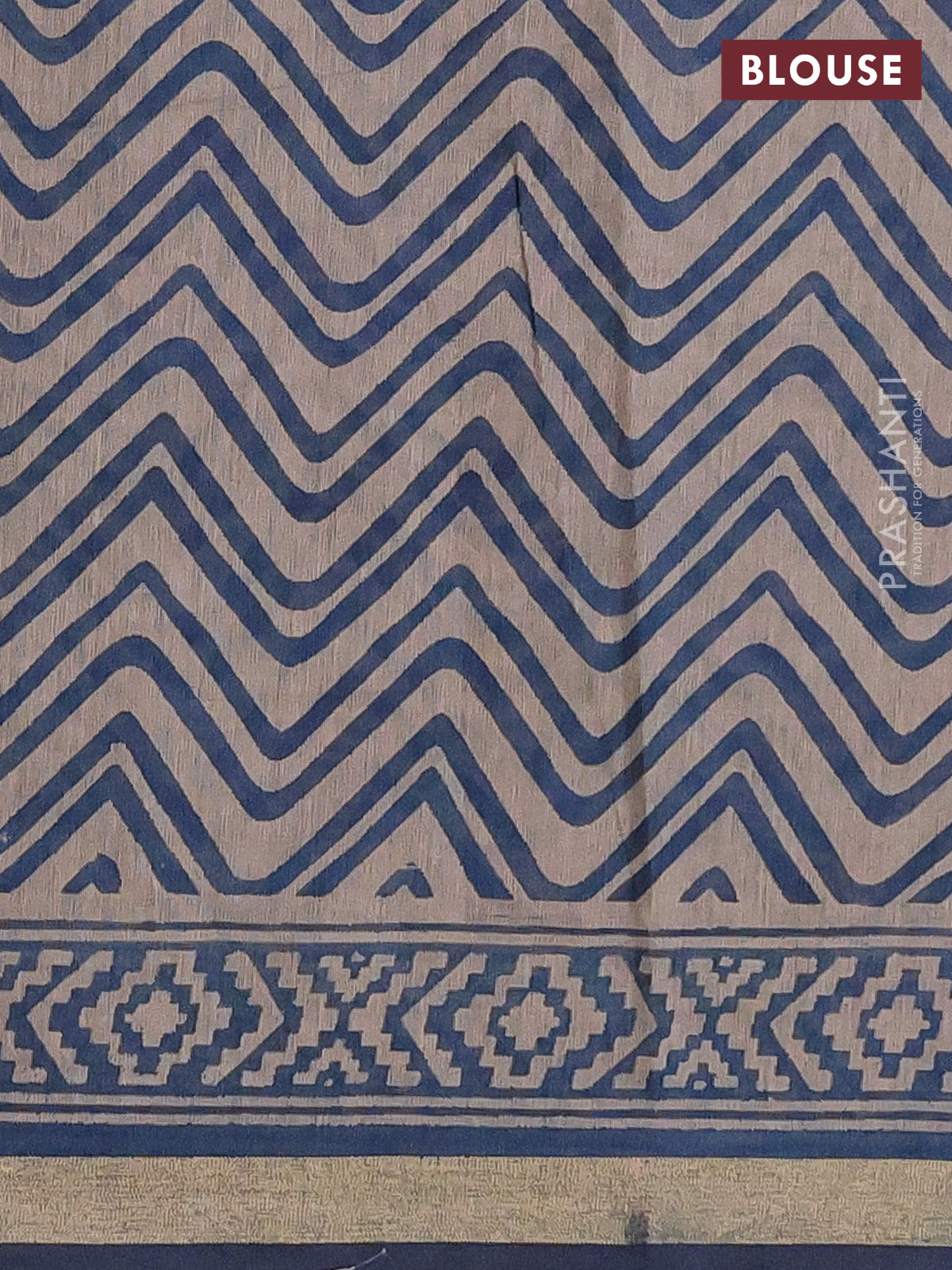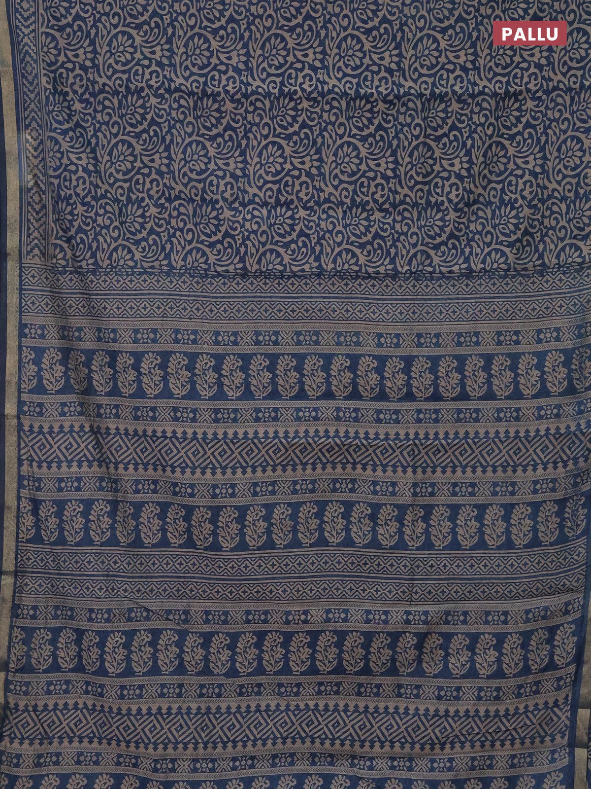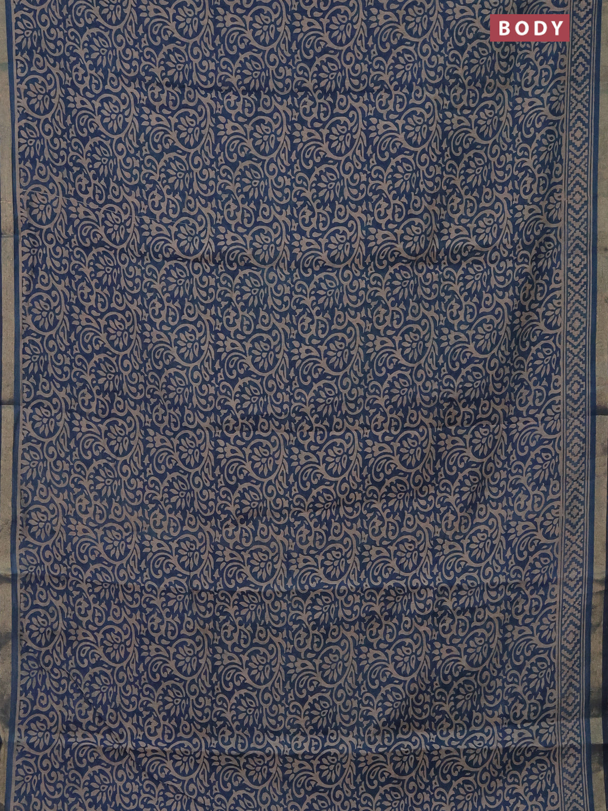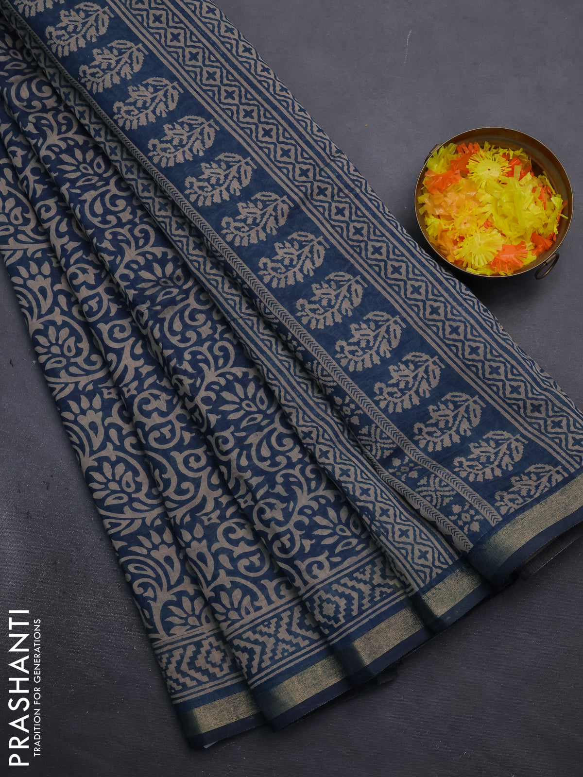 Muslin cotton saree peacock blue with allover kalamkari prints and zari woven border