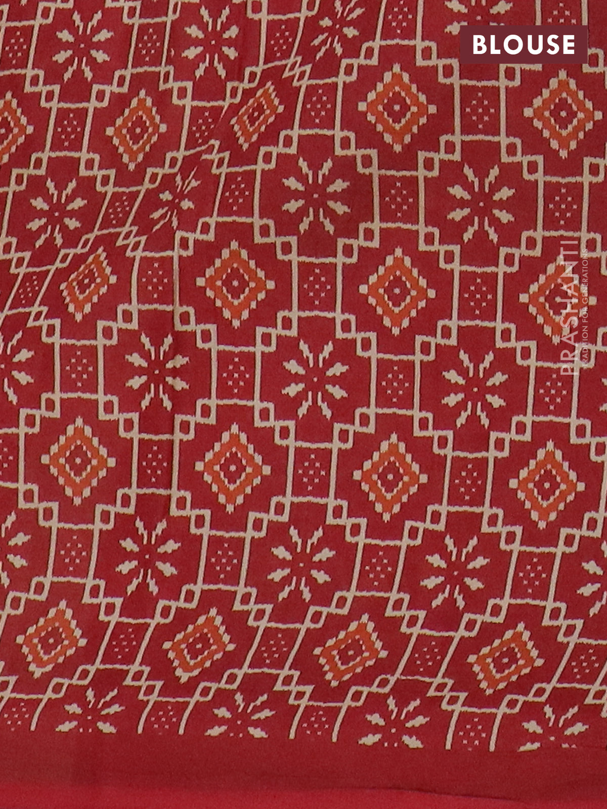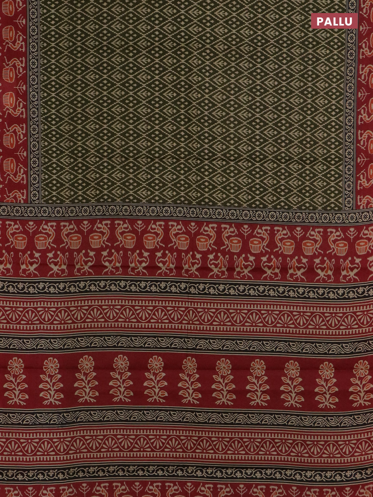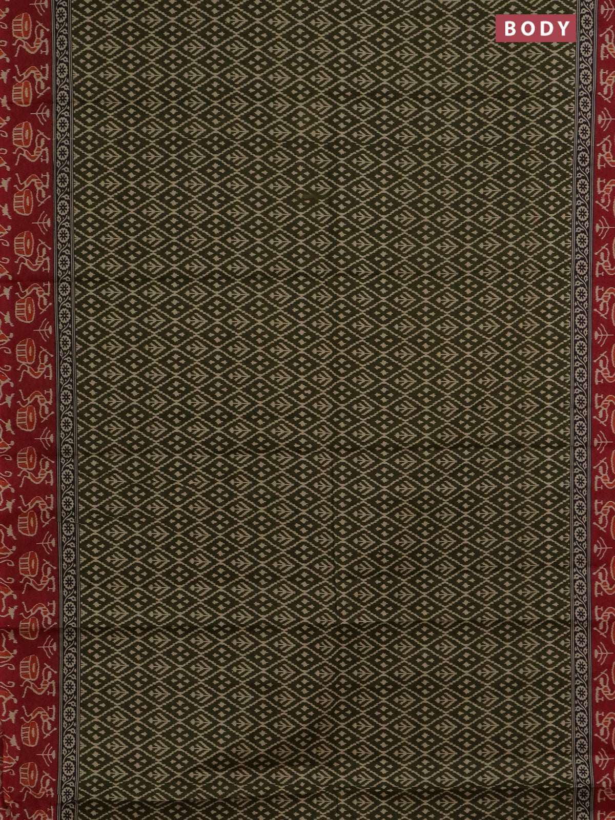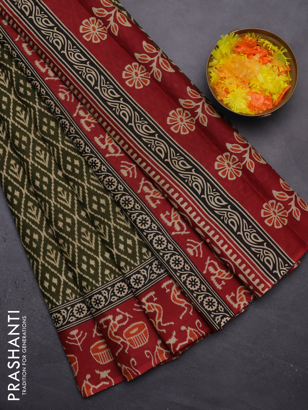 Muslin cotton saree sap green and maroon with allover ikat prints and printed border