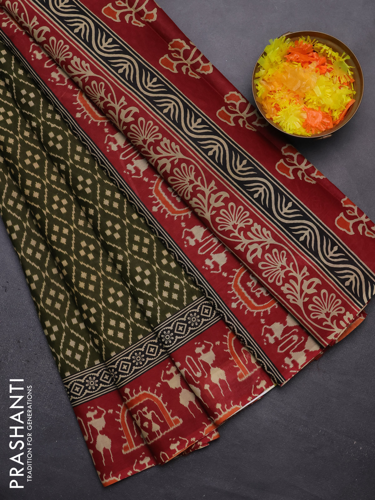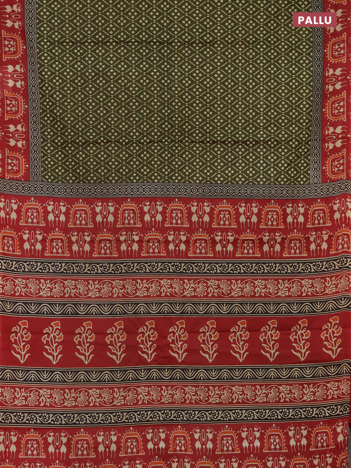 Muslin cotton saree sap green and maroon with allover prints and printed border