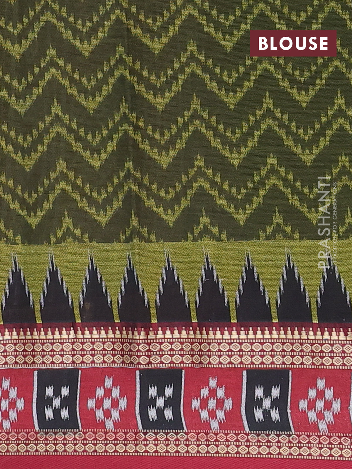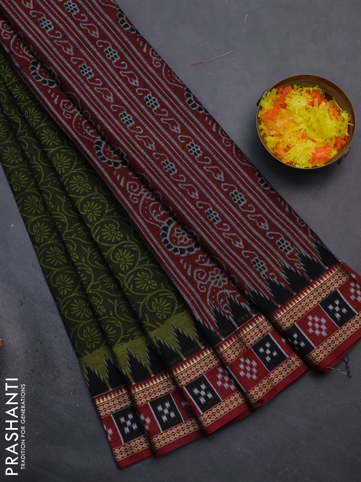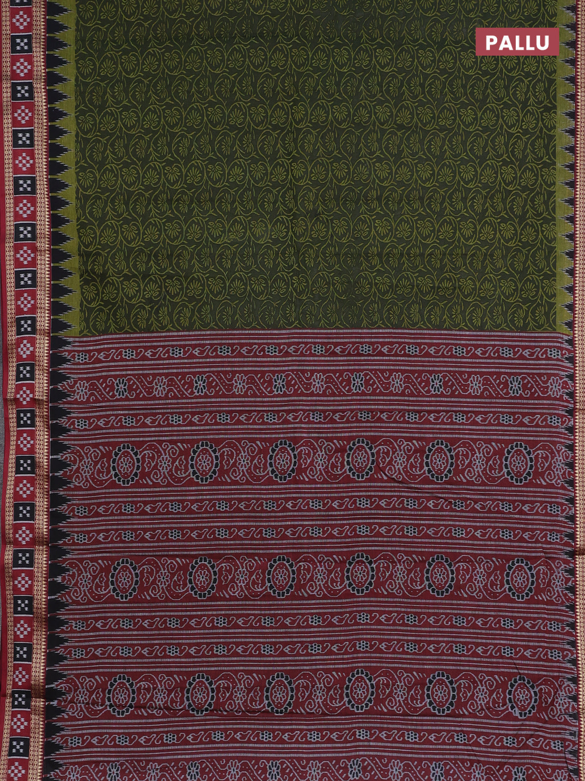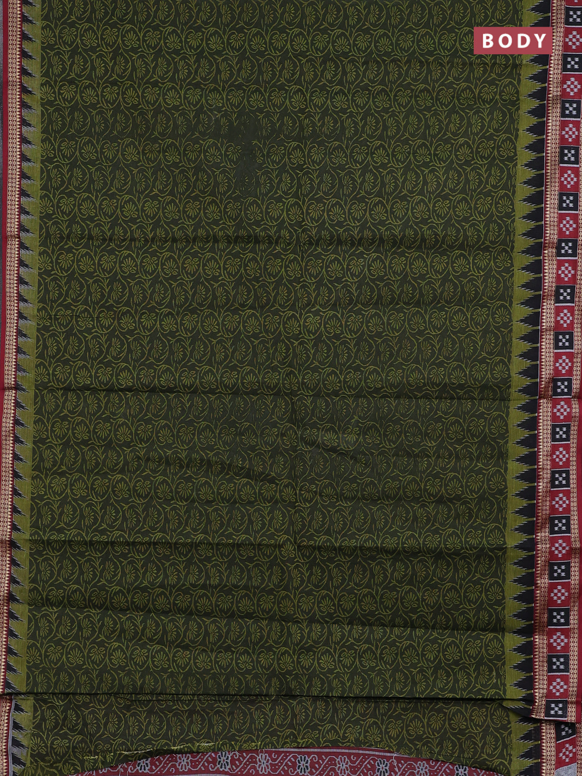 Muslin cotton saree sap green and maroon with allover prints and woven border