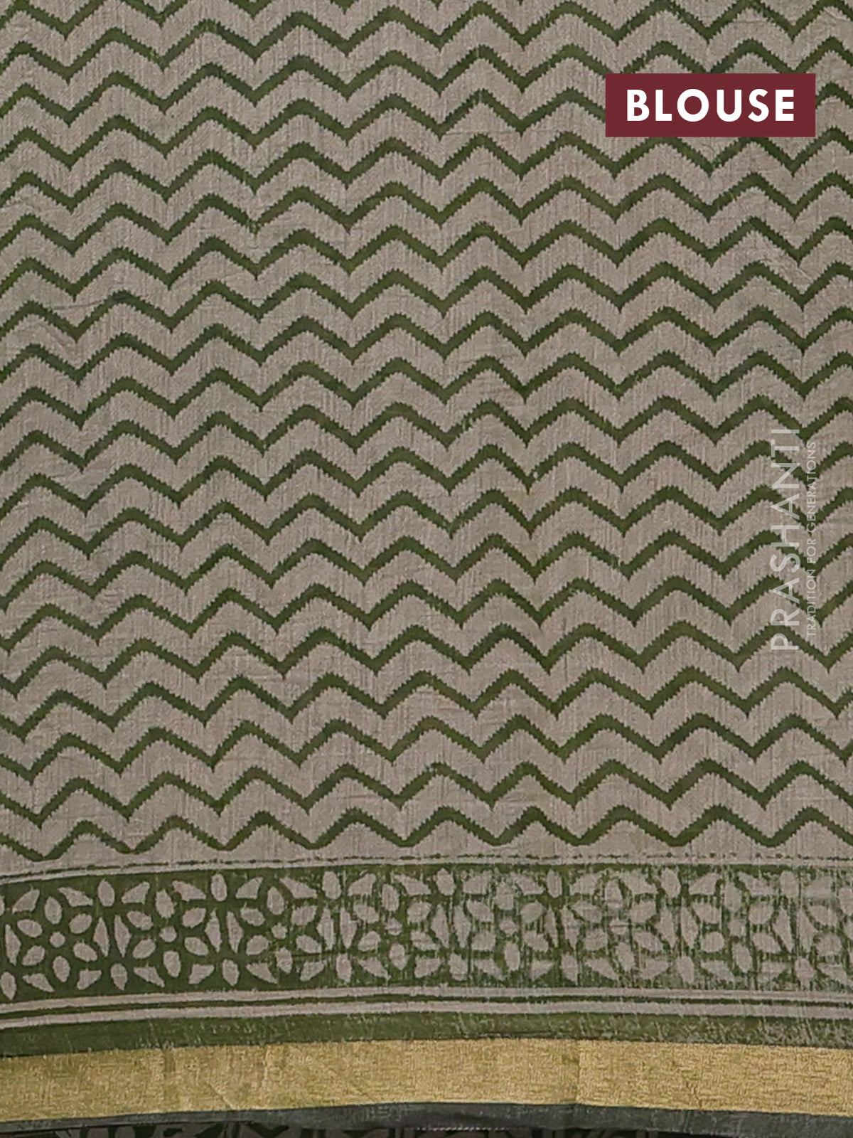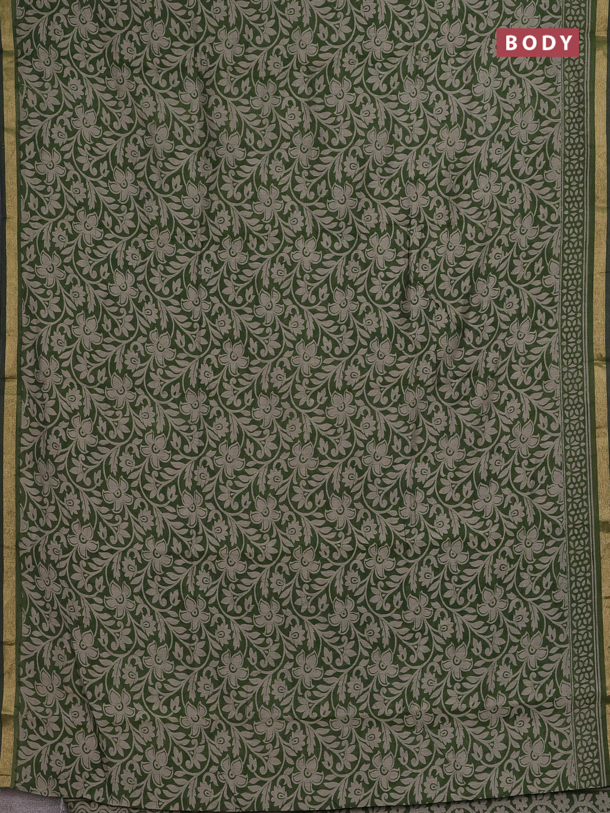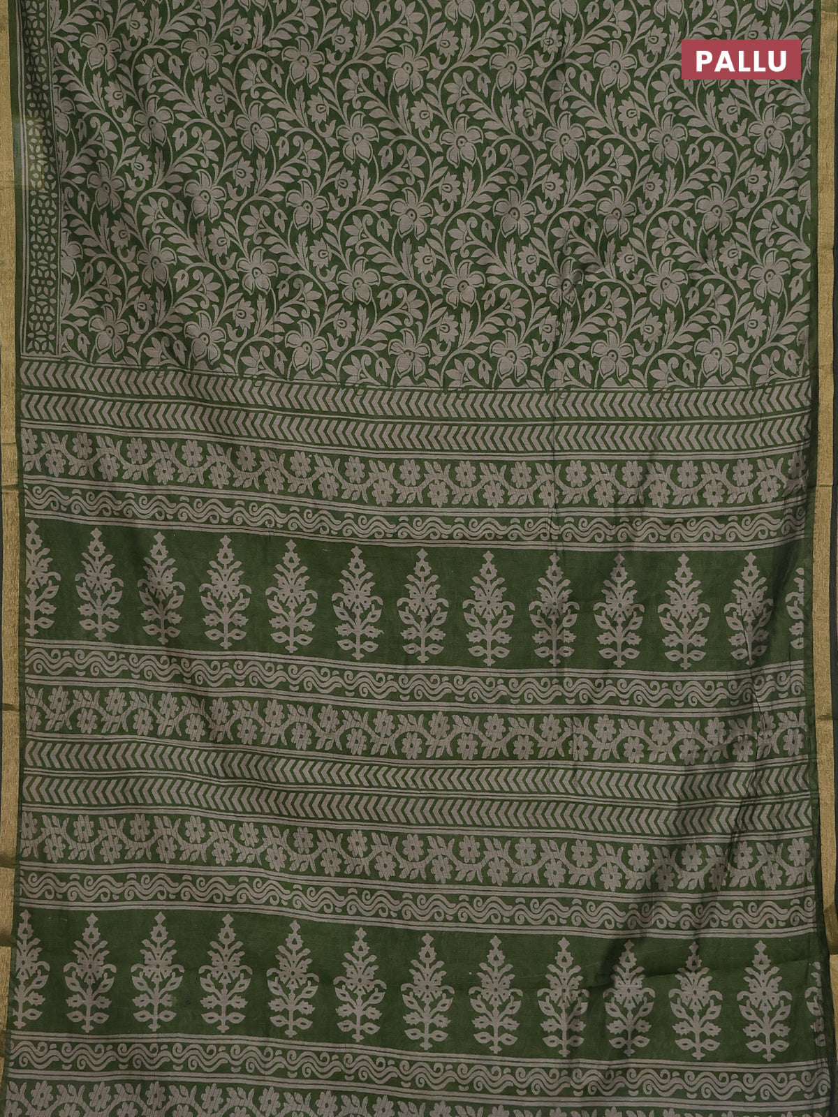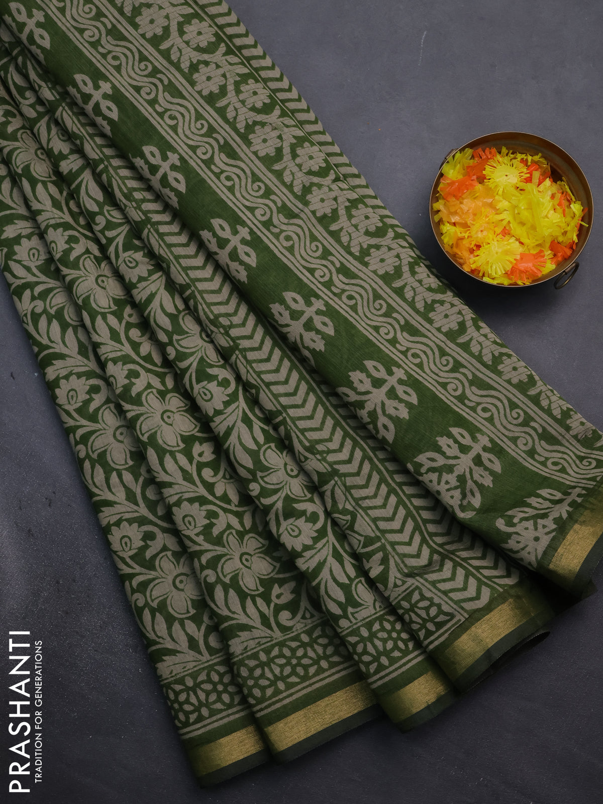 Muslin cotton saree sap green with allover kalamkari prints and zari woven border