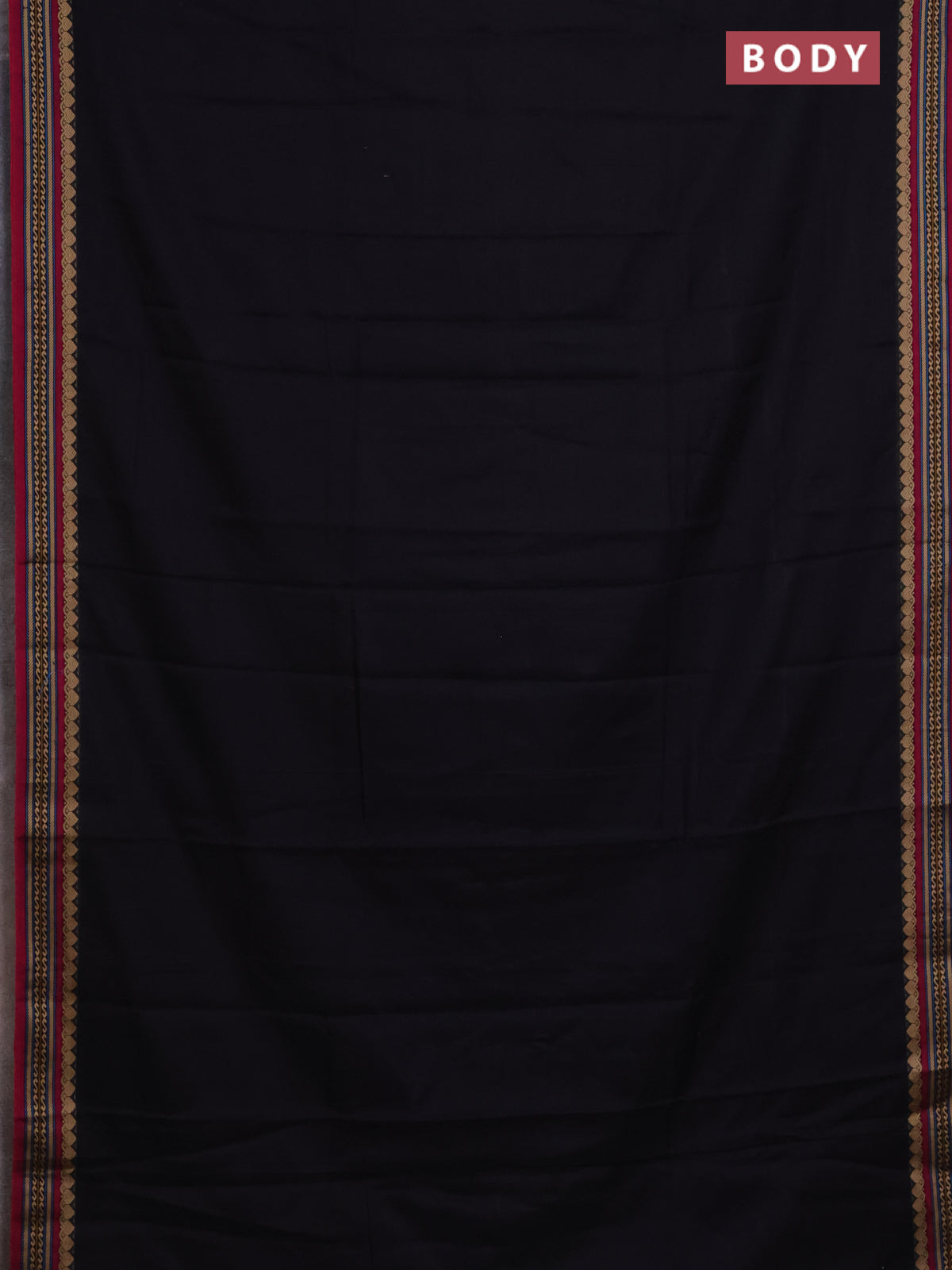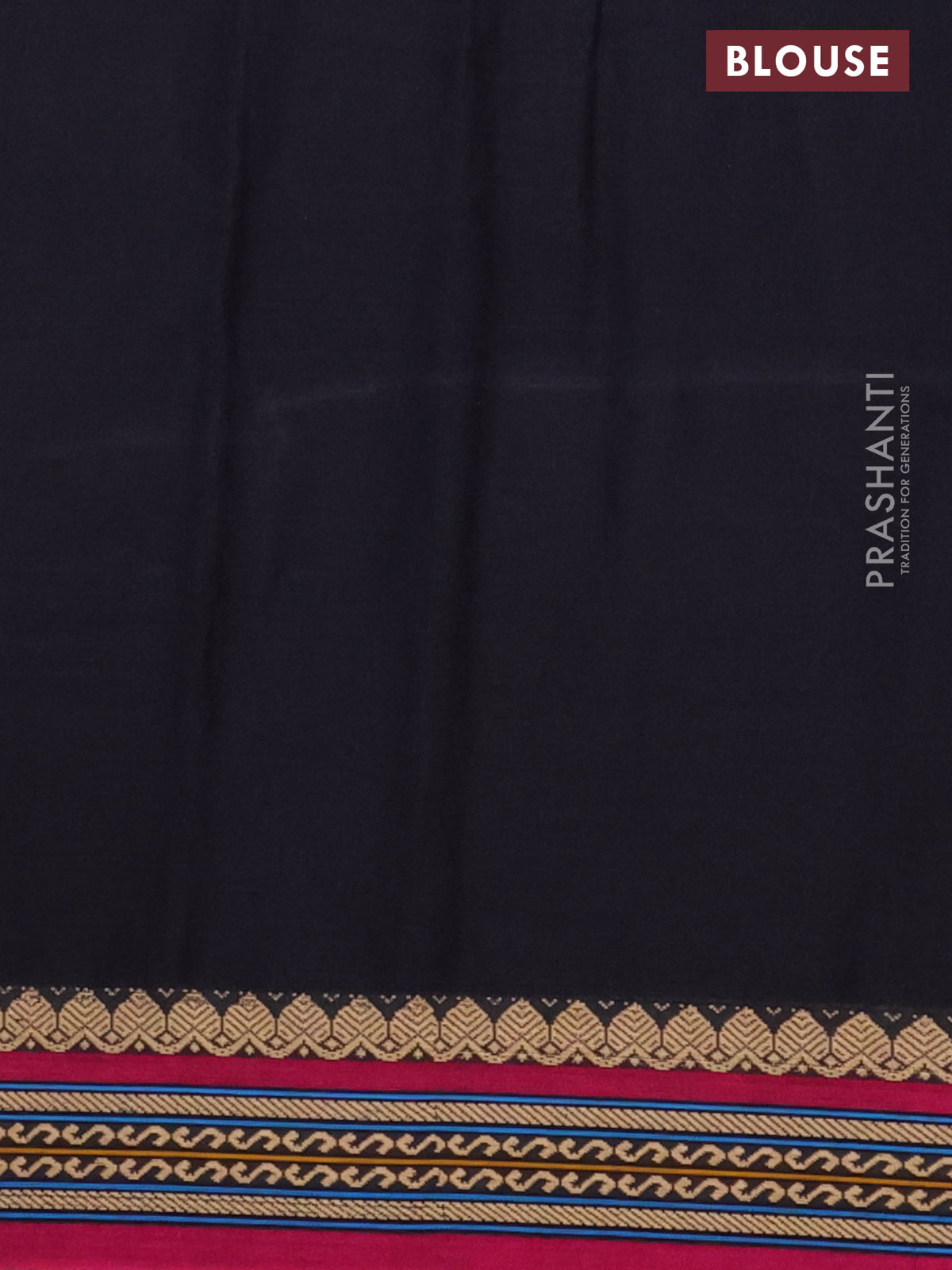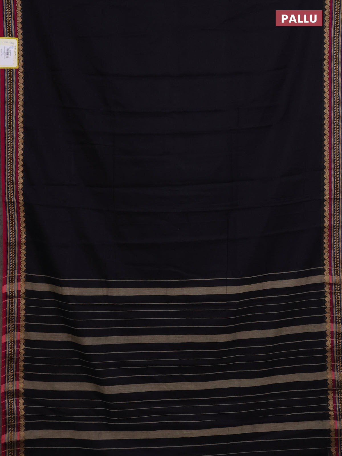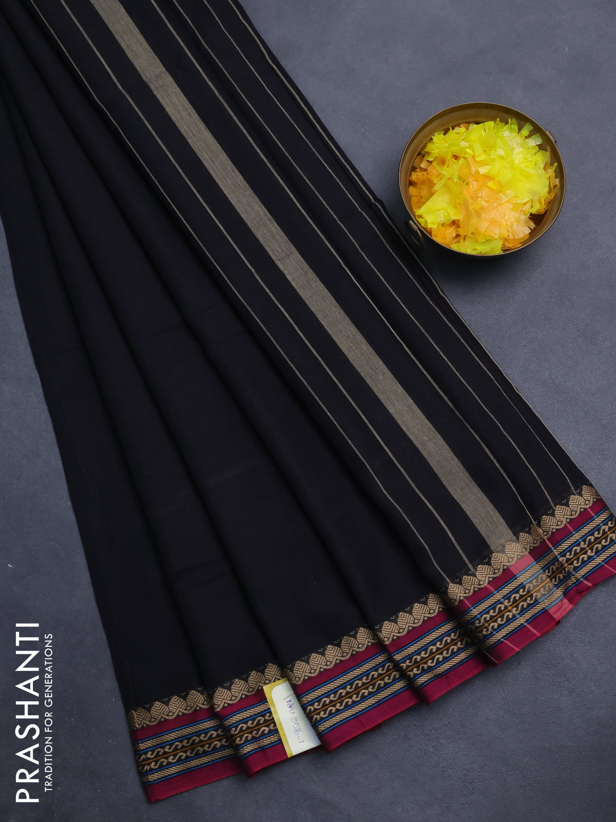 Narayanpet cotton saree black and magenta pink with plain body and thread woven border
