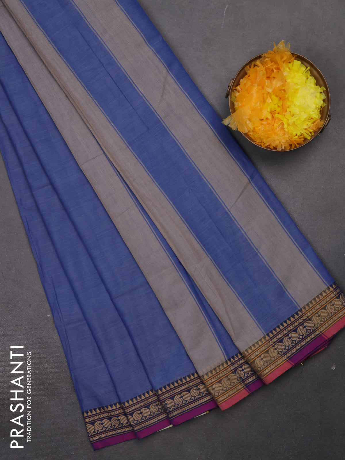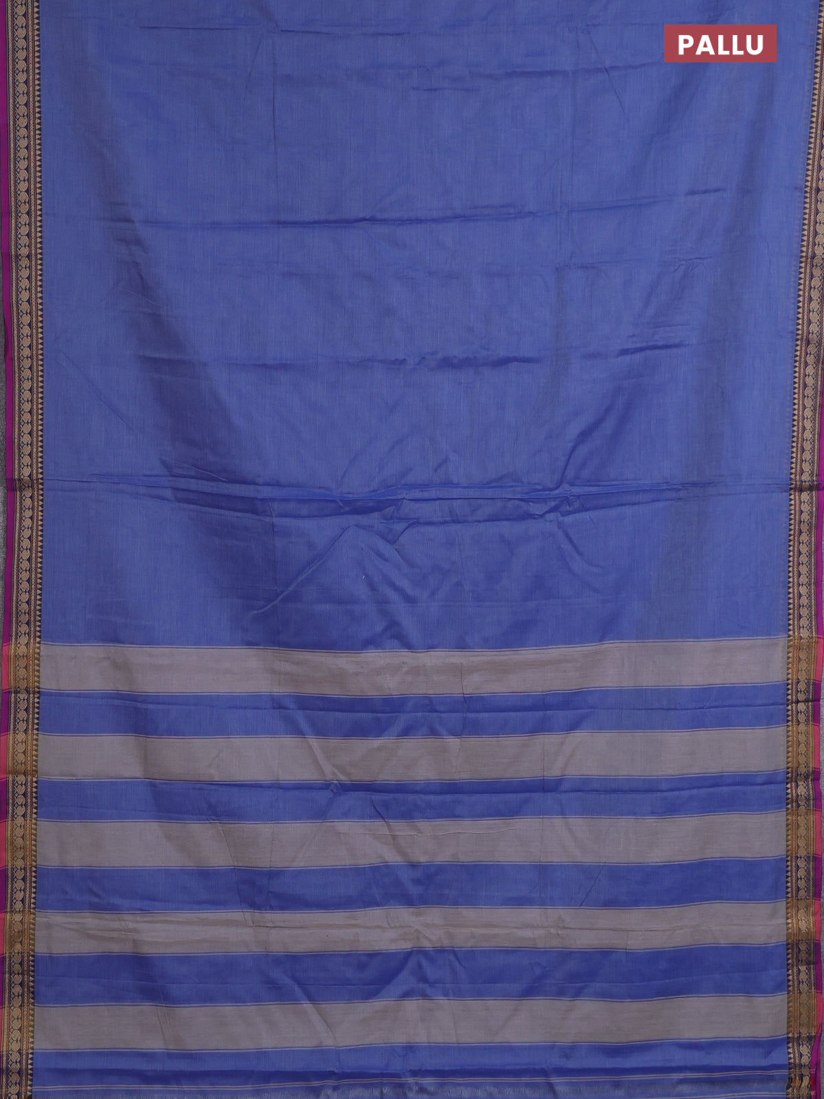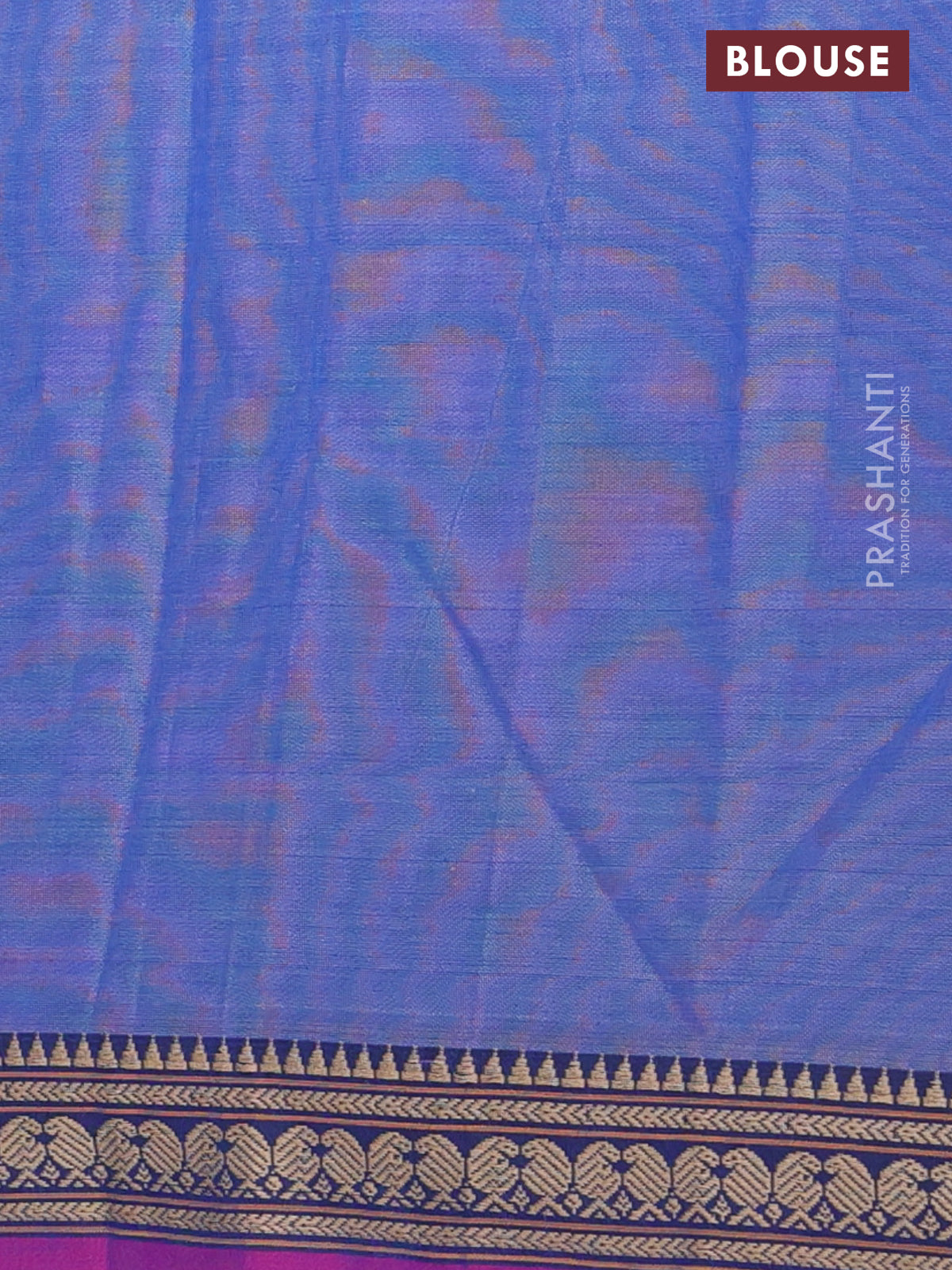 Narayanpet cotton saree blue and magenta pink with plain body and thread woven border