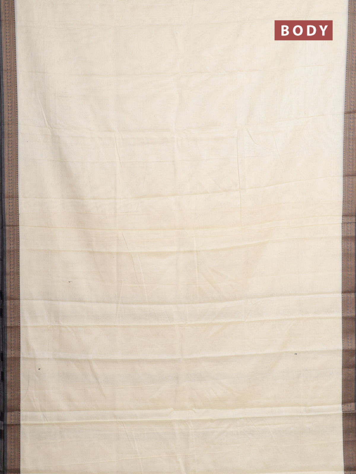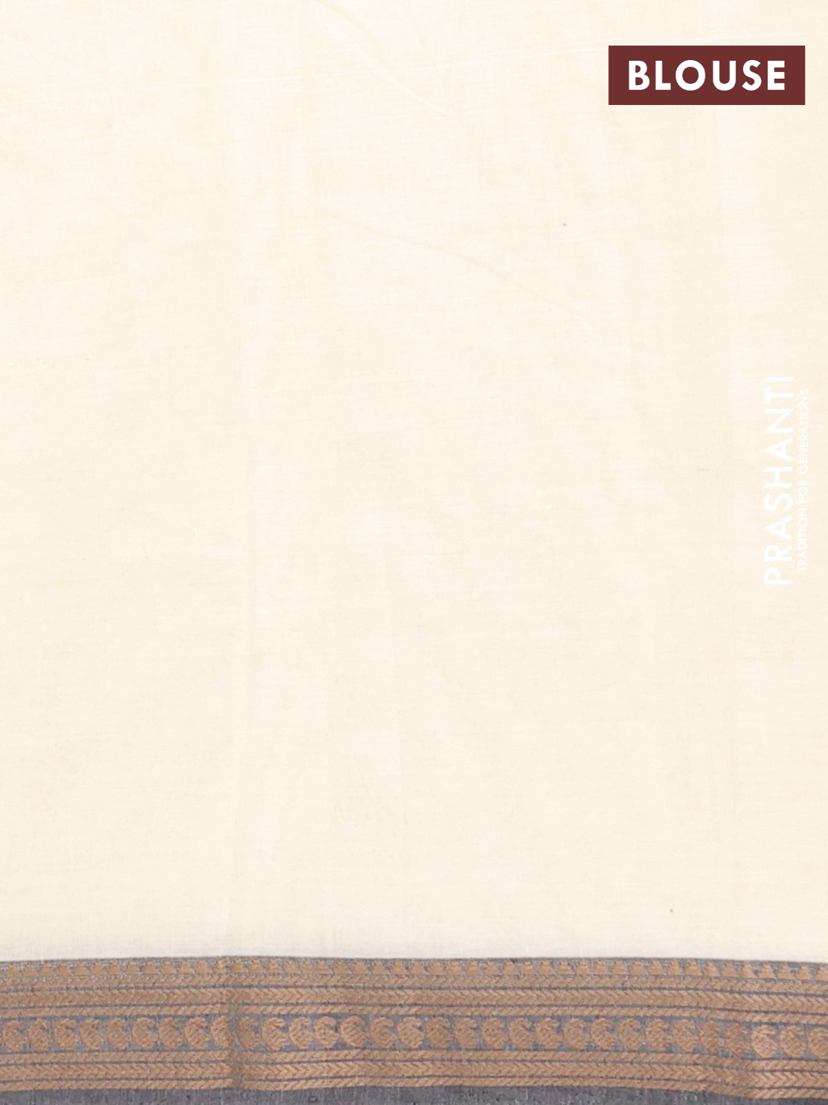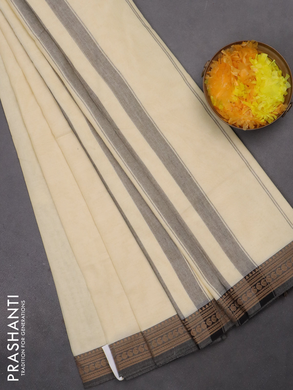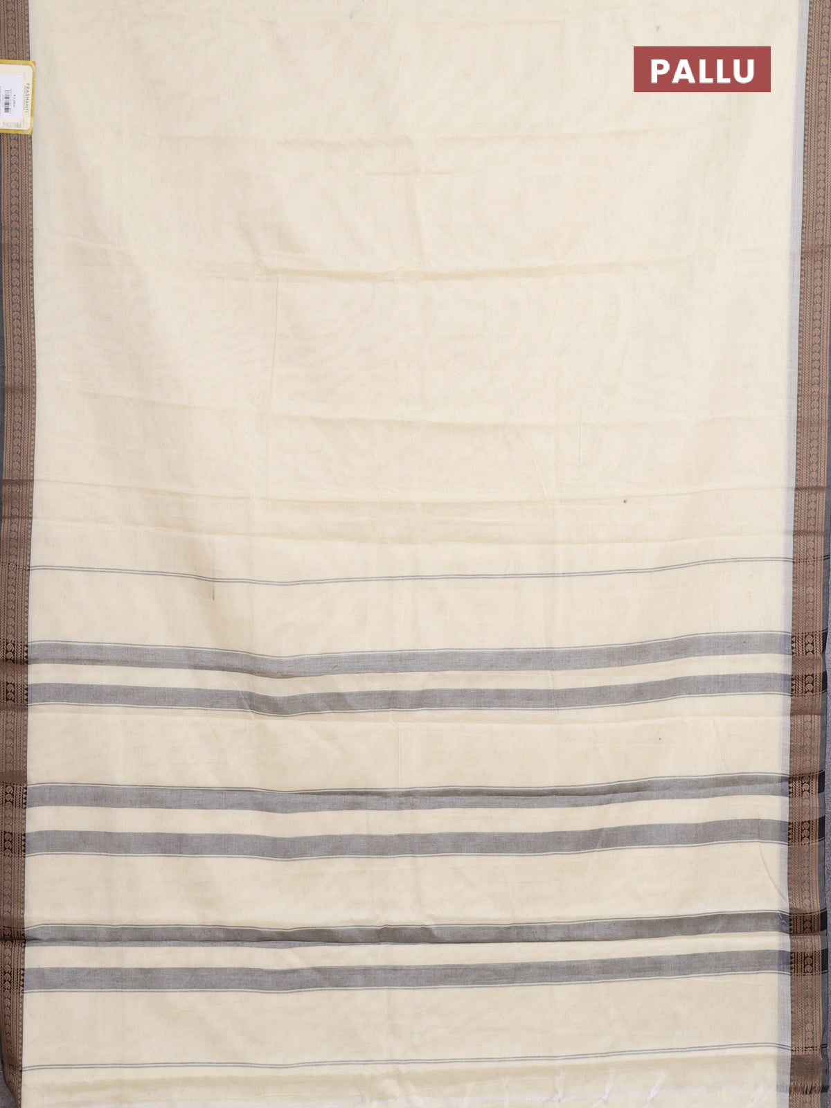 Narayanpet cotton saree cream and grey with plain body and thread woven border